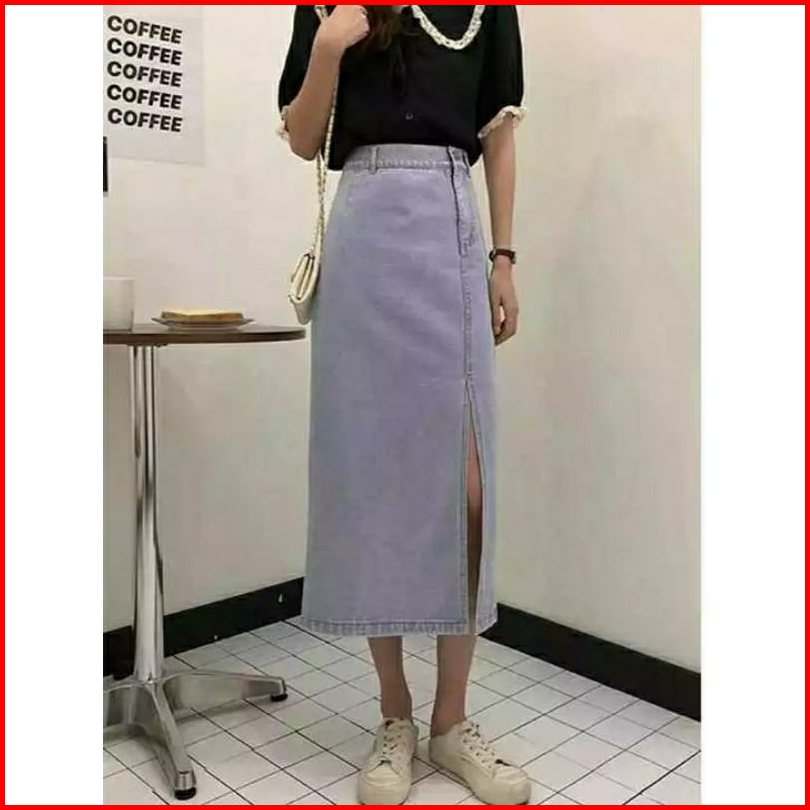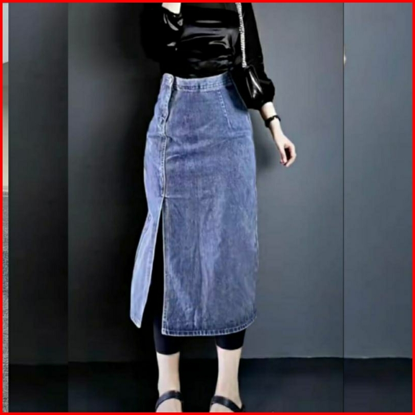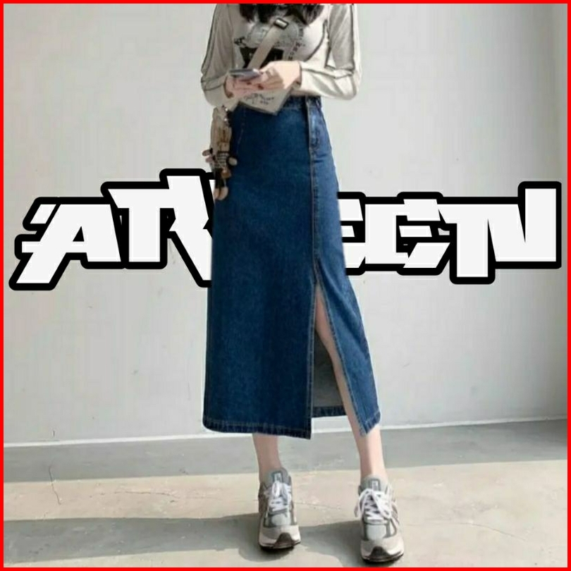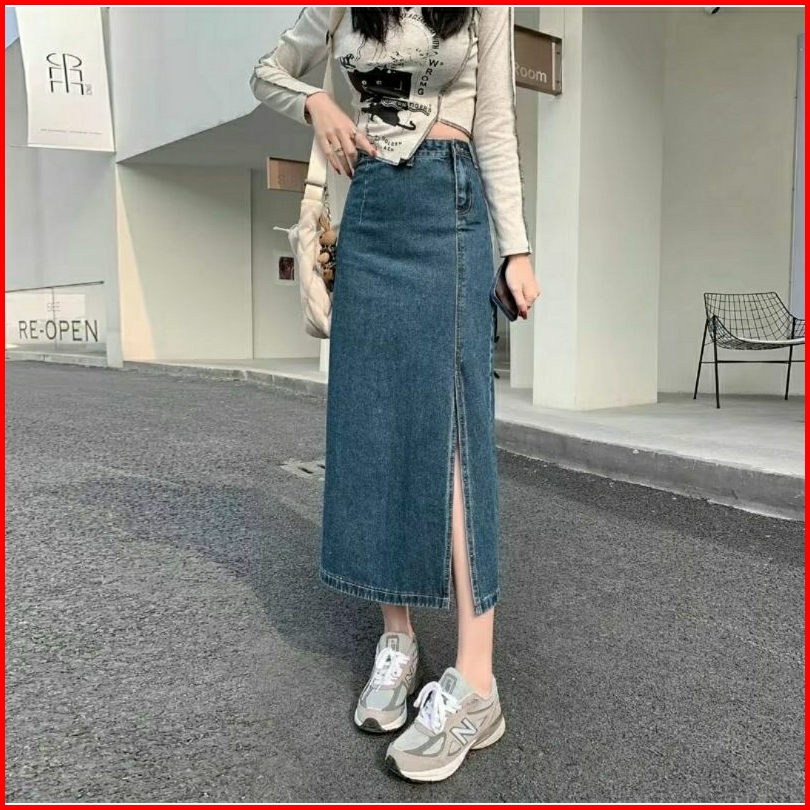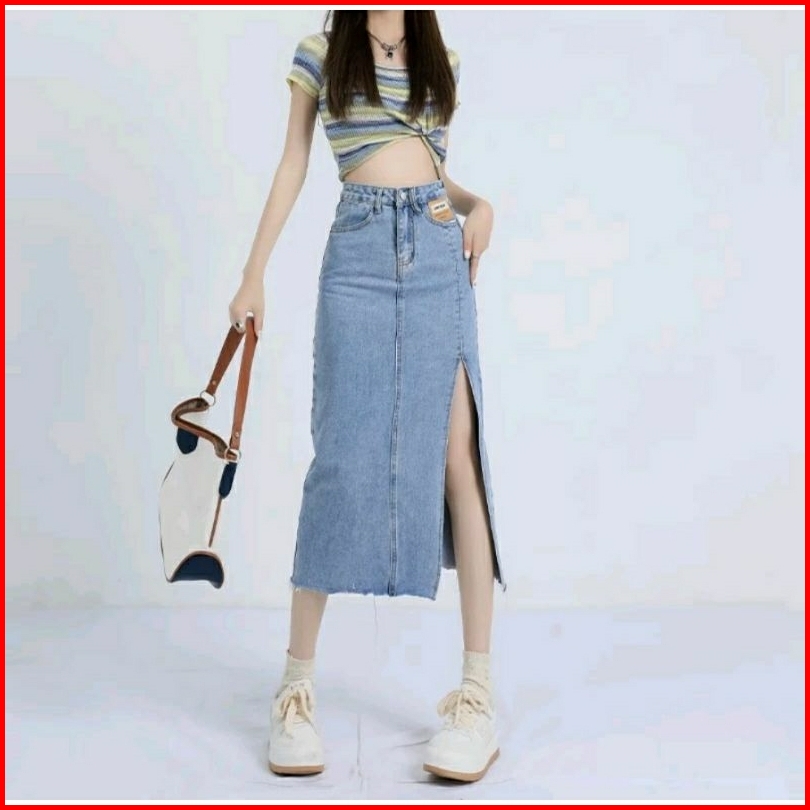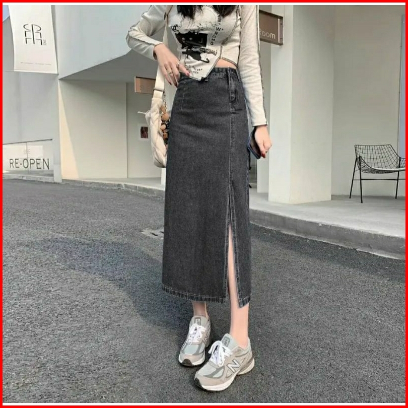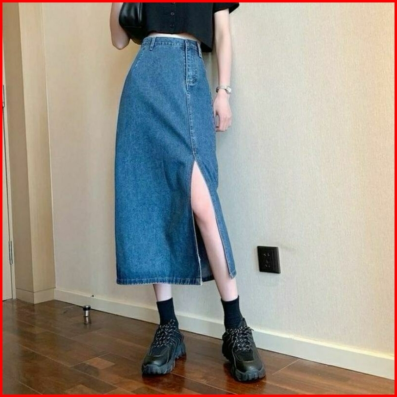 Rok Jeans Higwaist Belah Samping Korean Style Rok A-line