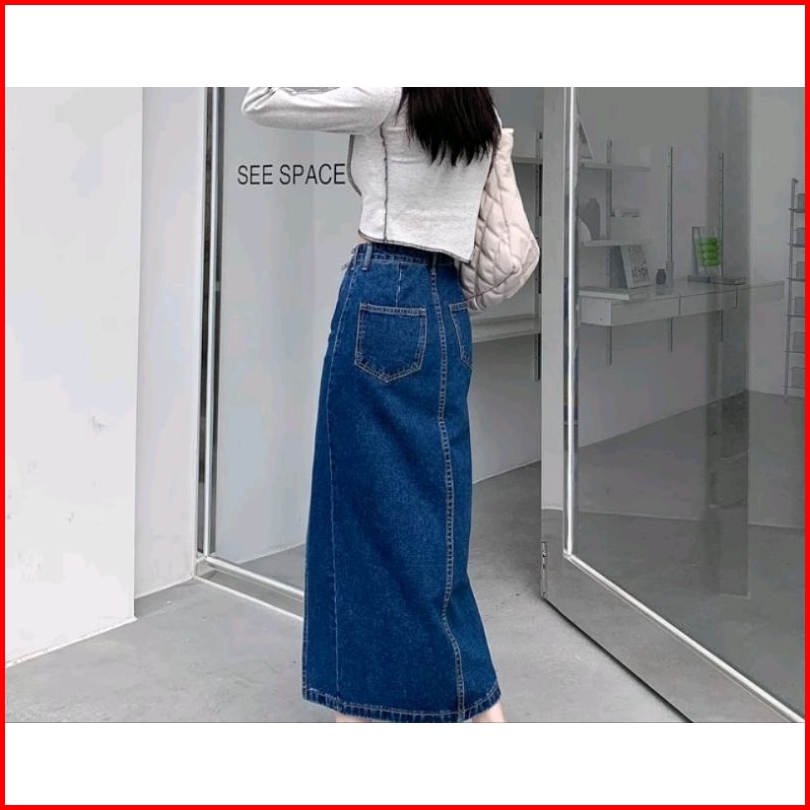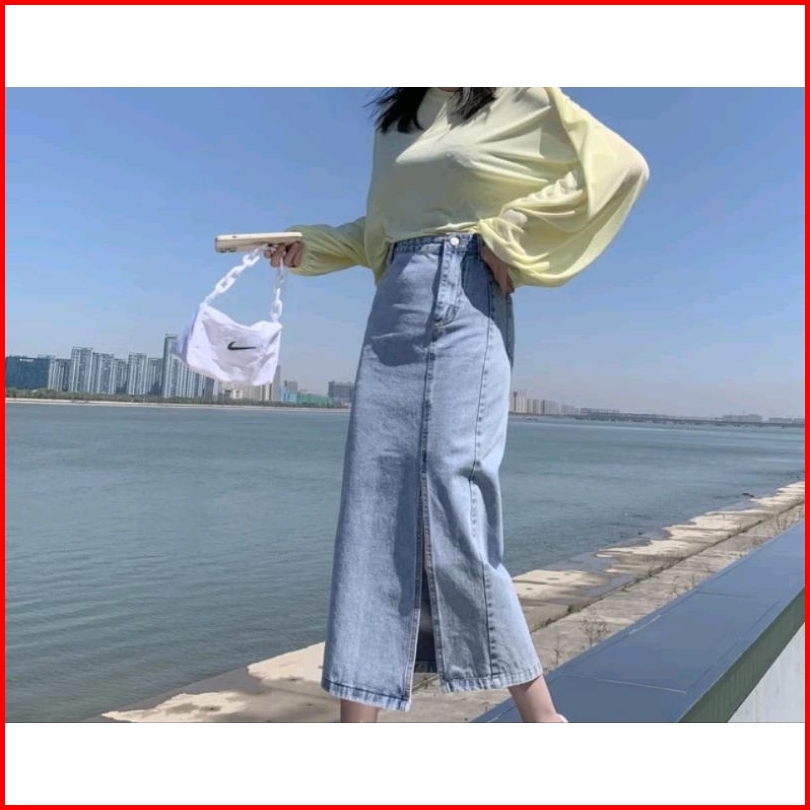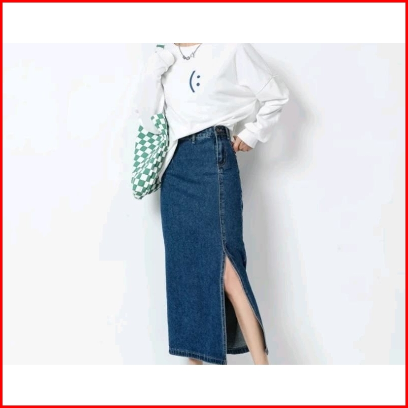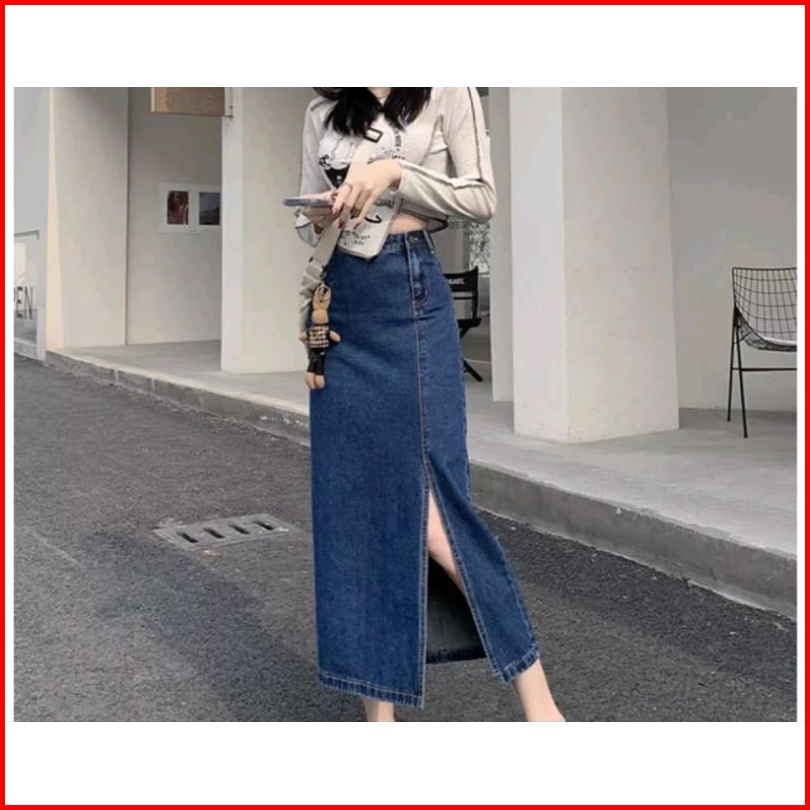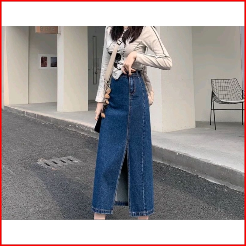 Rok Jeans Split Wanita Gaya Korea Rok Denim Belahan Samping Kece Terbaru 2024