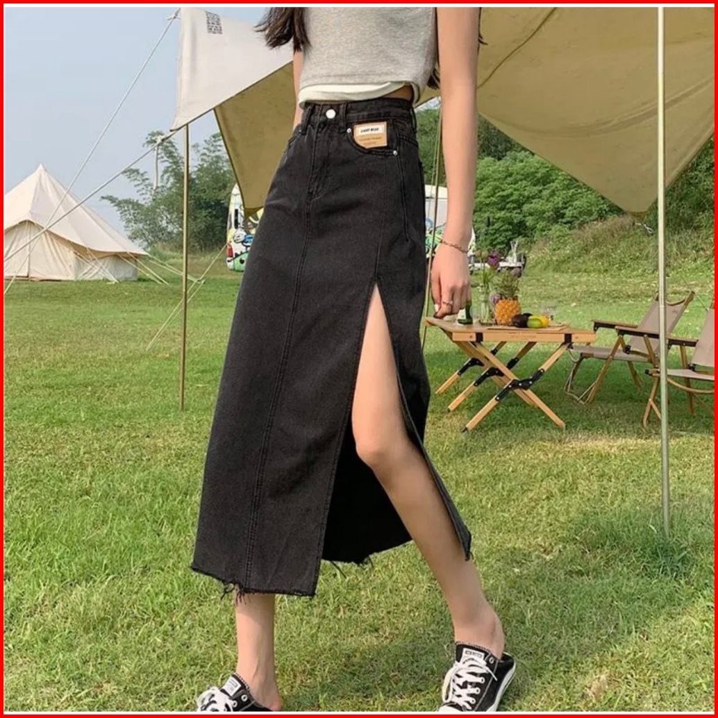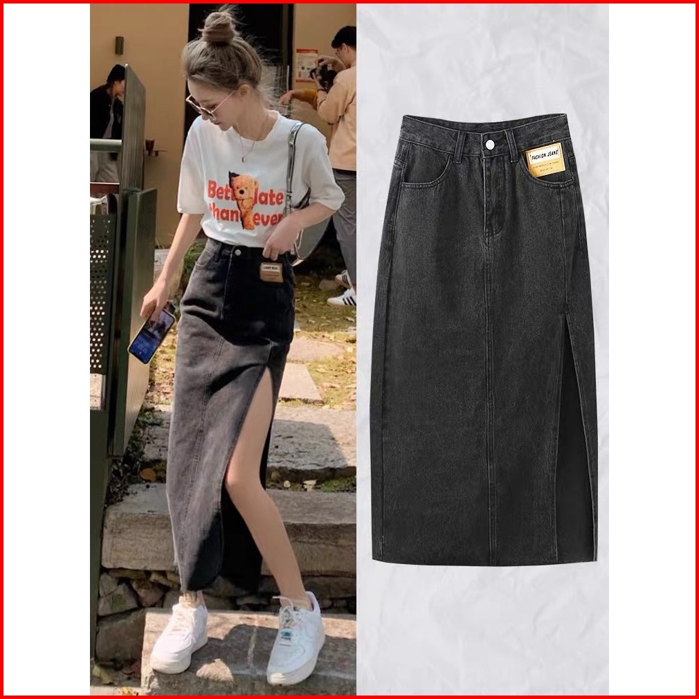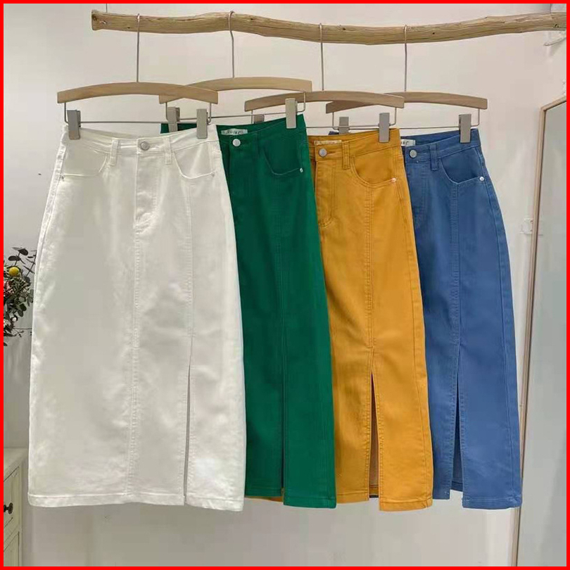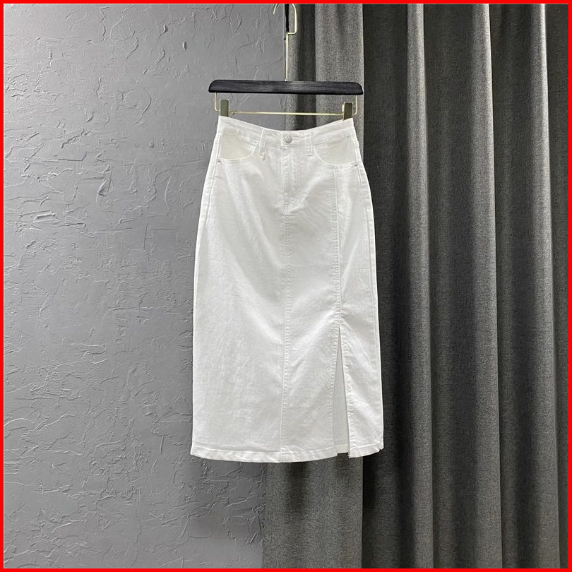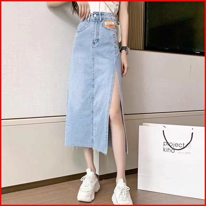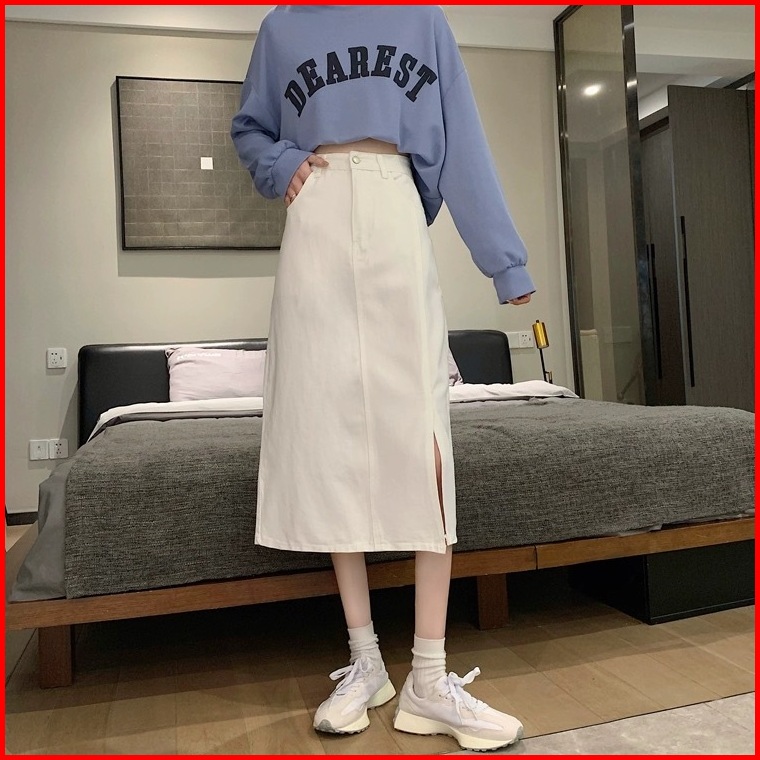 Cantikya.idrok Highwaist Rok Jeans Wanita Rok Jeans Panjang Korean Style Rok Span Putih Rok 7 9 Kekinian Fashion Split D