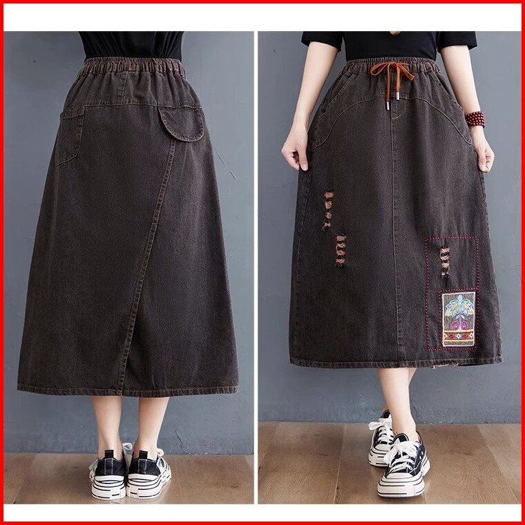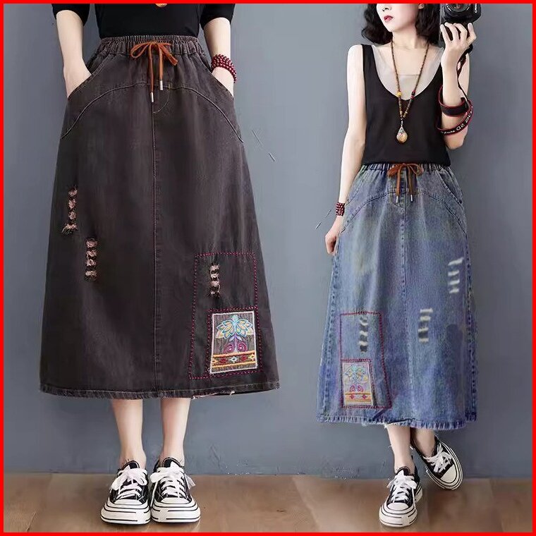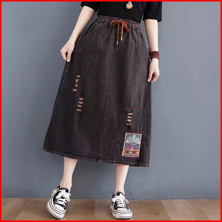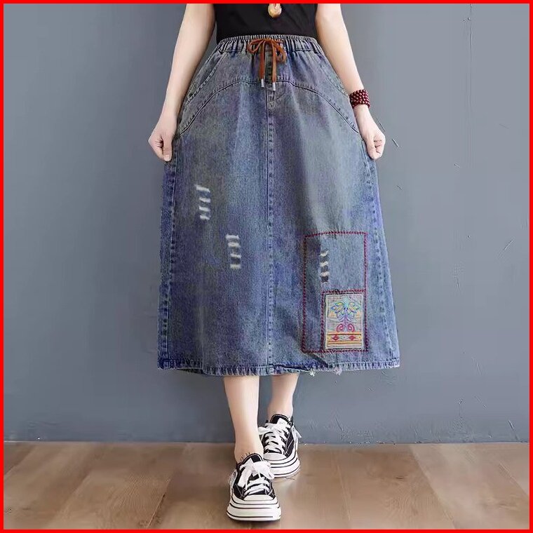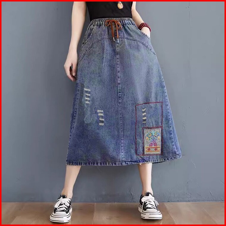 Lc1201 Premium Oversized Rok Jeans Bordir Fashion Retro Terbaru