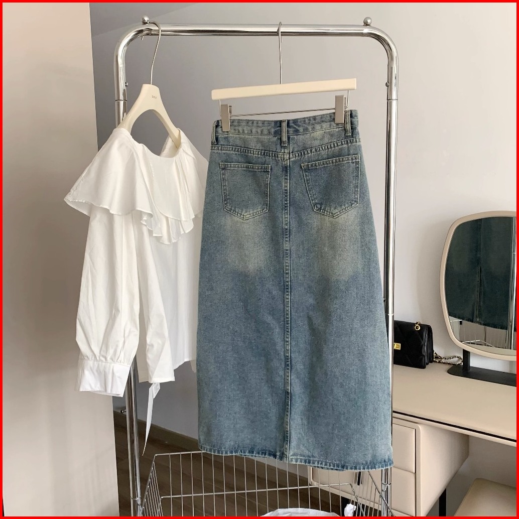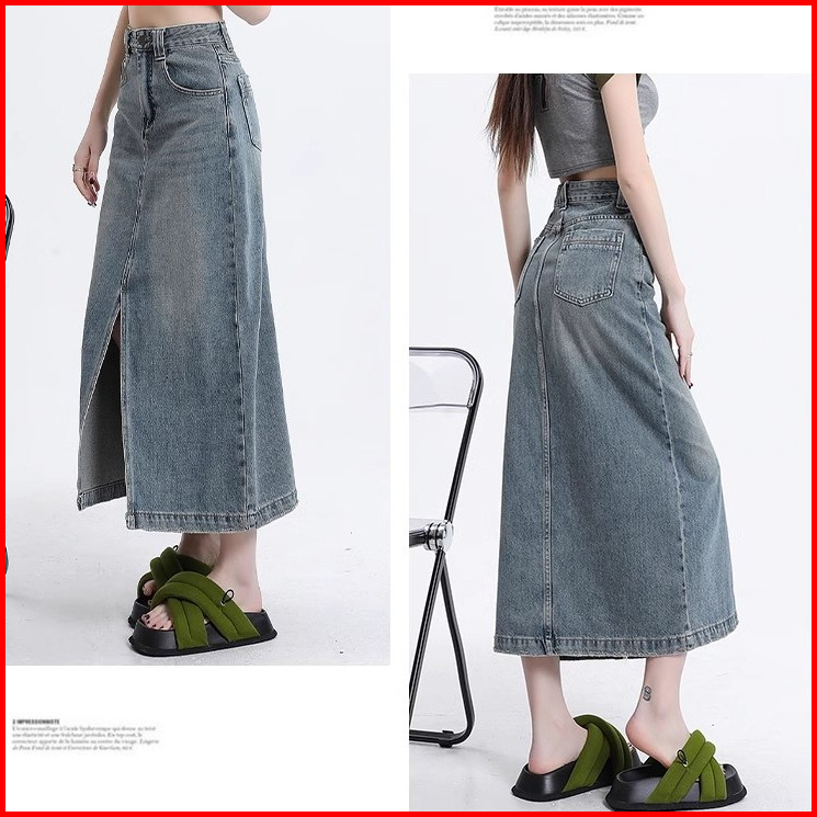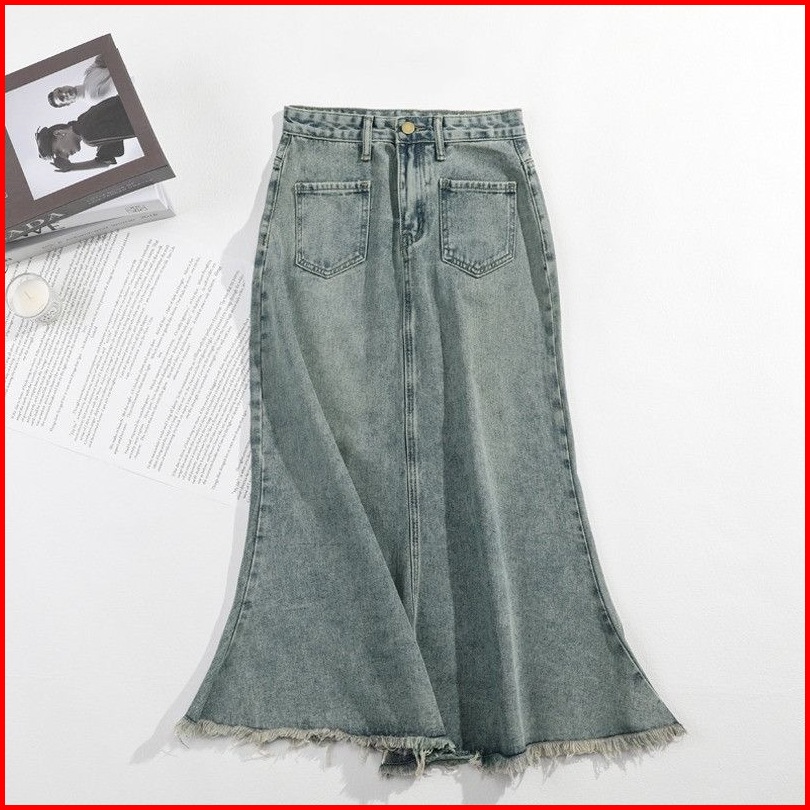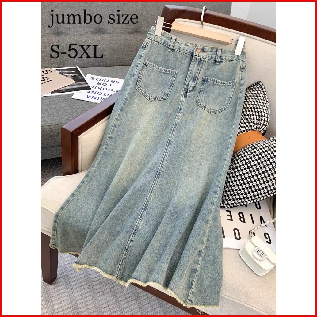 Cewek Idlong Skirt Denim Rok Korean Style Jumbo Highwaist Denim Skirt Span Premium Rok Rawis Kancing Retro Ootd Fashion