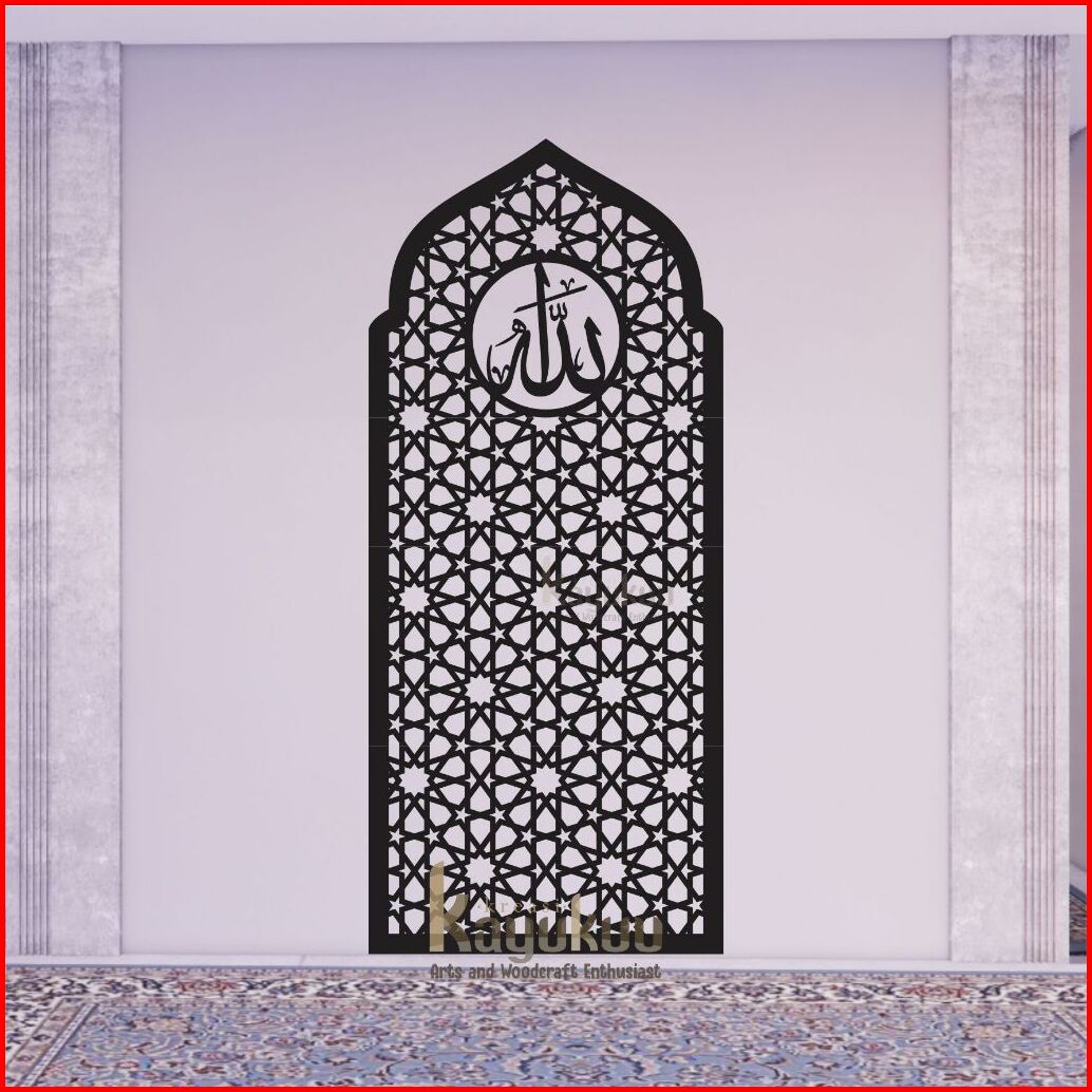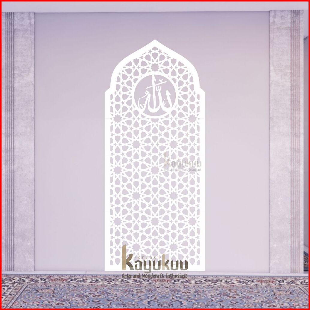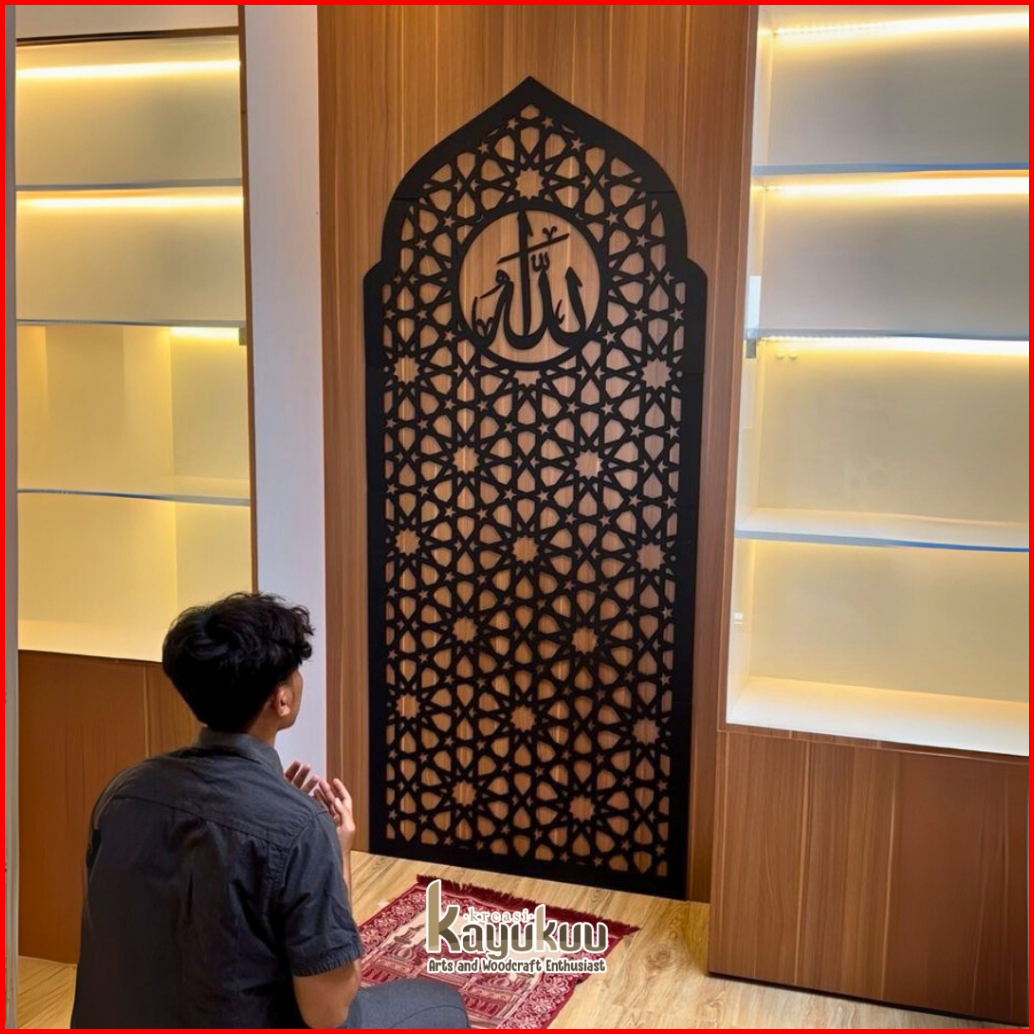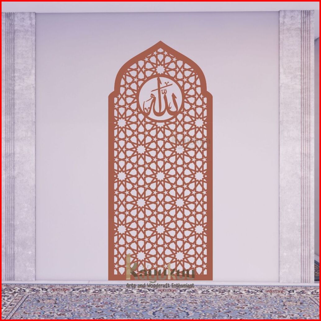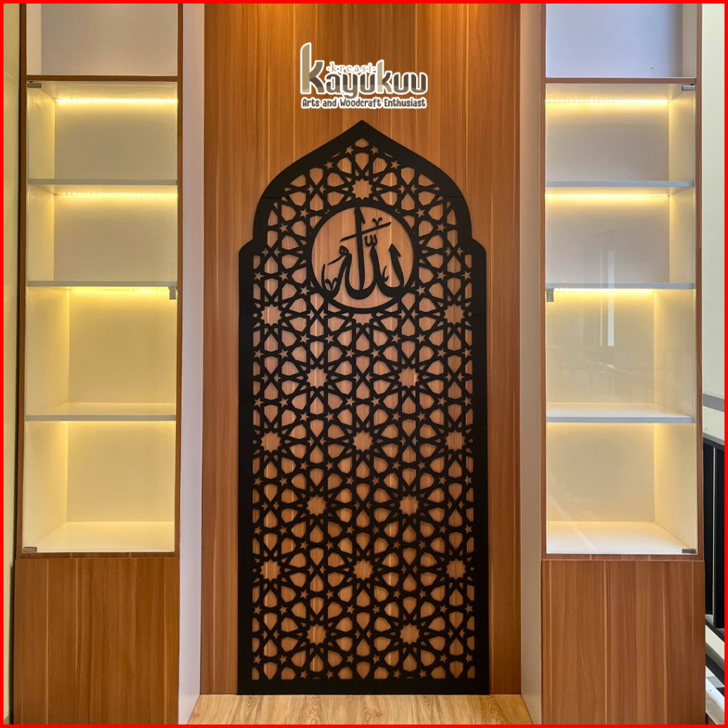 Kreasikayukuu Hiasan Dinding - Mihrab Musholla Kubah Allah - Bahan Cutting Kayu Plywood 3mm
