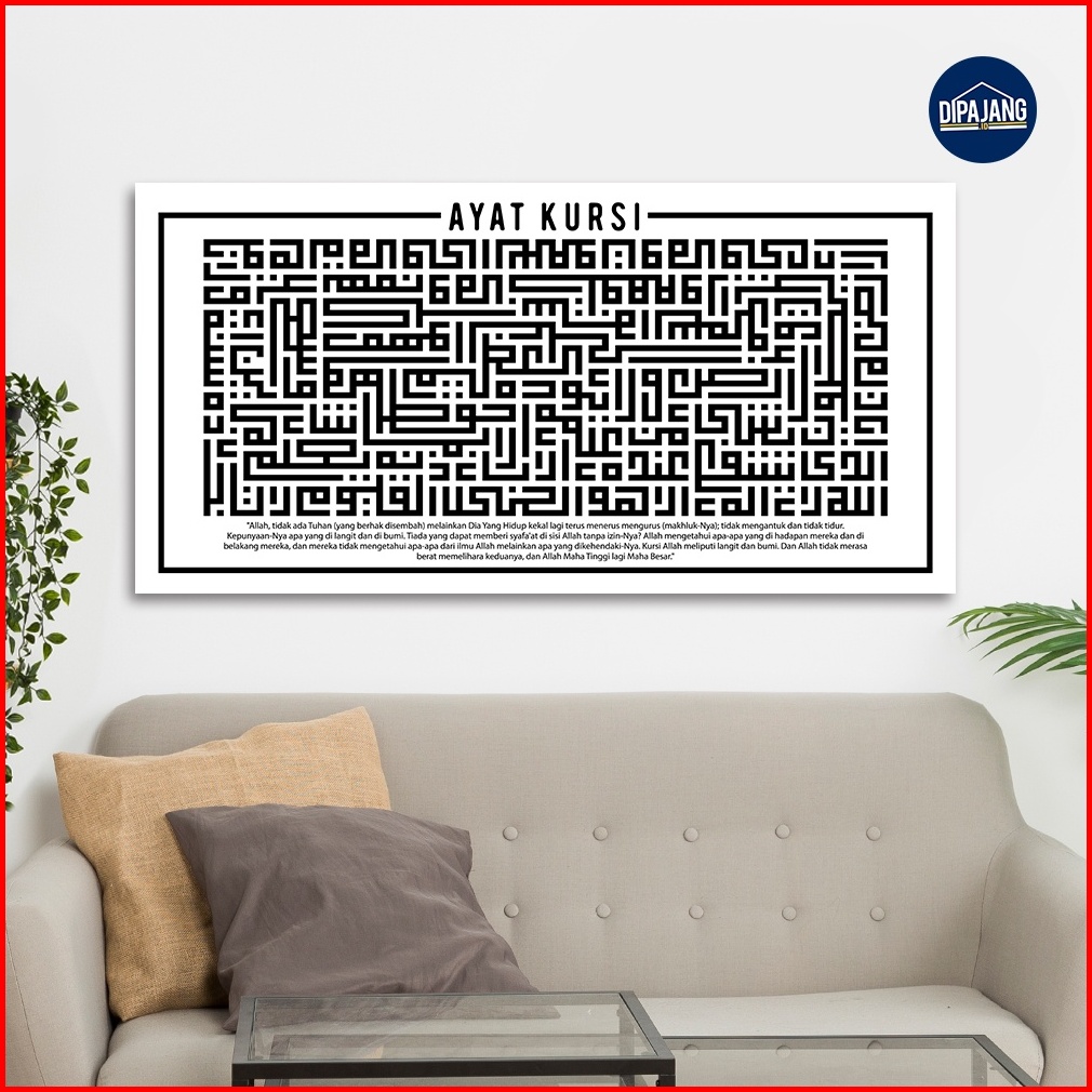 Dipajangid Hiasan Dinding Kaligrafi Kufic Ayat Kursi Monochrome 60x120 50x100 40x80 - Ks019