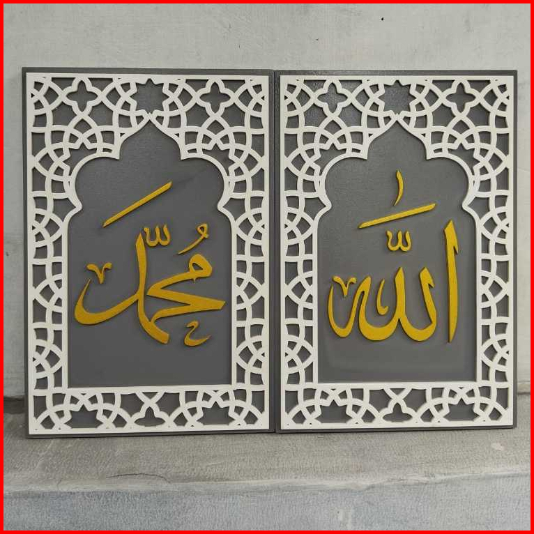 Set Kaligrafi Allah Muhammad Hiasan Dinding Aesthetic Timbul