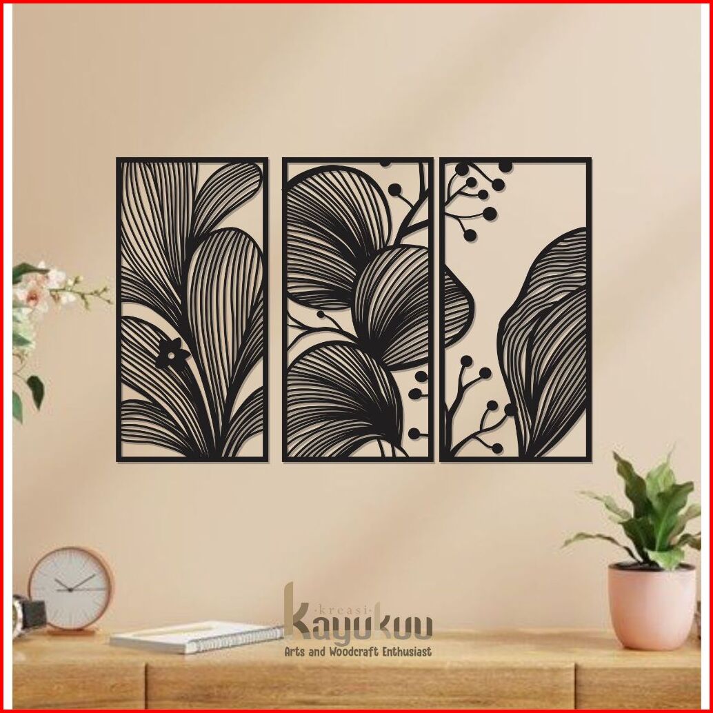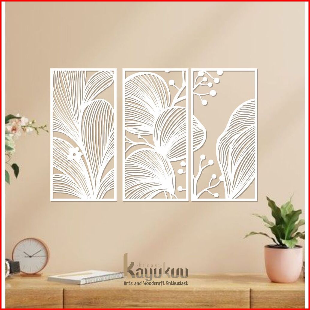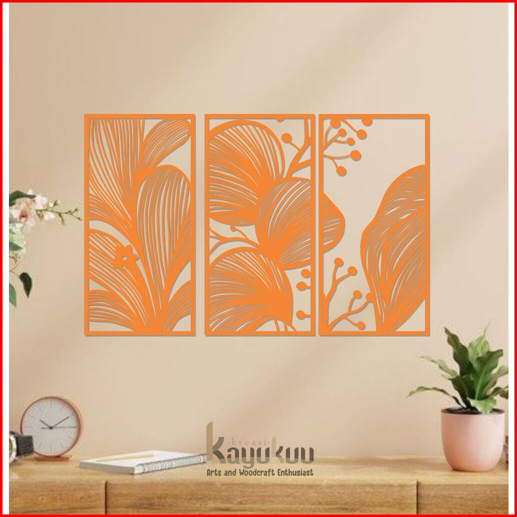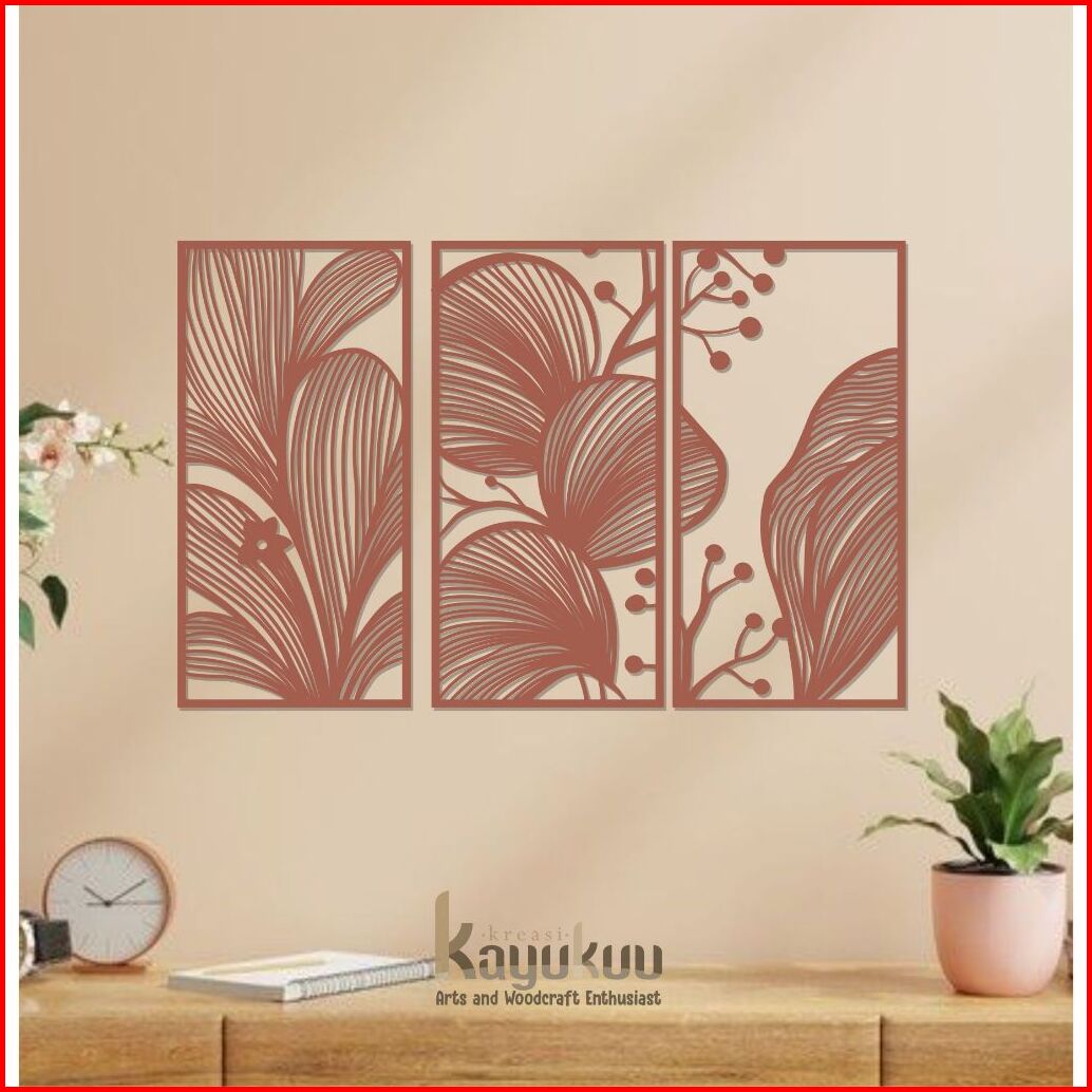 Kreasikayukuu Hiasan Dinding Paket Daun Dekorasi Rumah Cutting Plywood 3mm 1 Set 3pcs