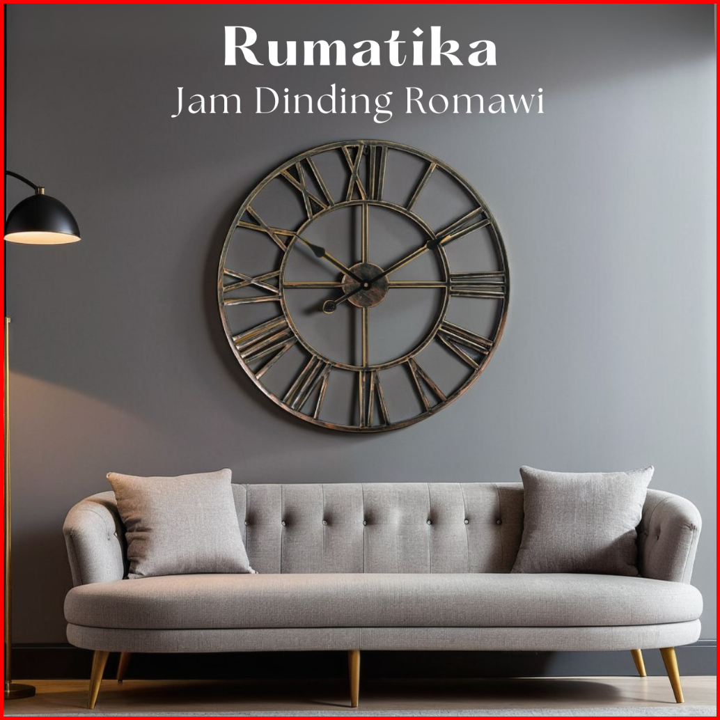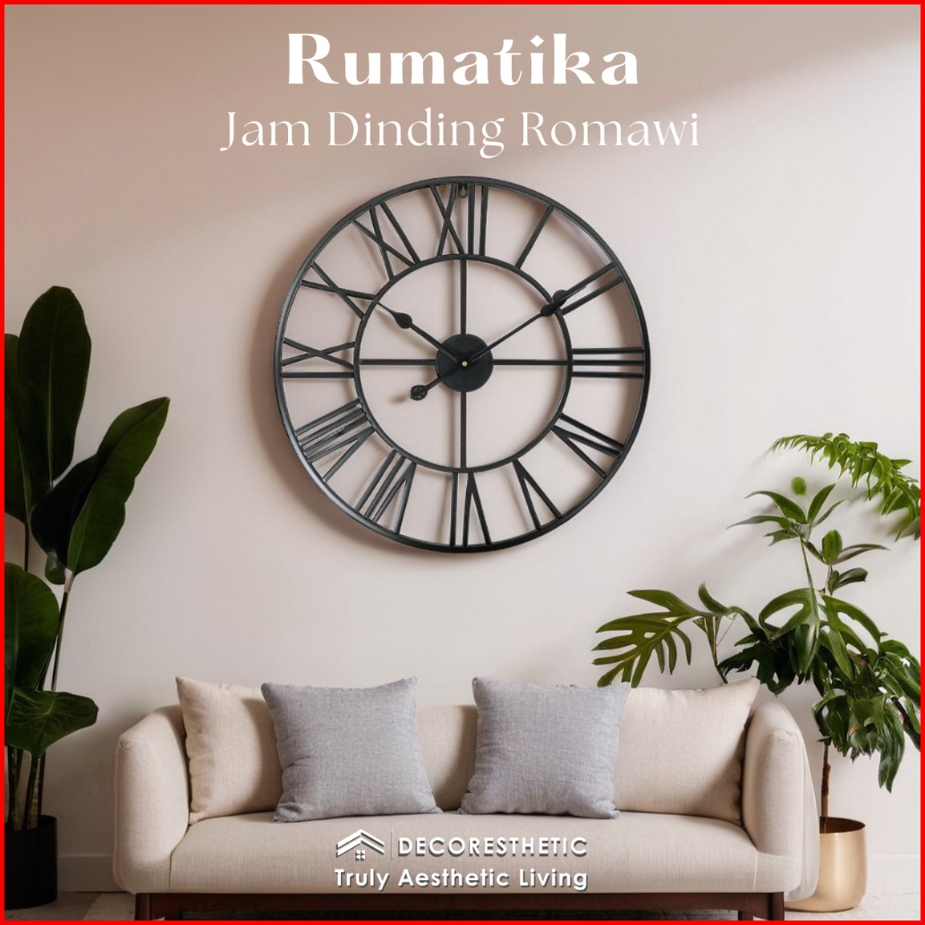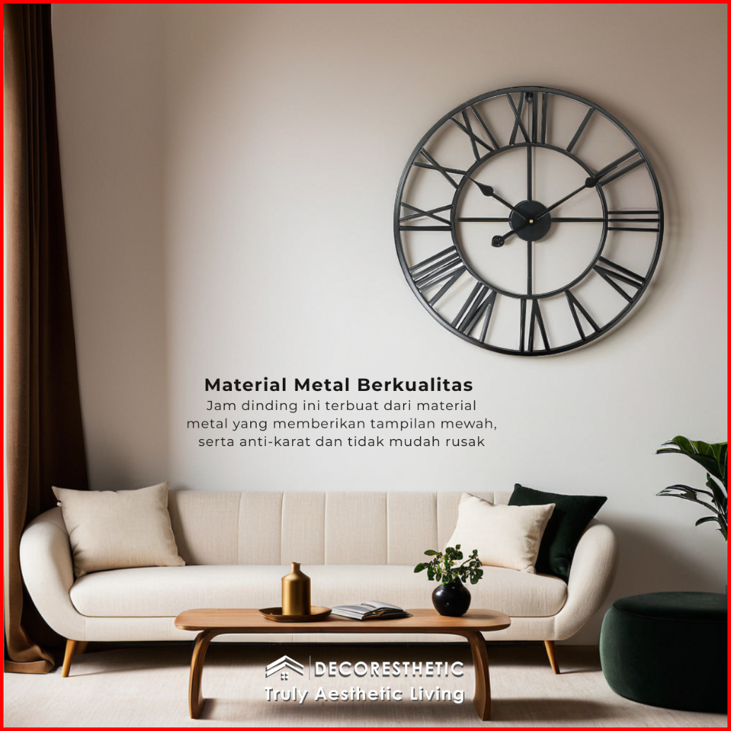 Decoresthetic Jam Dinding Analog Besar Jumbo Modern Minimalis Jam Hias Dekorasi Dinding Romawi