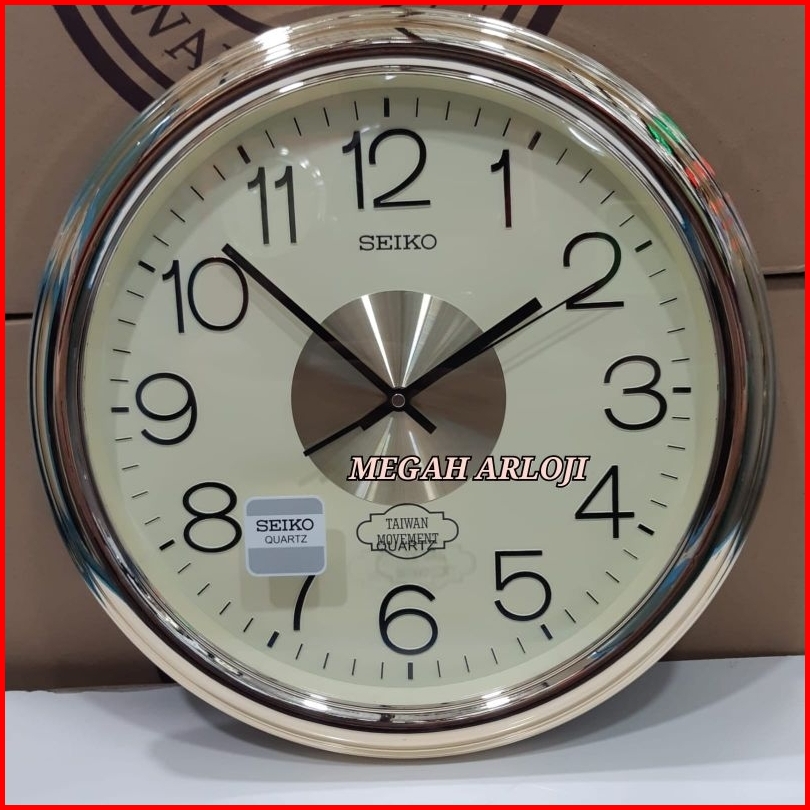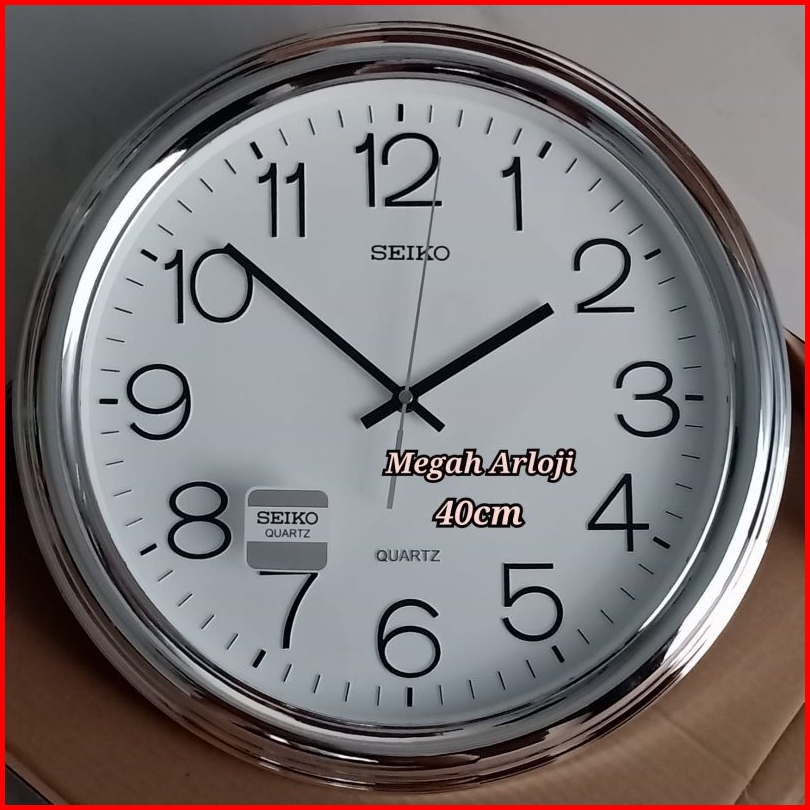 Jam Dinding Seiko 40cm Silver Putih Silent Sweep Detak