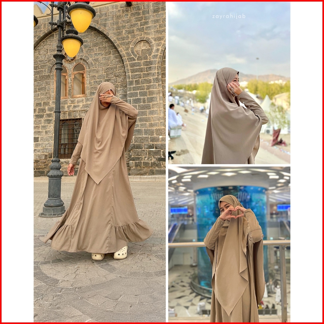 Zayra Hijab Medina Abaya Dress Gamis Abaya Umroh Dan Haji Wanita Premium Set Jilbab Hijab French Khimar Umroh Outfit Gif