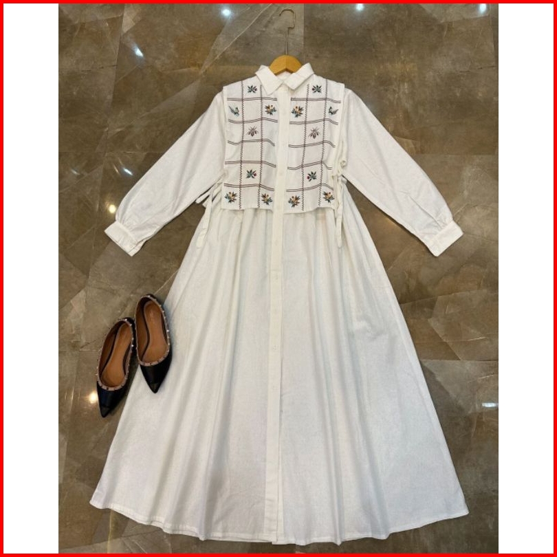 Afifah Dress Gamis Kondangan Remaja Dewasa Kekinian Gamis Mewah Bahan Polo Linen Mix Bordir