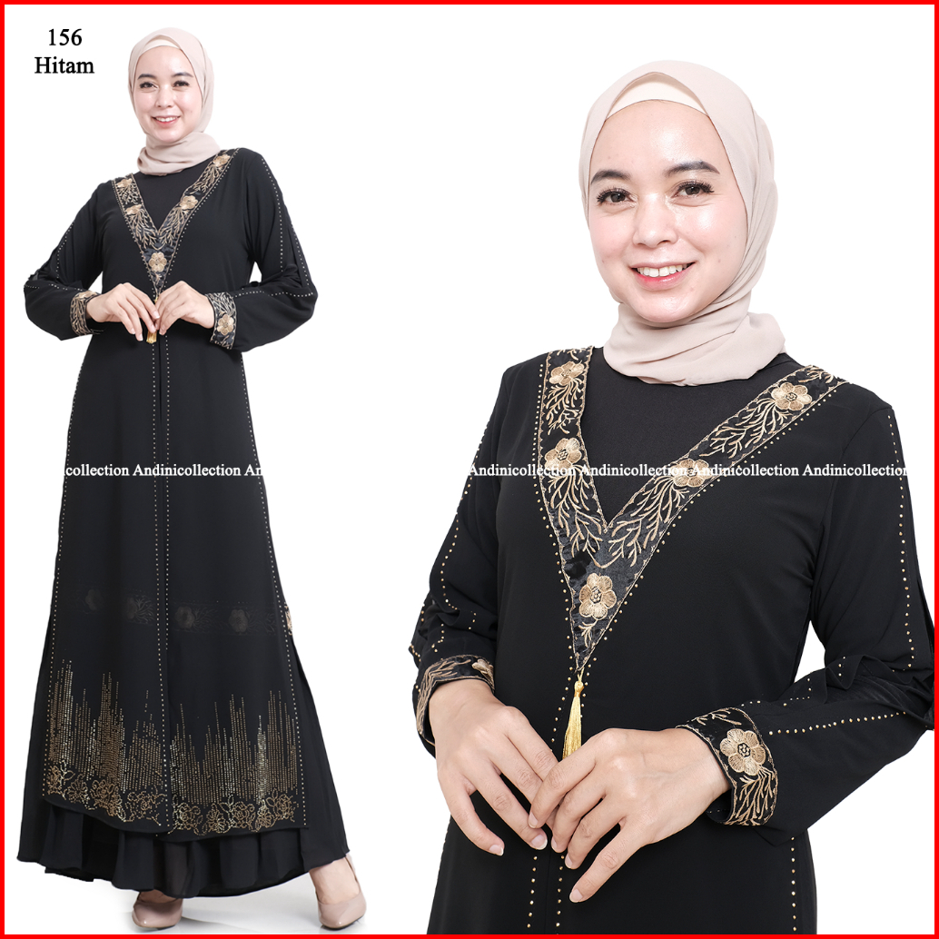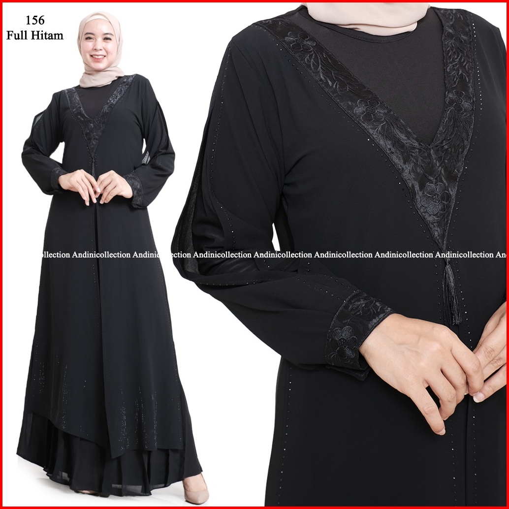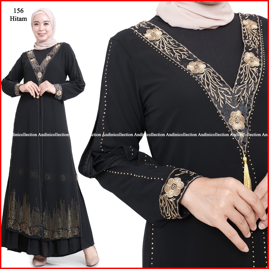 Abaya Hitam Turkey Gamis Syari Remaja Bordir Payet Umroh Kajian Lebaran Andinicollection 156