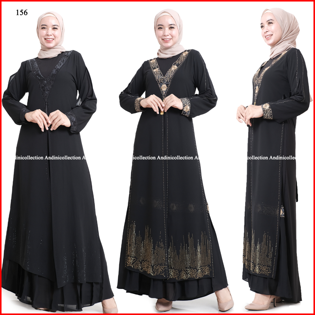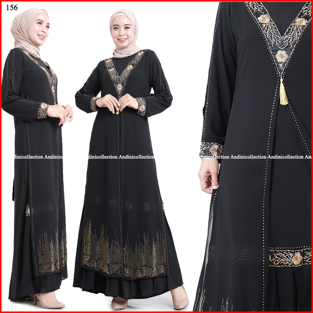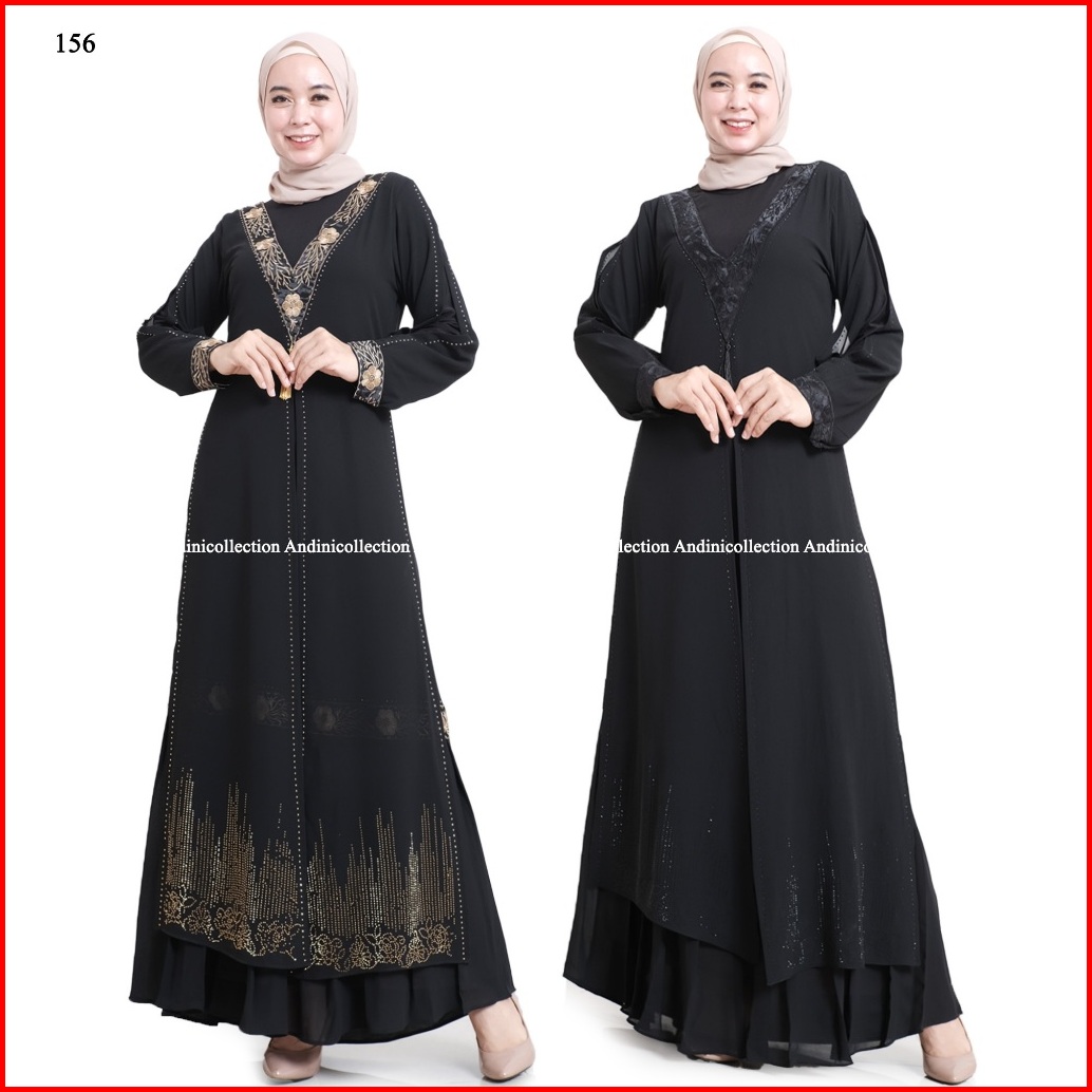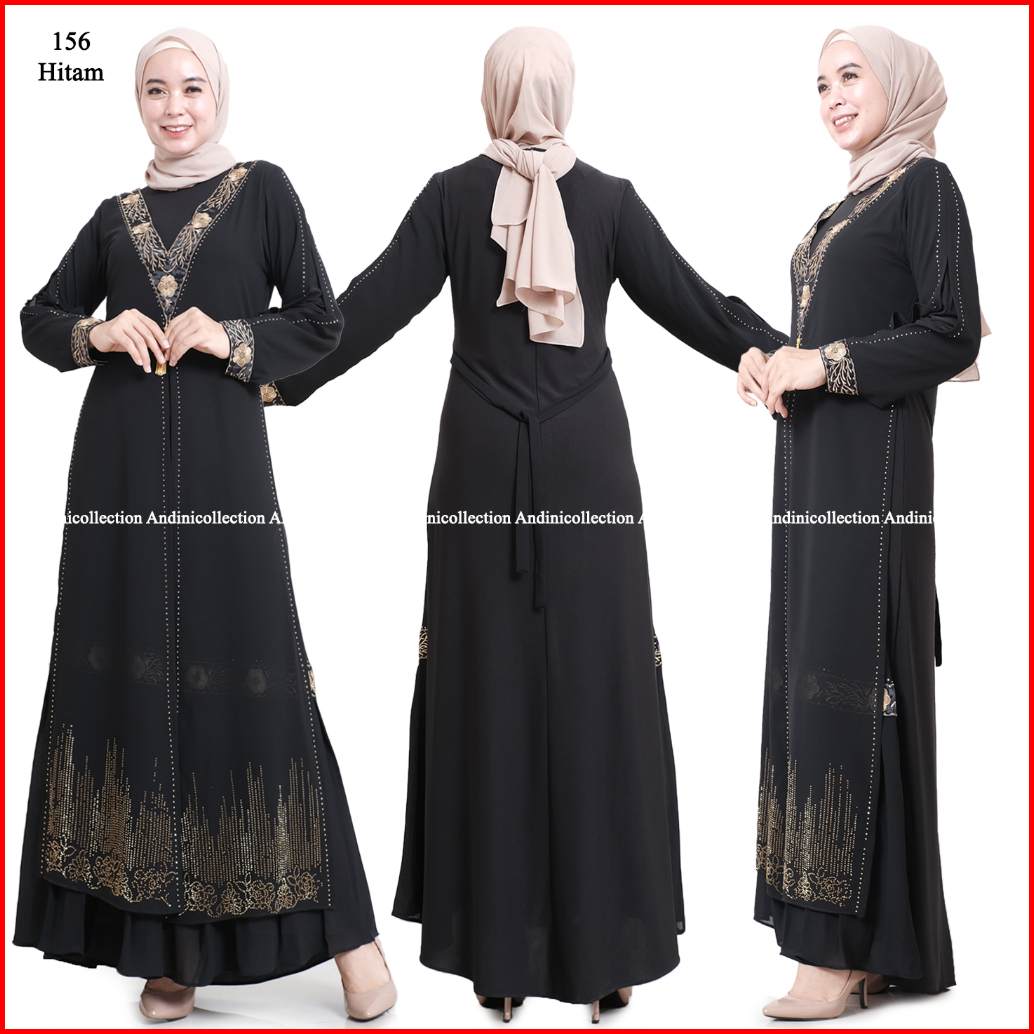 Abaya Hitam Turkey Gamis Syari Remaja Bordir Payet Umroh Kajian Lebaran Andinicollection 156
