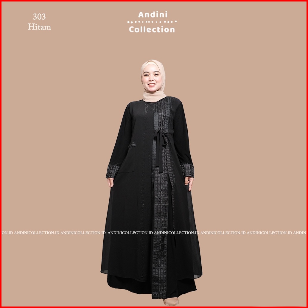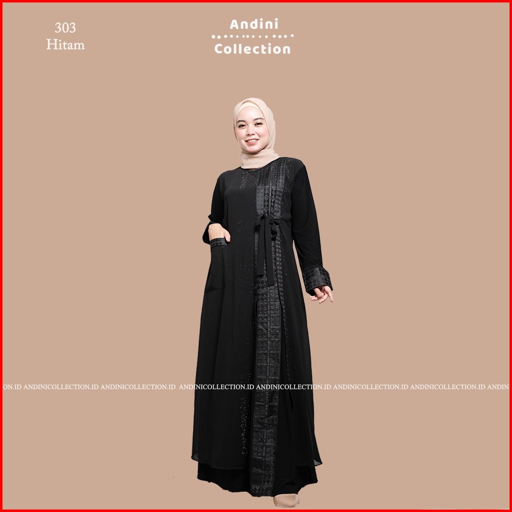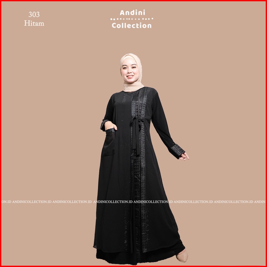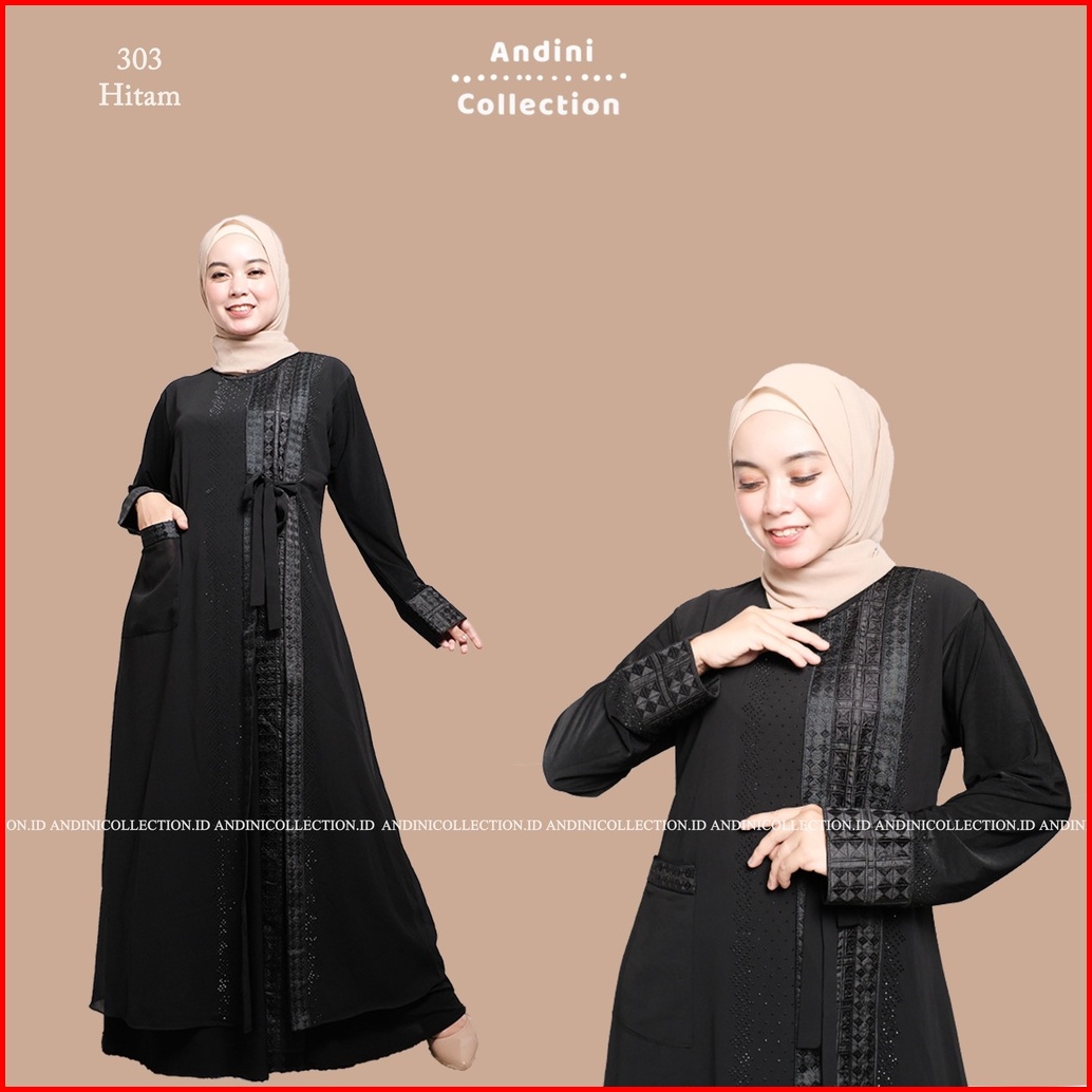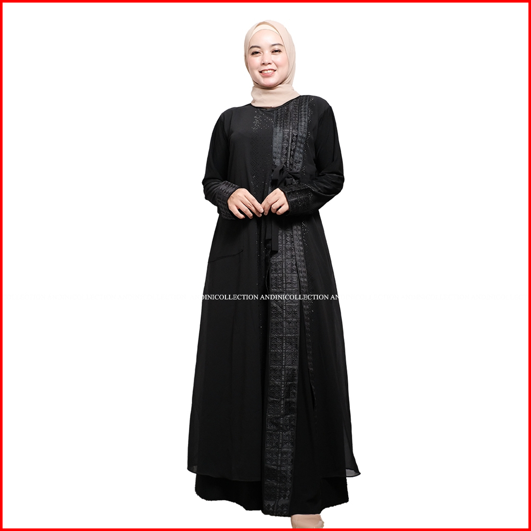 Andinicollection Abaya Turkey 303 Amarta Hitam Putih Dewasa Muslim Bordir Dan Payet Mewah