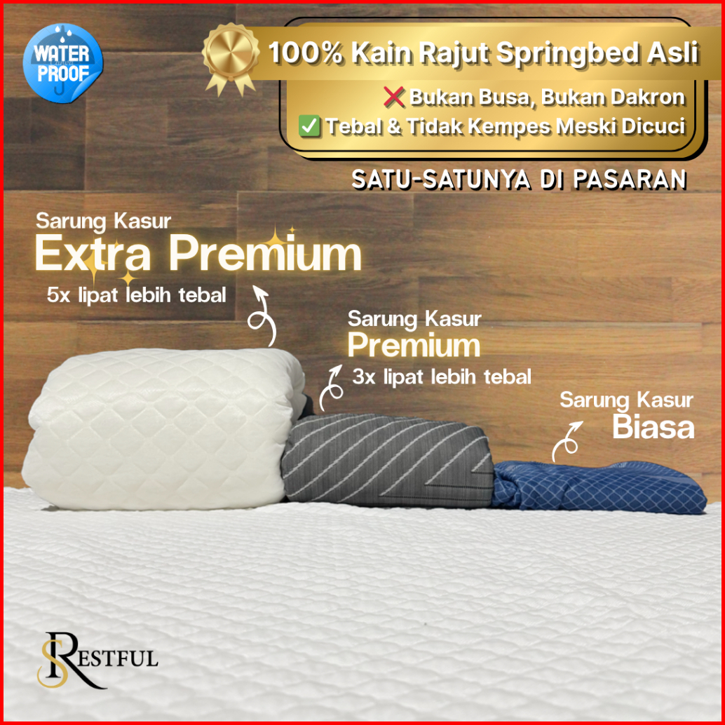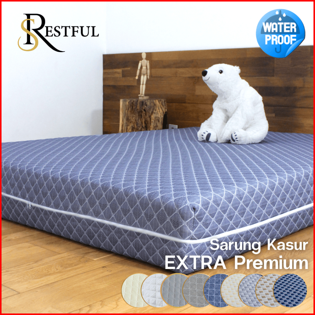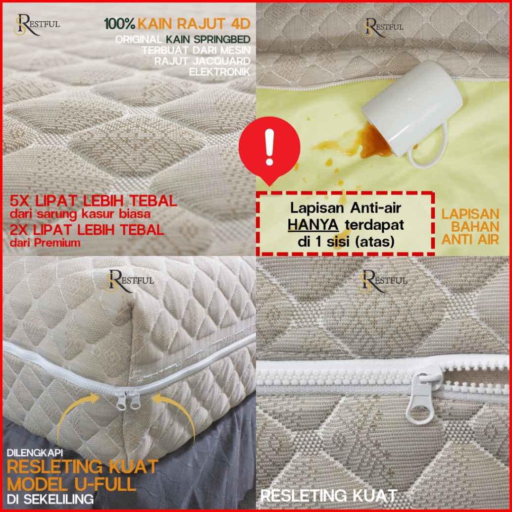 Sarung Kasur Extra Premium Waterproof Restful Tinggi 20 25 30 Cm Resleting Pelindung Matras