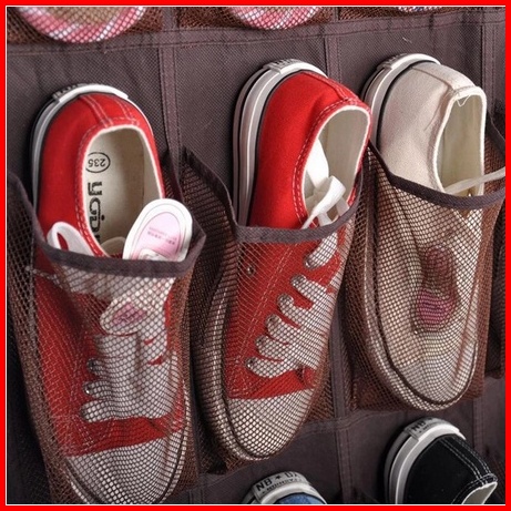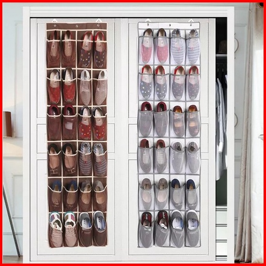 Rak Sepatu Gantung Penyimpanan Dinding Organizer Sepatu 24 Kantong Lipat Anti-debu Tahan Air