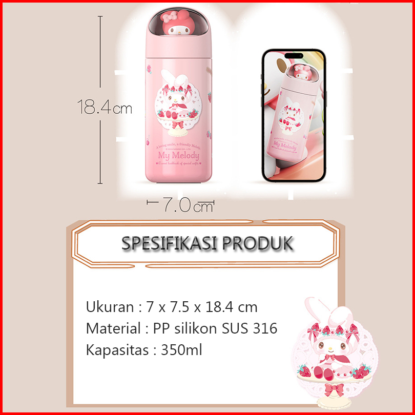 Original Sanrio Lisence New Botol Minum Tumbler Termos Karakter Sanrio Anak 316 Stainless Steel 350ml Kuromi Hello Kitty