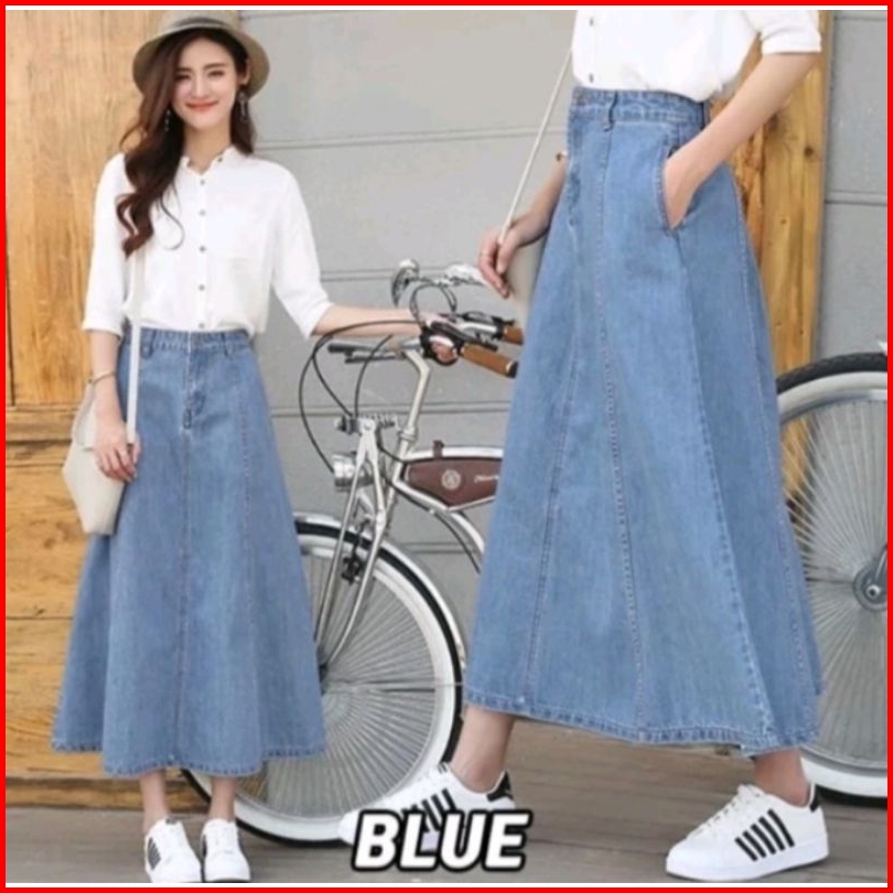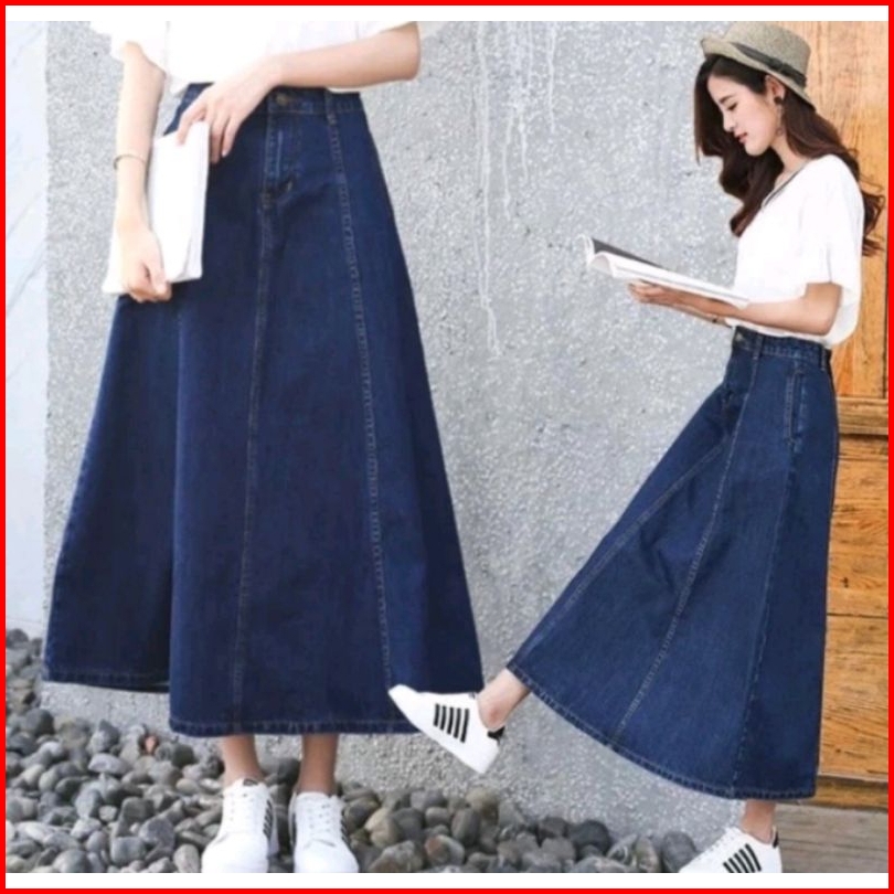 Rok Jeans 7 8 Style Korean Rok Denim Wanita Stretch Rok Mayung Jumbo Kekinian