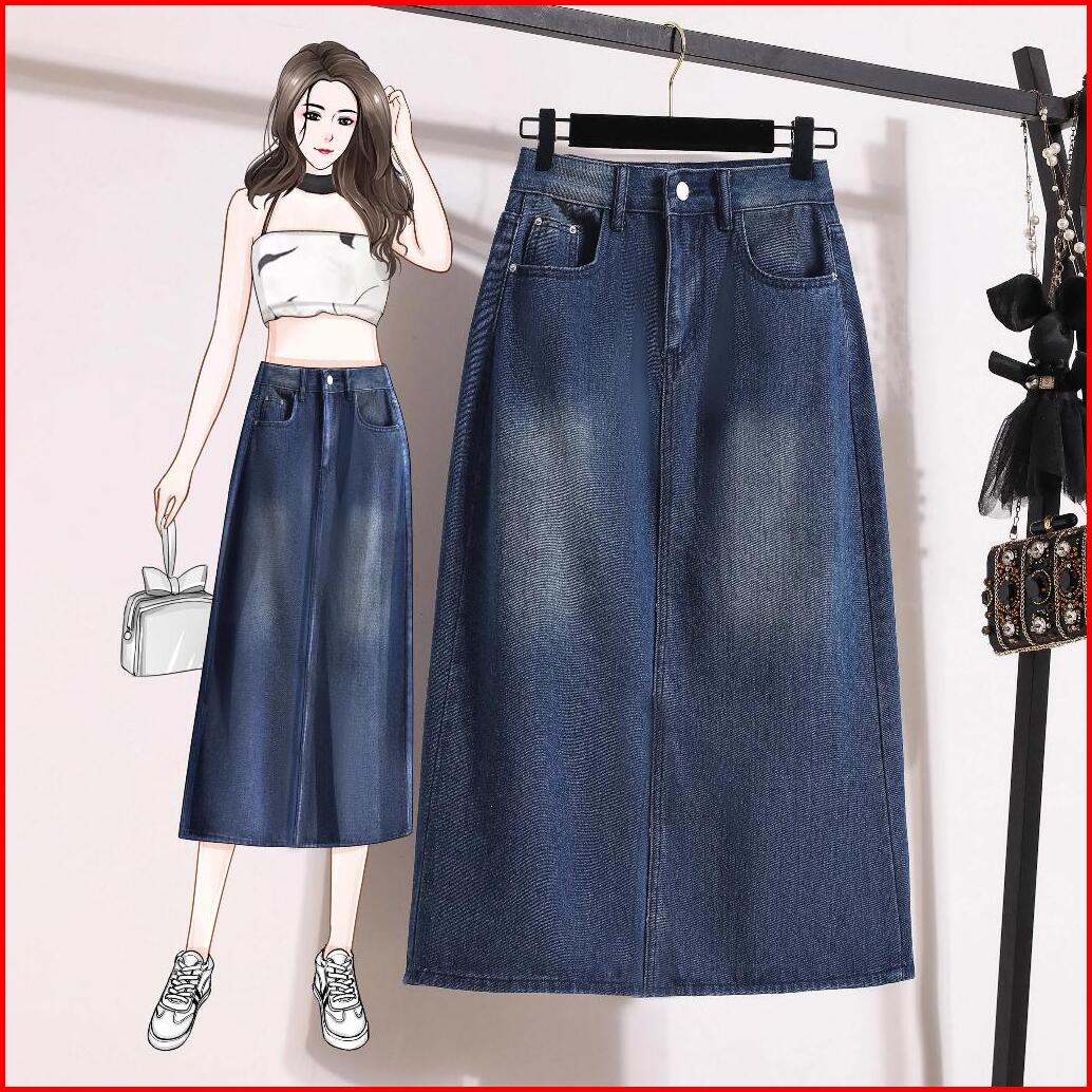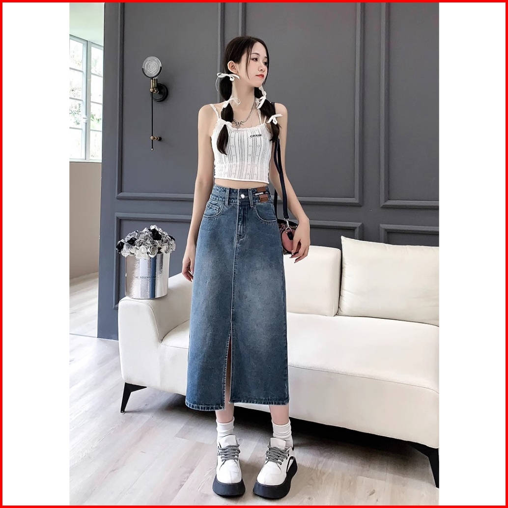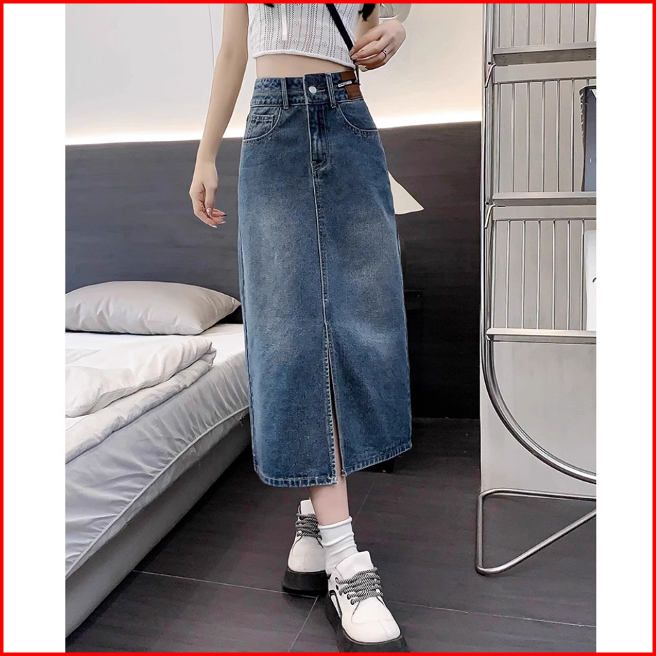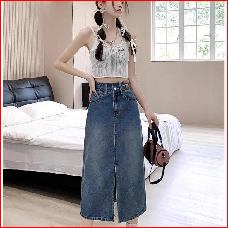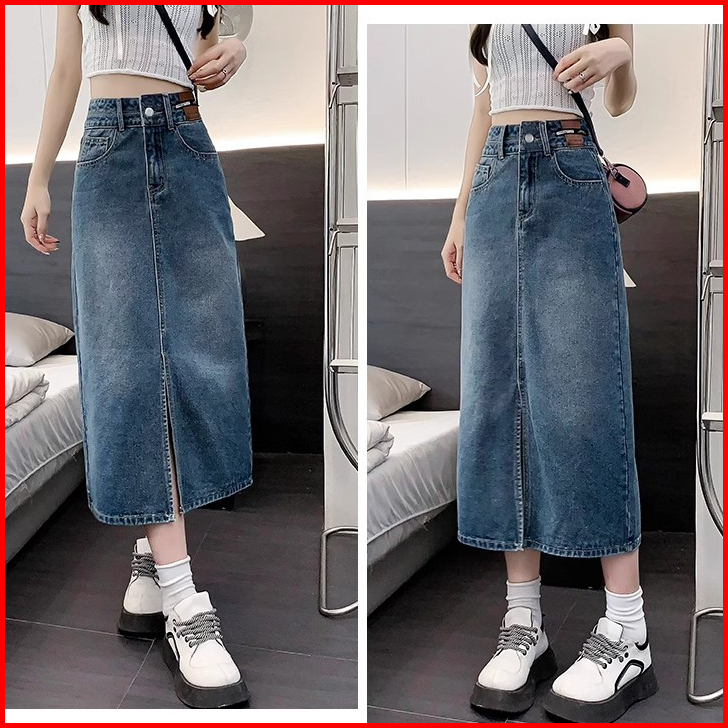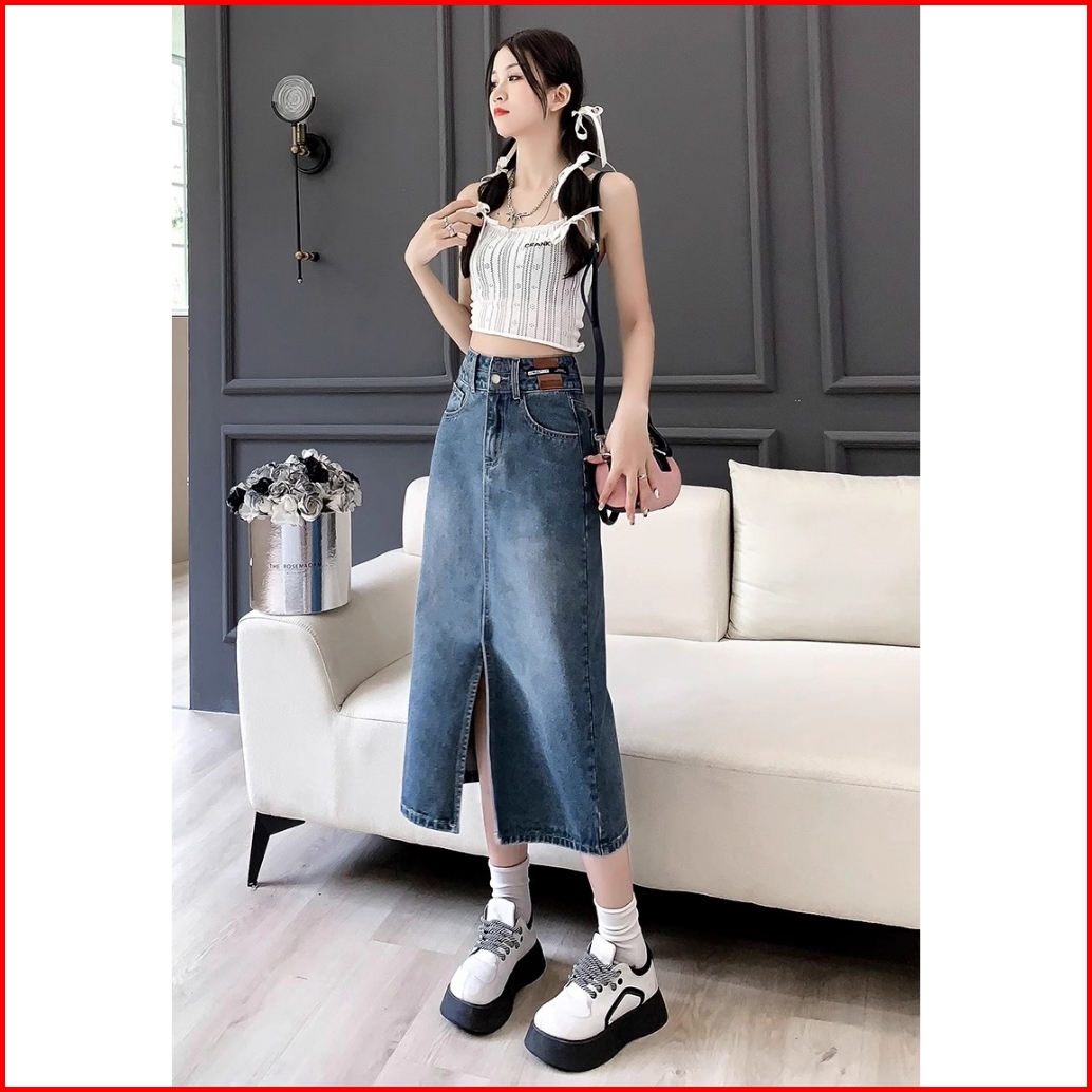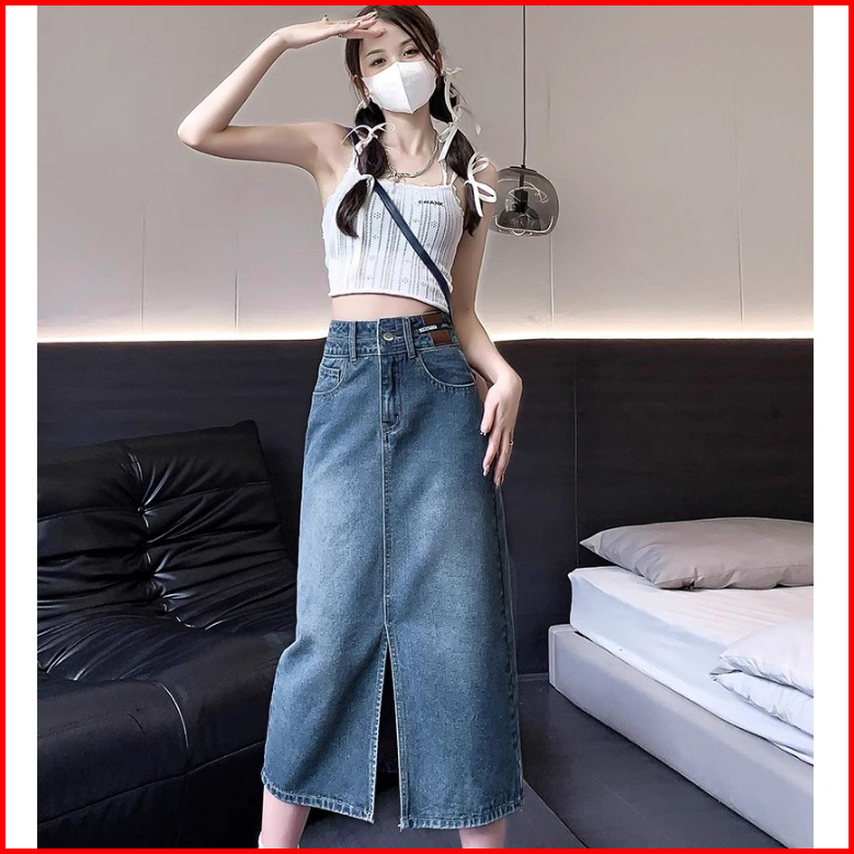 Keygirl Rok A Line Jeans Belah Depan Highwaist Rok Wanita 7 8 Kekinian Rok Premium Korean Style
