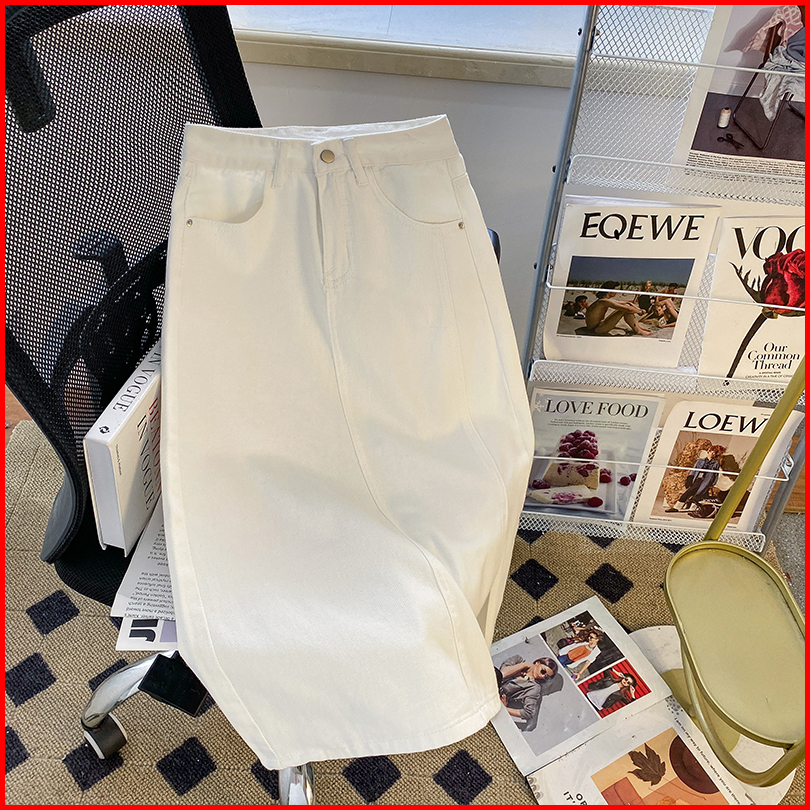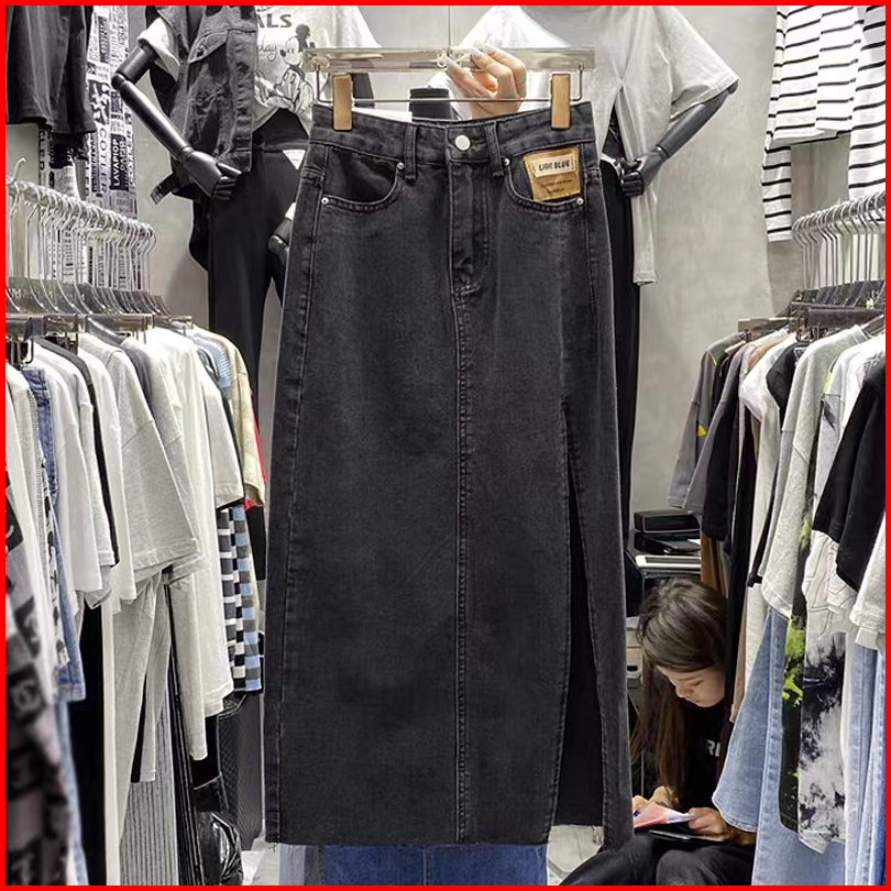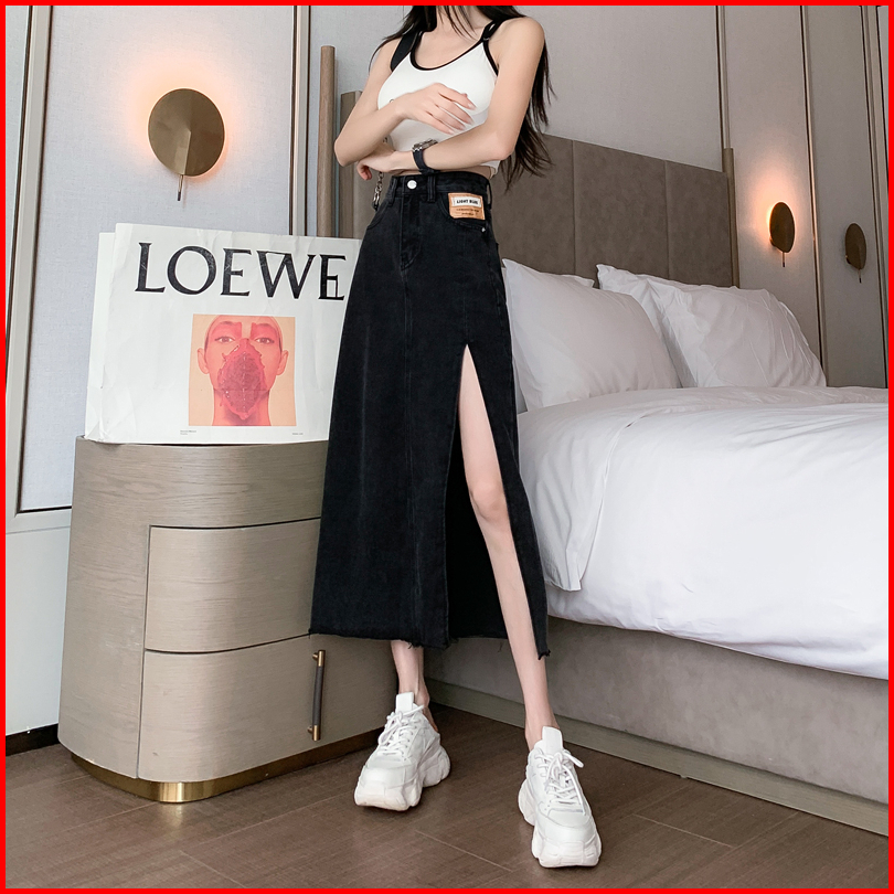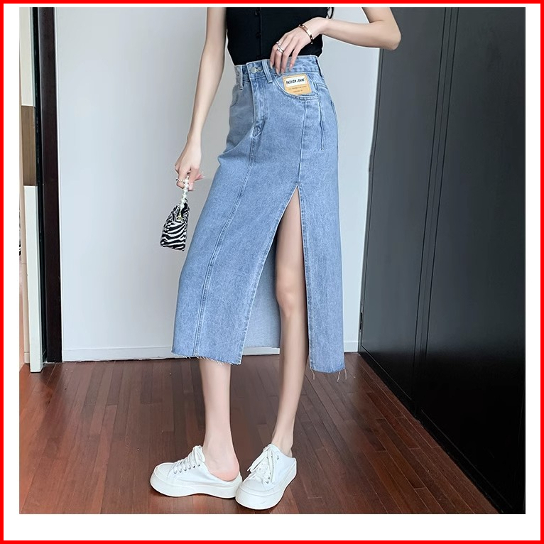Keygirl Rok Jeans Panjiang Wanita Korean Style Rok Belah Samping Rok Denim Hightwaist Skirt Kekinian