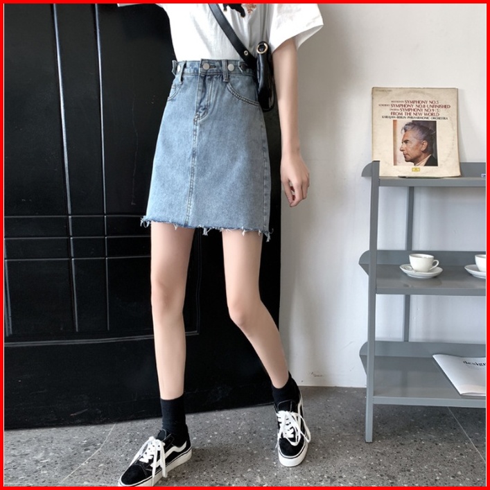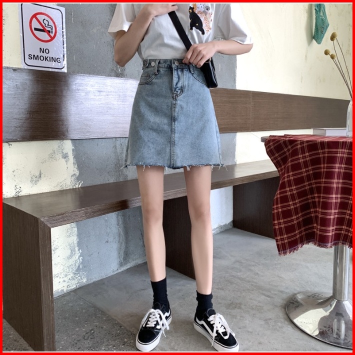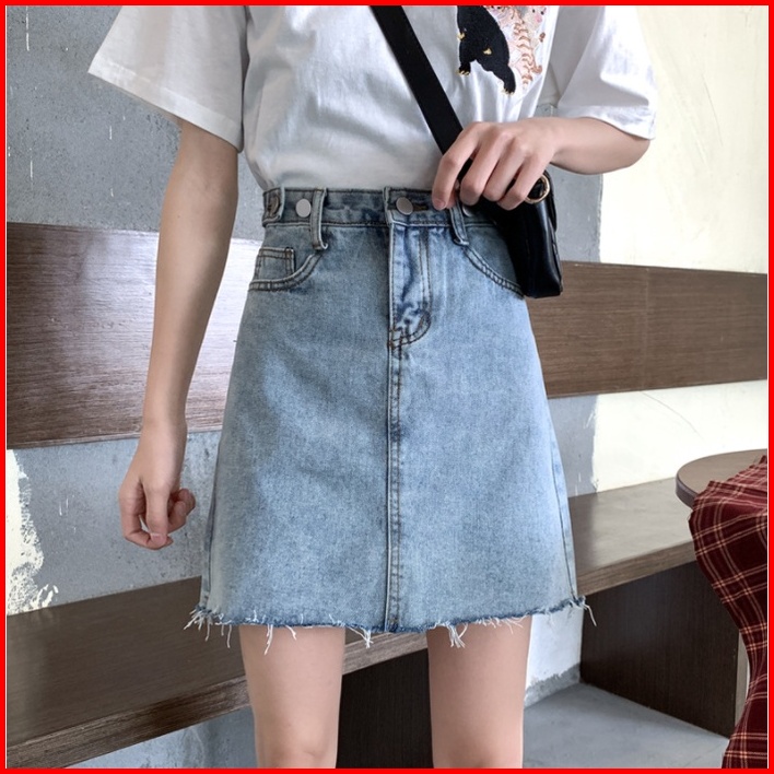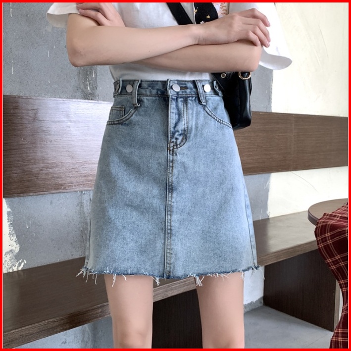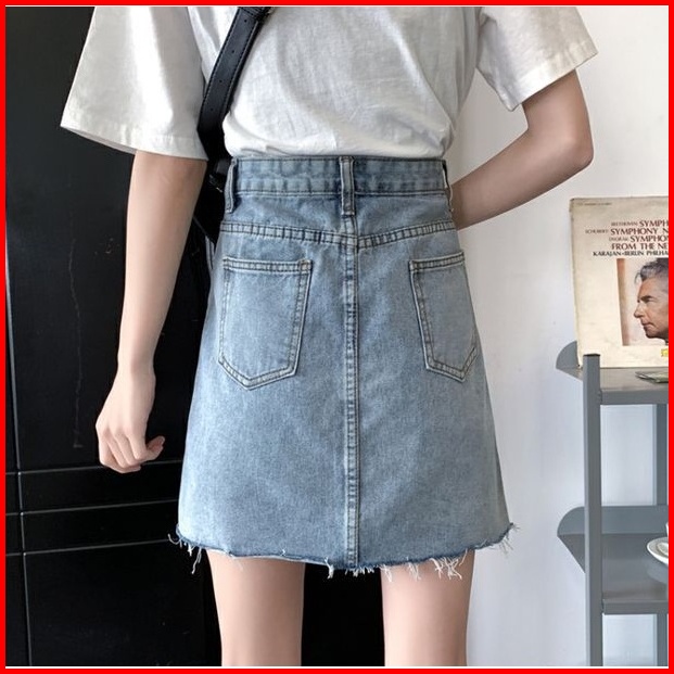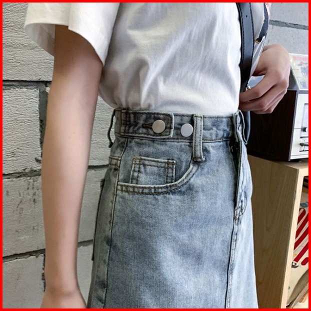 Rok Denim Rok Berkancing Rok Fashion Simple Cocok Untuk Semua Usia Rok Ramping Angkat Pinggul Rok High Waist Pinggang Ti