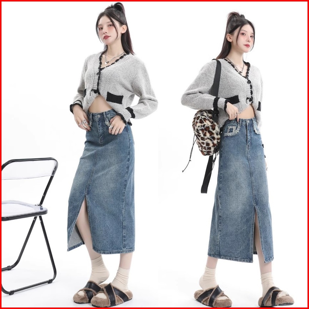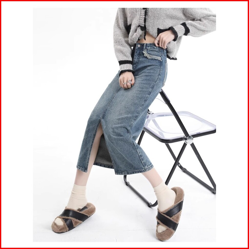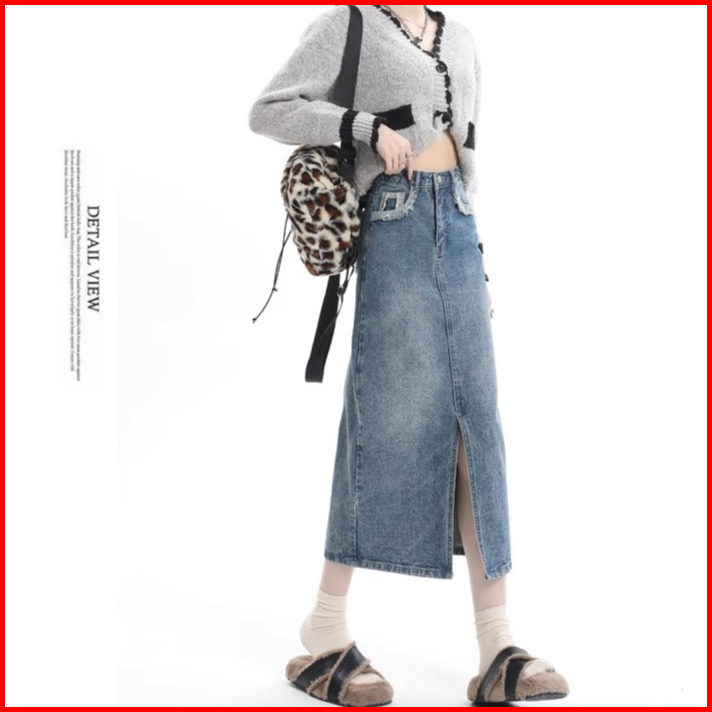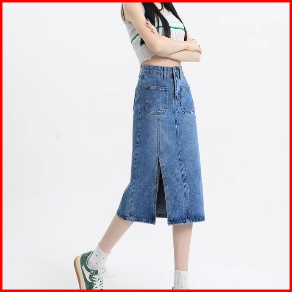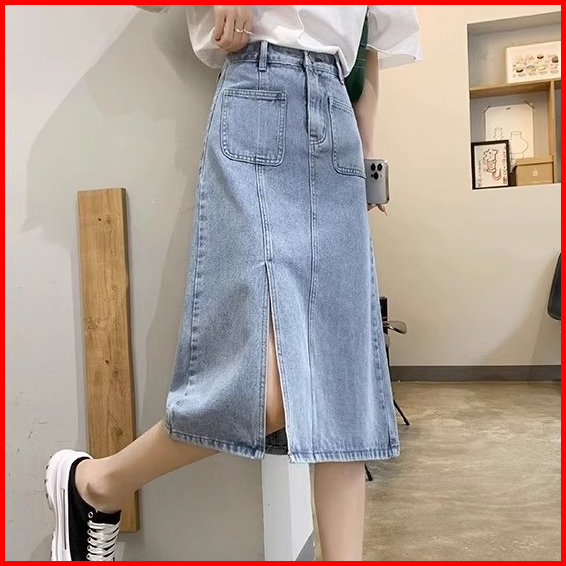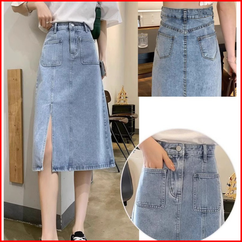 Rok Jeans Belah Samping Rok Jeans Korean Style Rok Jeans Highwaist Skirt Rok Midi 7 9 Ootd Rok Denim