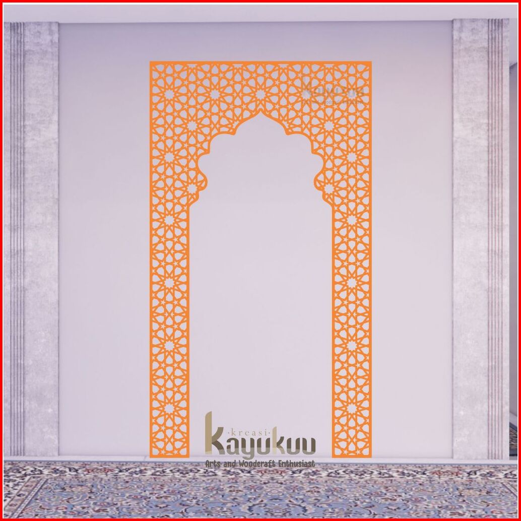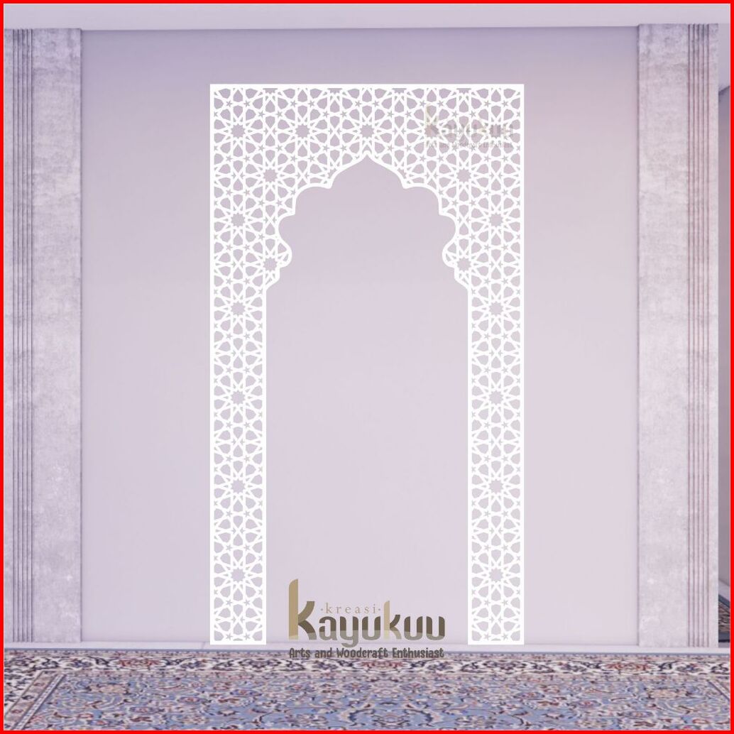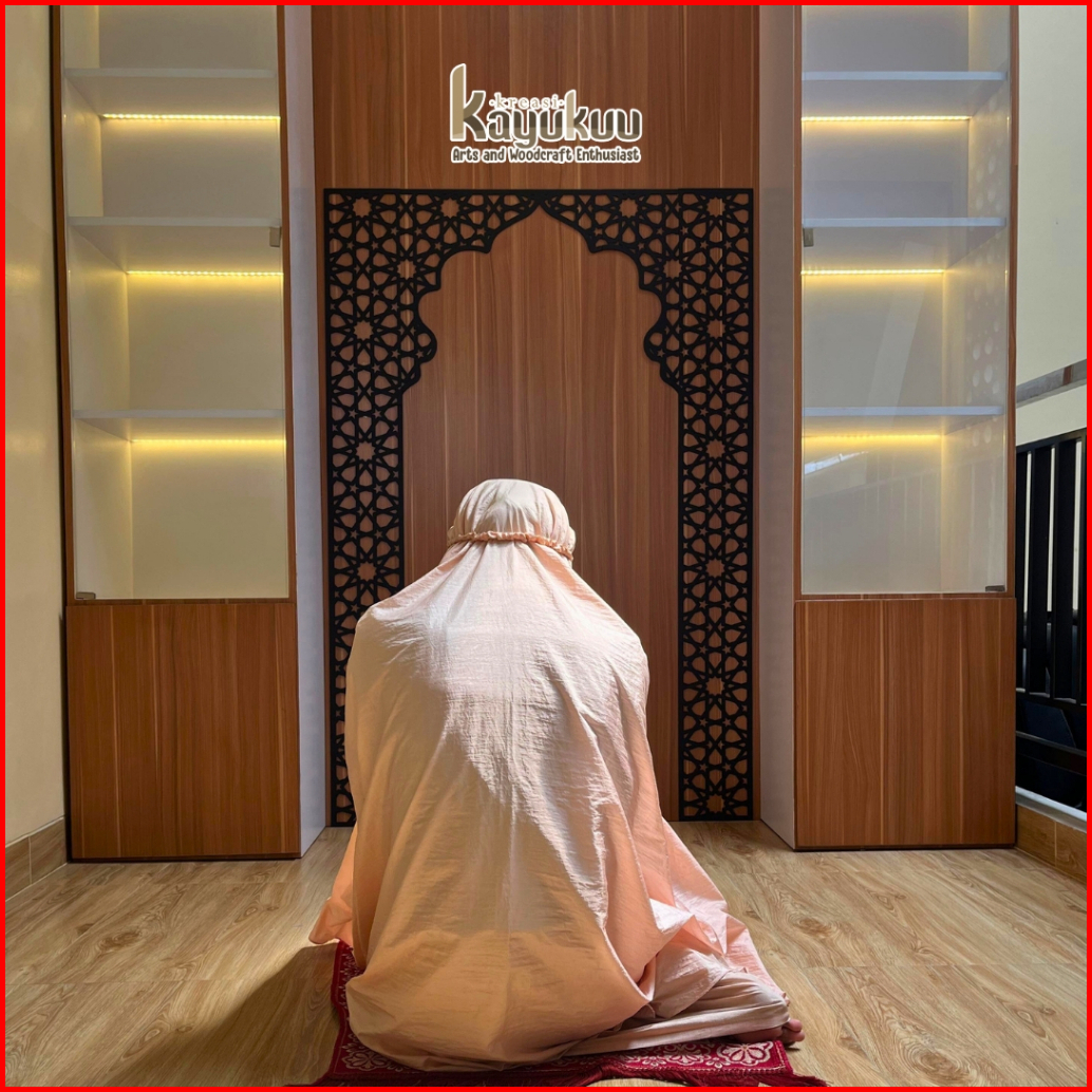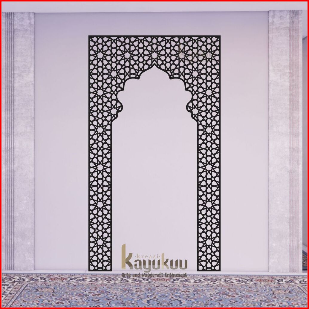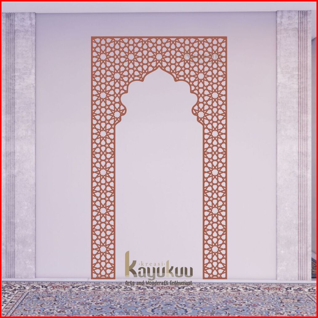 Kreasikayukuu Mihrab Mushola Aesthetic Hiasan Dinding Mushola Bahan Kayu Plywood 3mm
