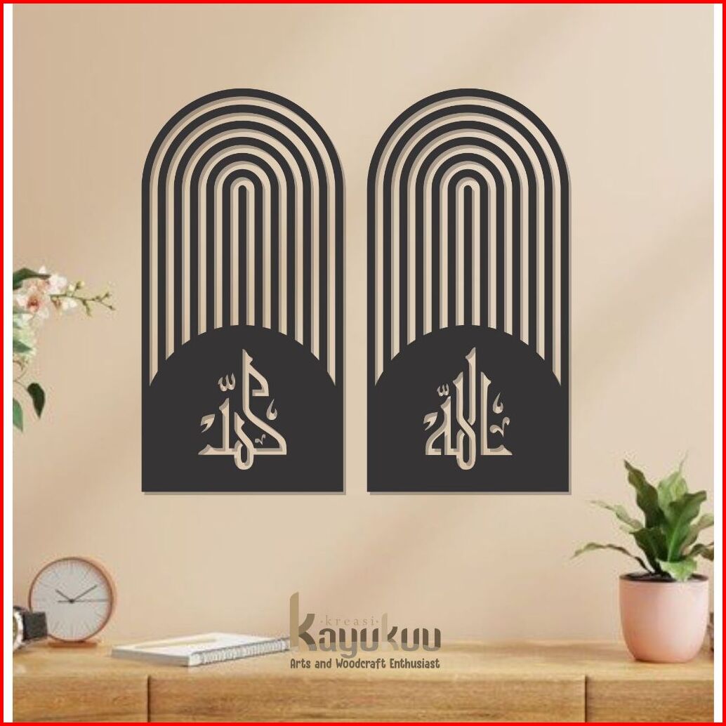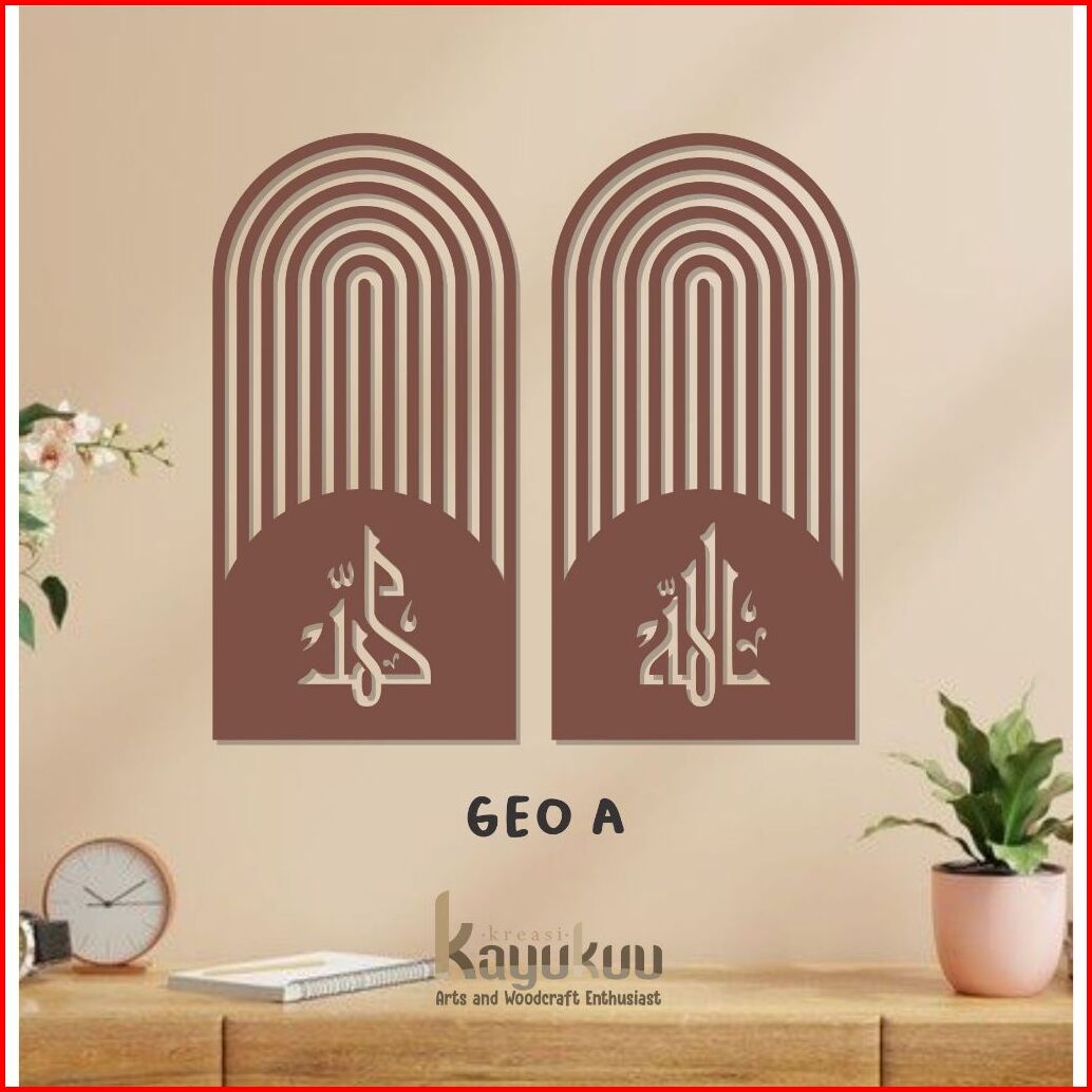 Kreasikayukuu Hiasan Dinding Kaligrafi Motif Geometri Islami Dekorasi Minimalis Bahan Plywood 3mm