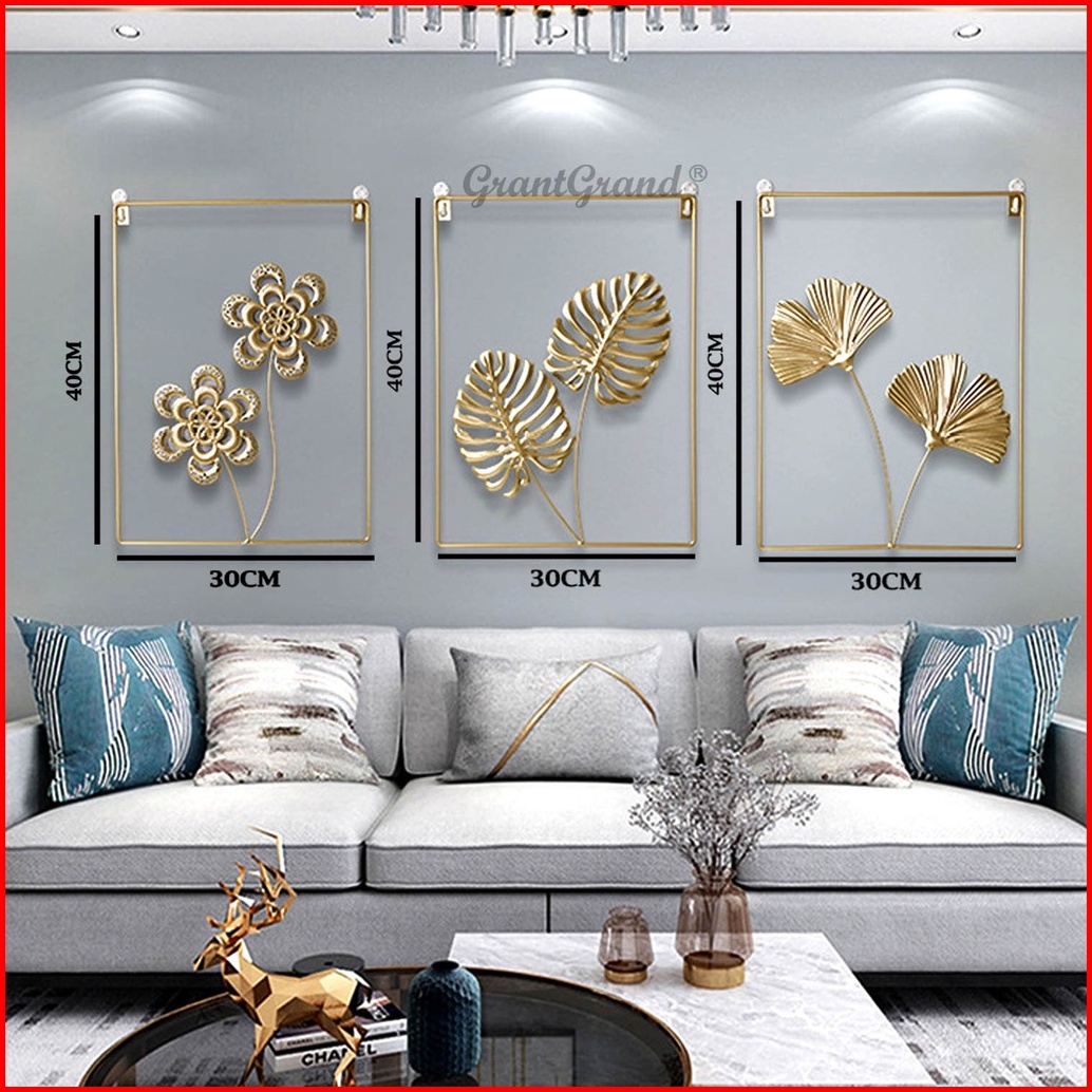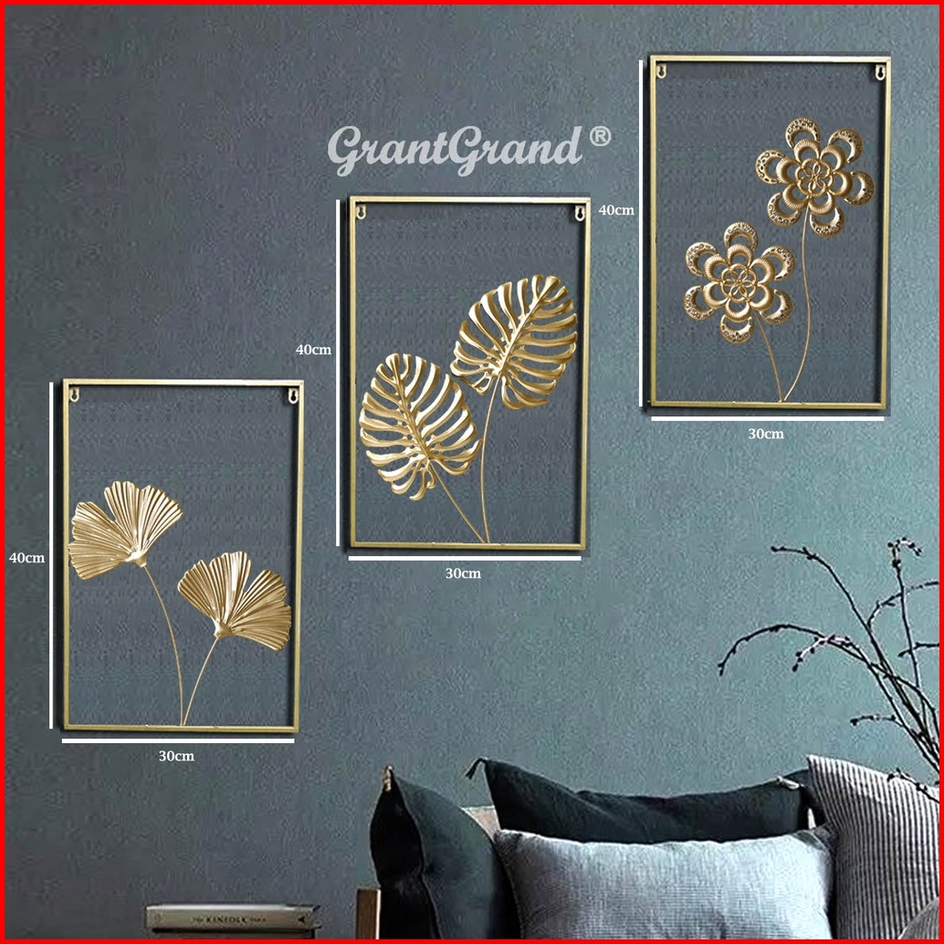 Luxury Wall Decor Dinding Hiasan Ruang Tamu Kamar Bingkai Foto Pajangan Besi Frame Ginkgo