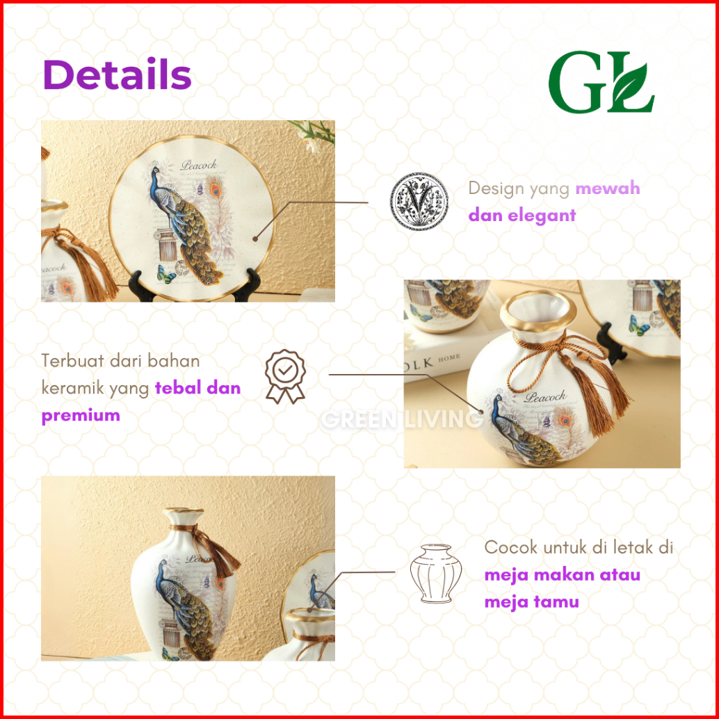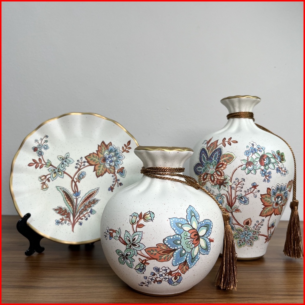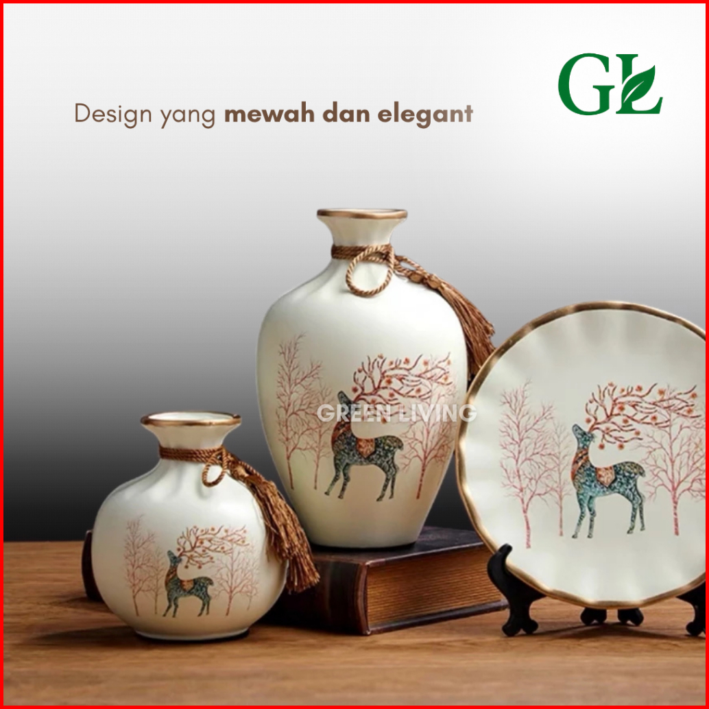 Green Living Dekorasi Vas Bunga Blossom Putih Eropa Retro Set 3 Pcs - Pajangan Hiasan 3in1 Decor Klasik Dekor Ruangan Ru