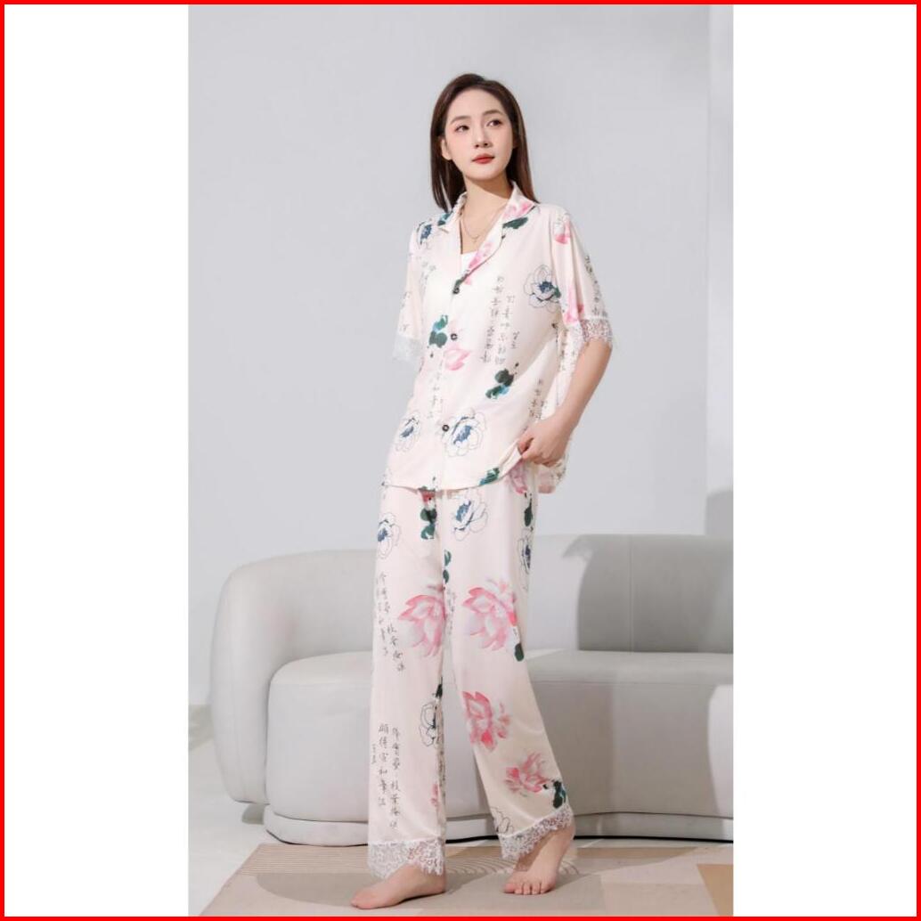 Piyama Wanita Dewasa 4 In 2 Lengan Pendek Kancing