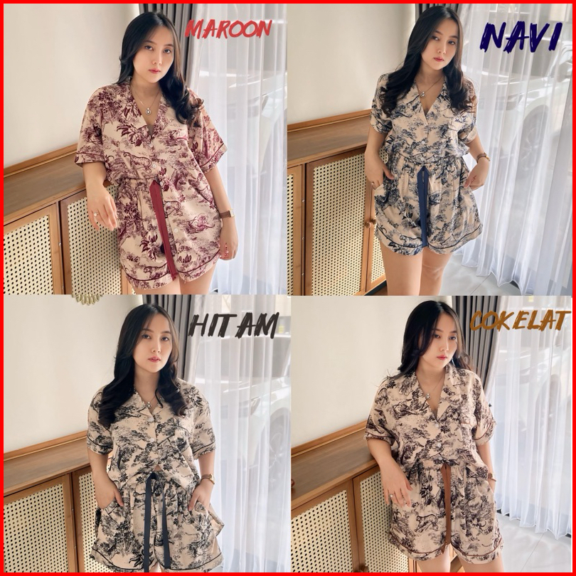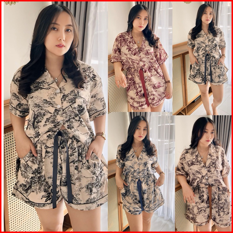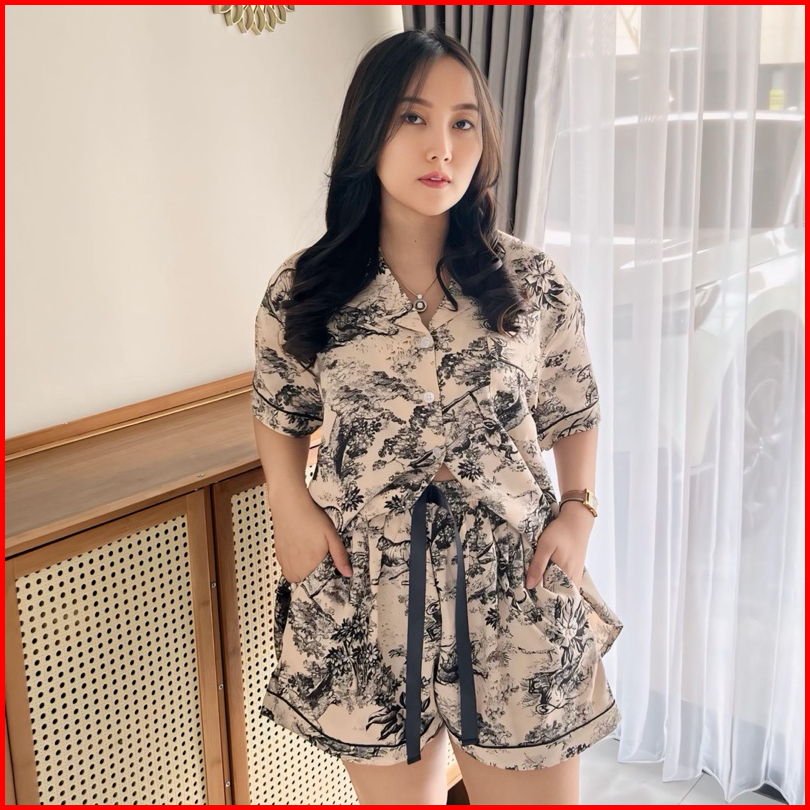 Best Seller Wenggo - Mileya Set Diore Series Rayon Premium One Set Celana Pendek Lengan Pendek Wanita Kekinian Baju Tidu