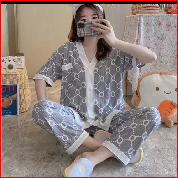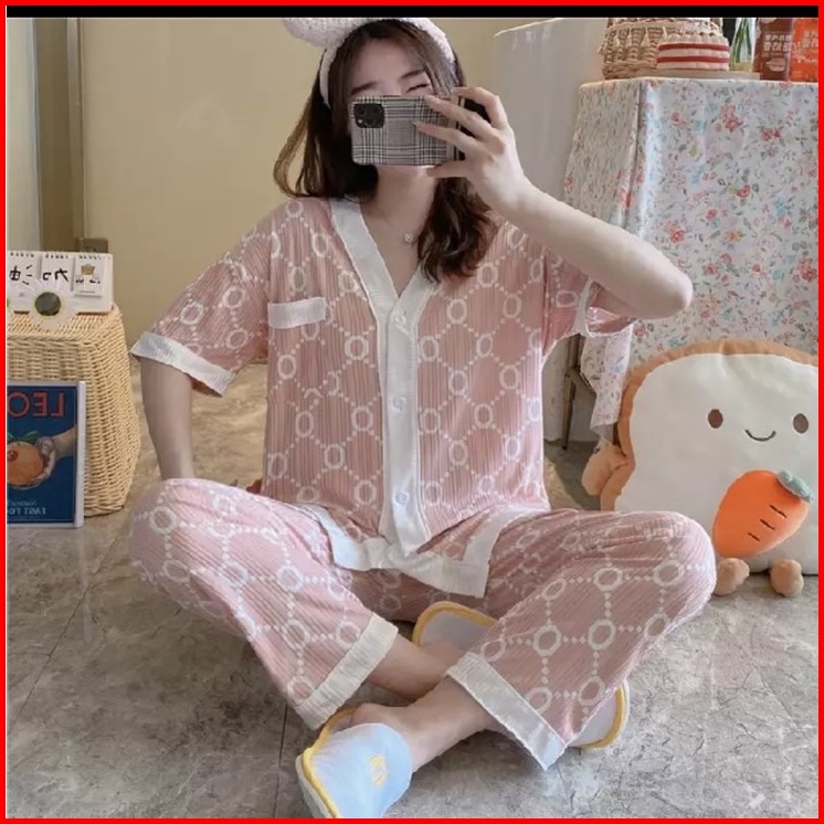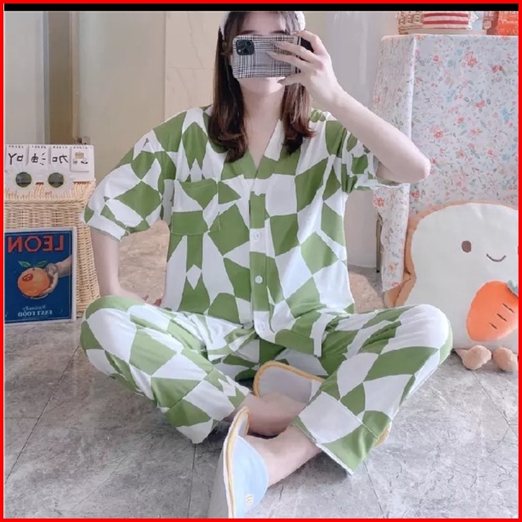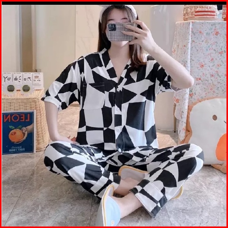 Hs Baju Tidur Kaos Katun Piyama Set Kemeja Cp Import Premium Lengan Pendek Celana Panjang Stelan Wanita Dewasa