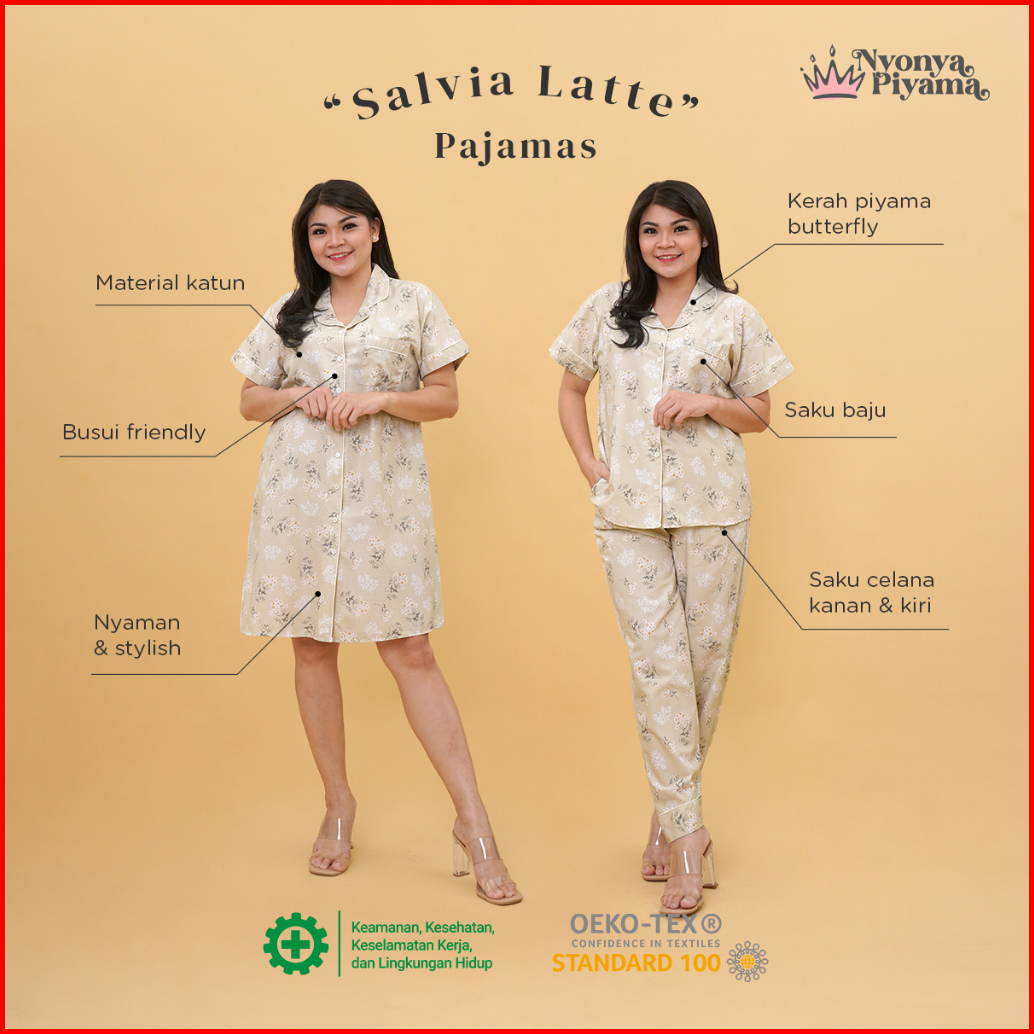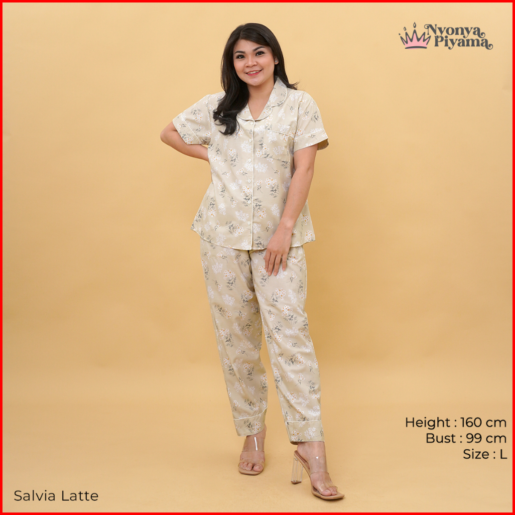 Nyonya Piyama Katun Set Piyama Salvia Latte Classic