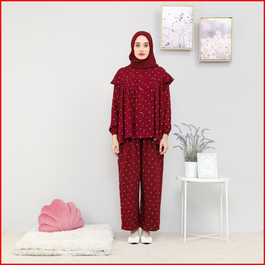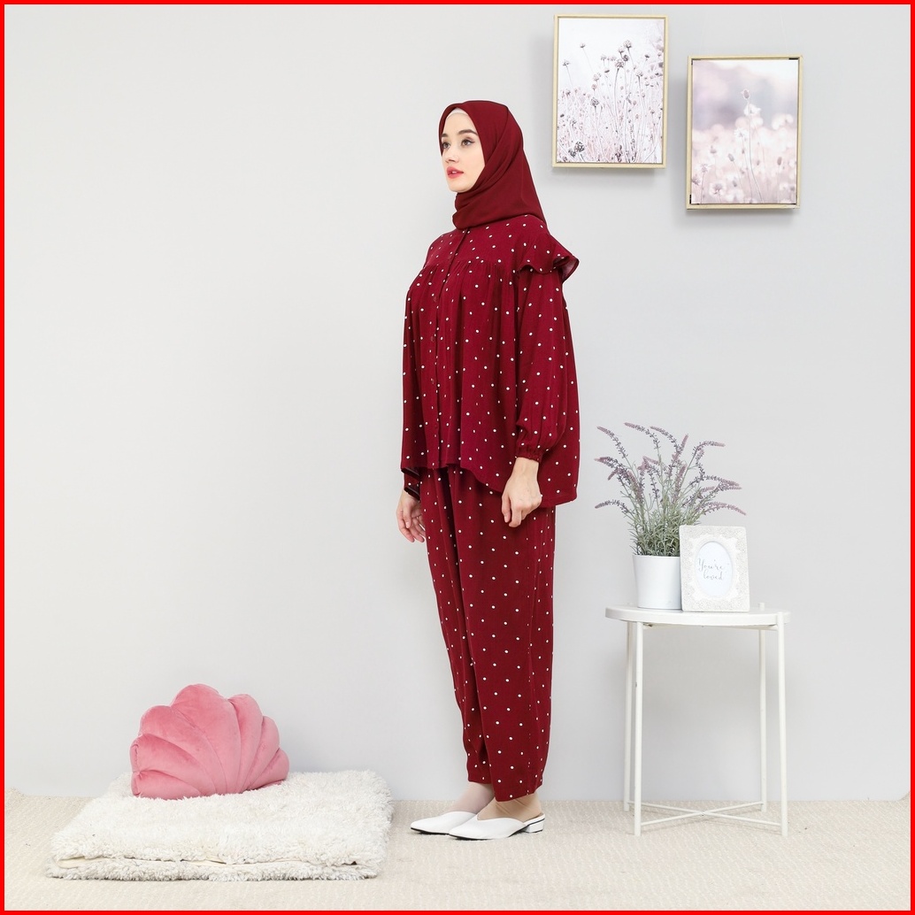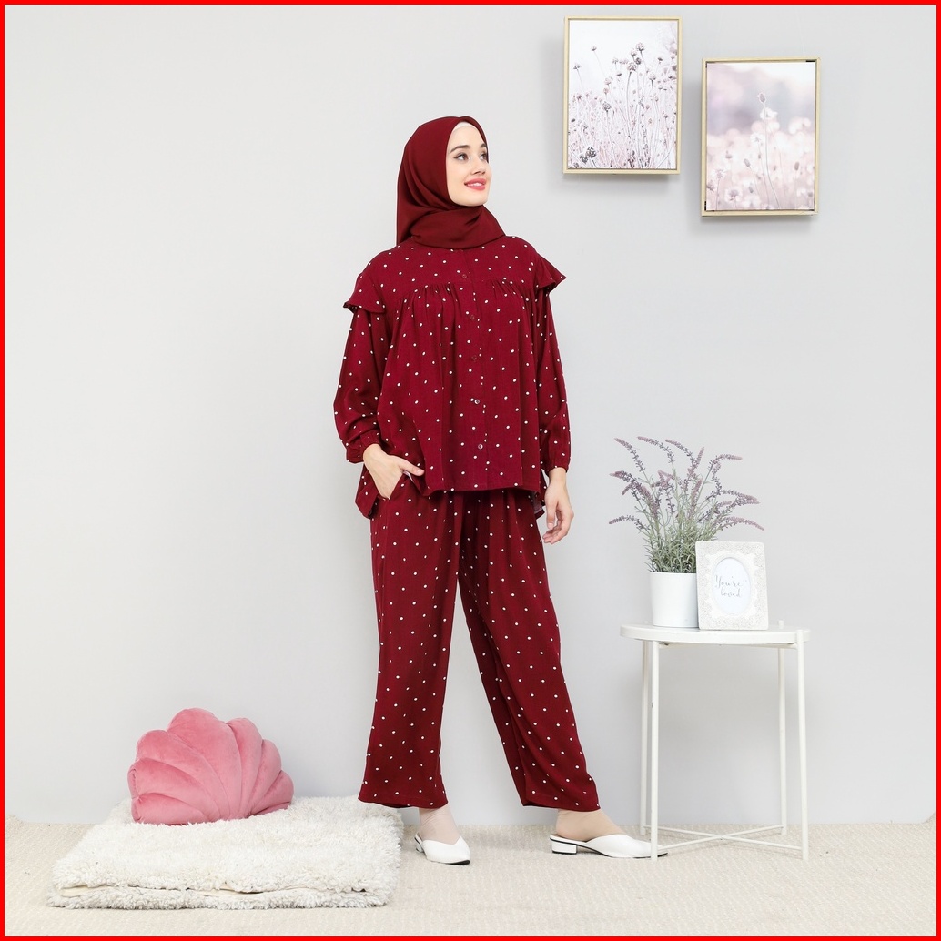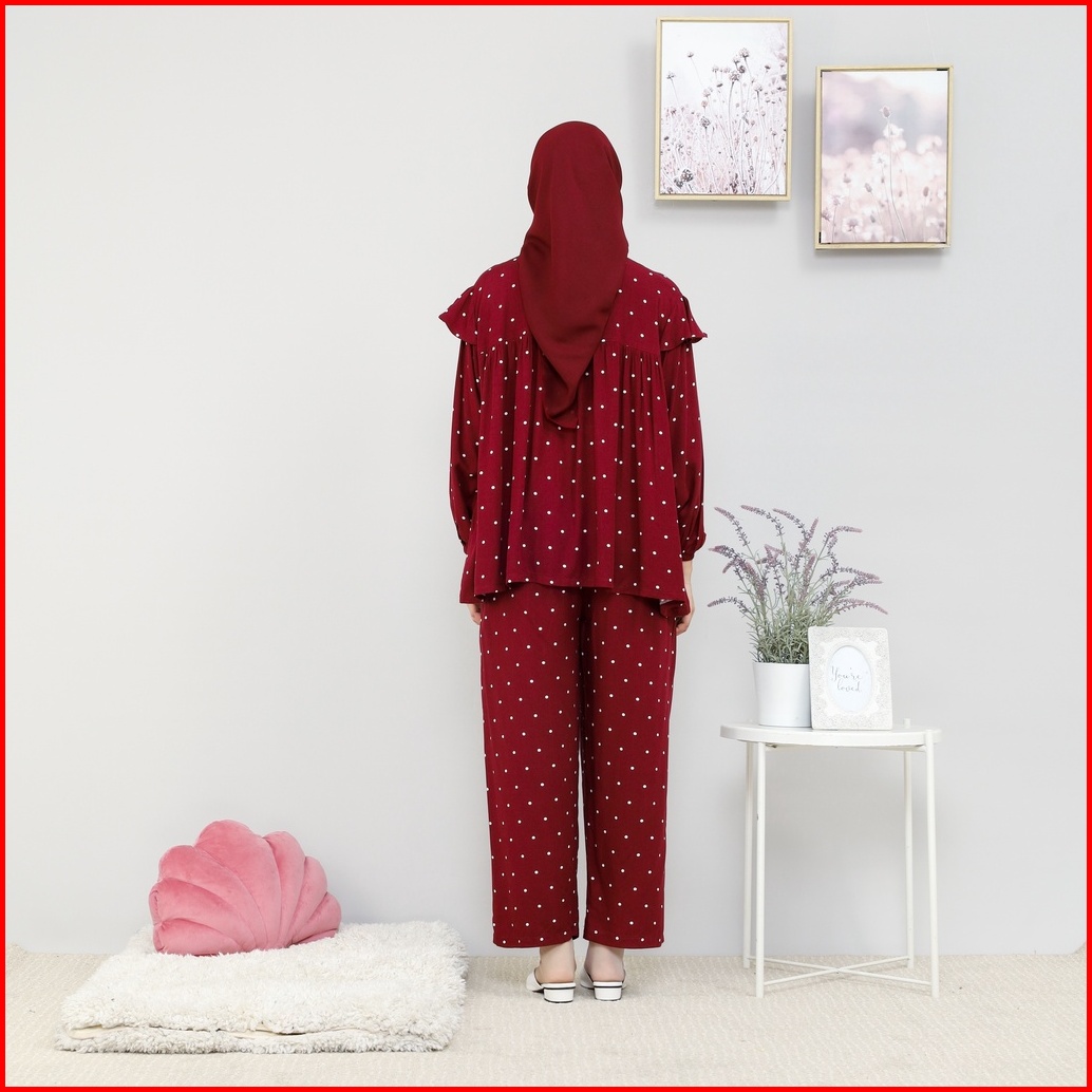 Lalucuku Akleema Polkadot Maroon Baju Tidur Setelan Pajamas Piyama Tie Dye Set Wanita