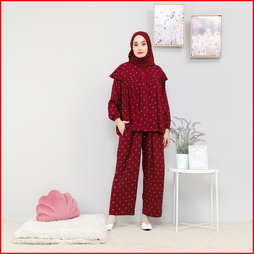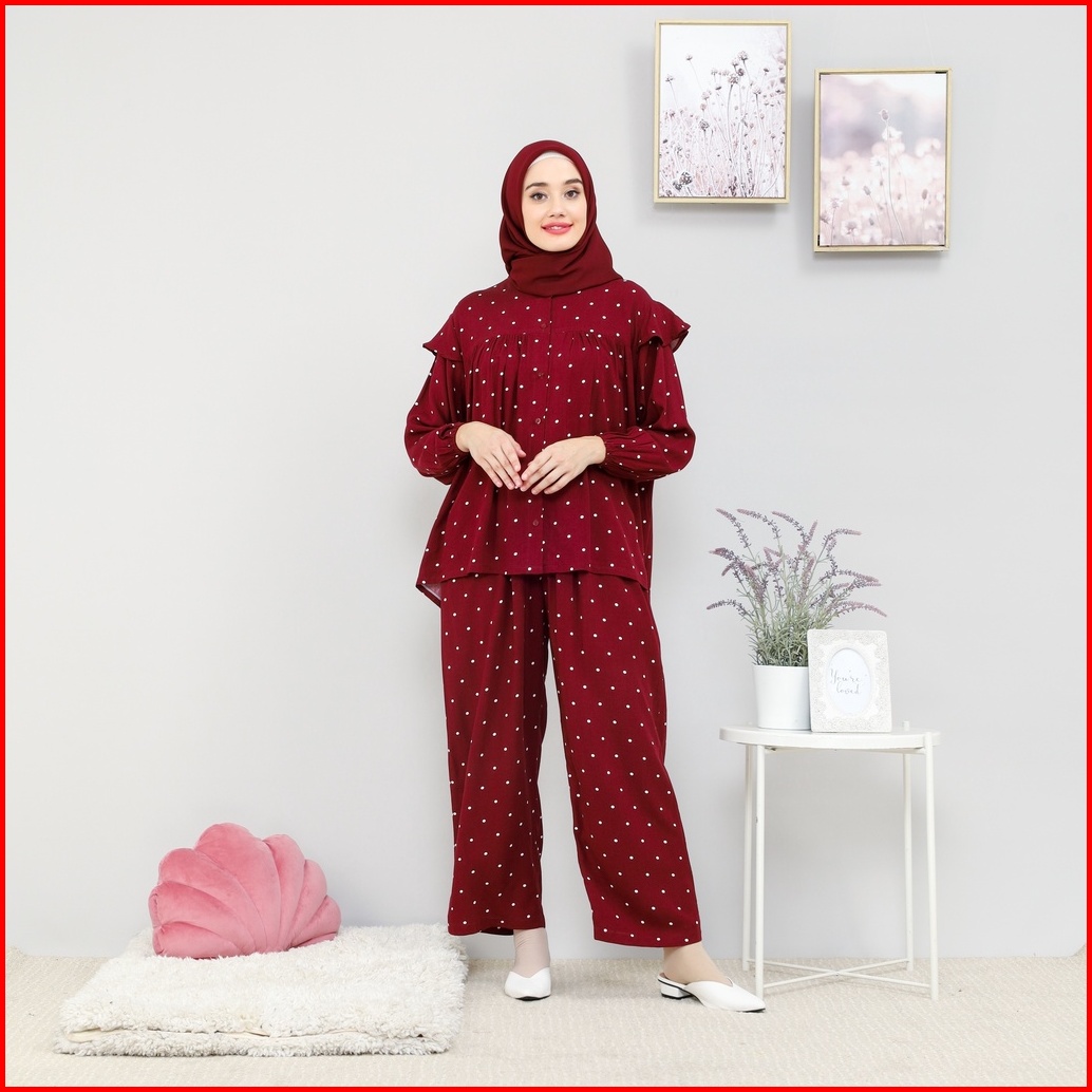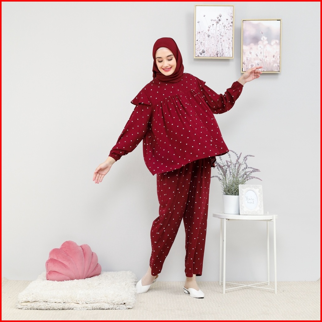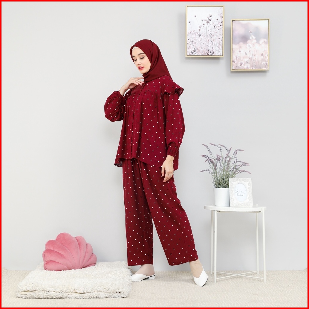 Lalucuku Akleema Polkadot Maroon Baju Tidur Setelan Pajamas Piyama Tie Dye Set Wanita