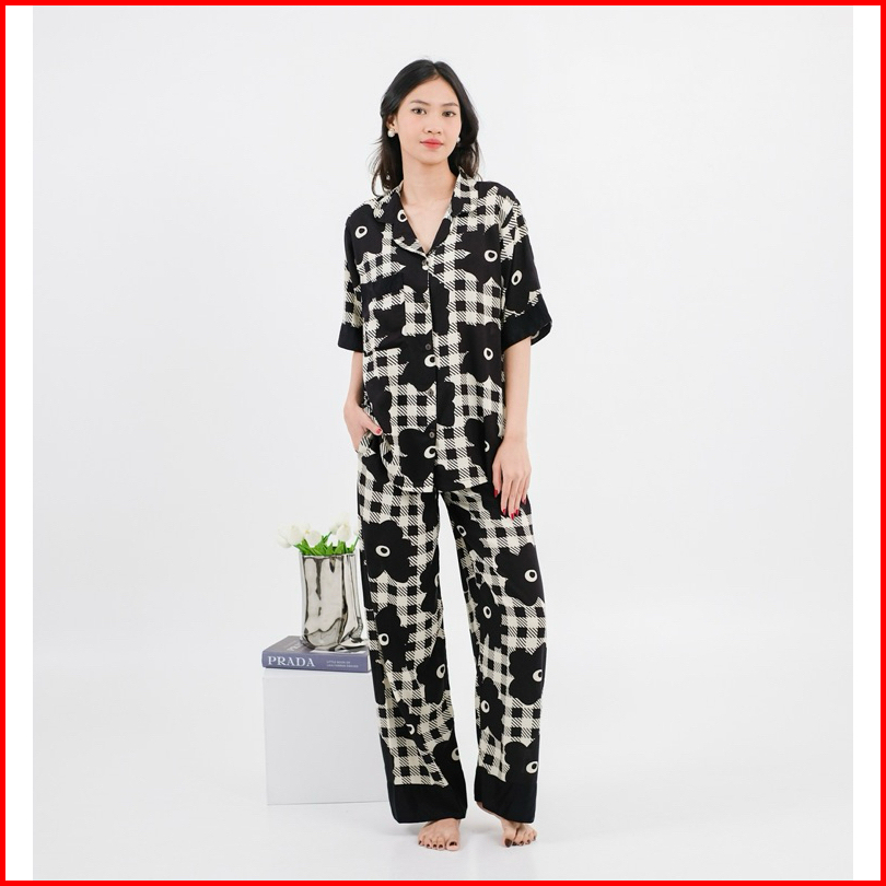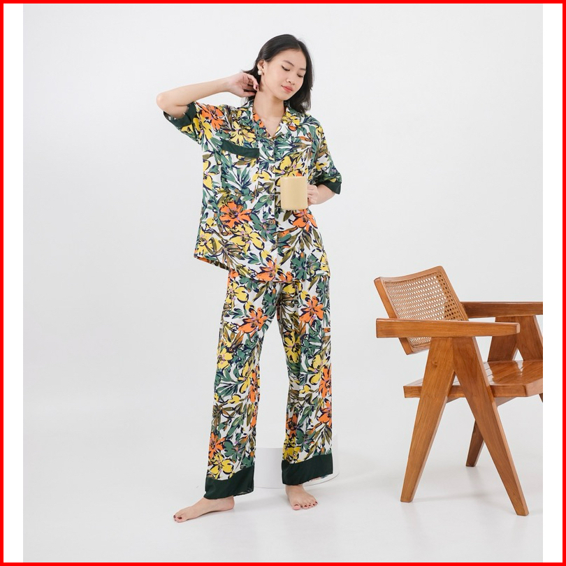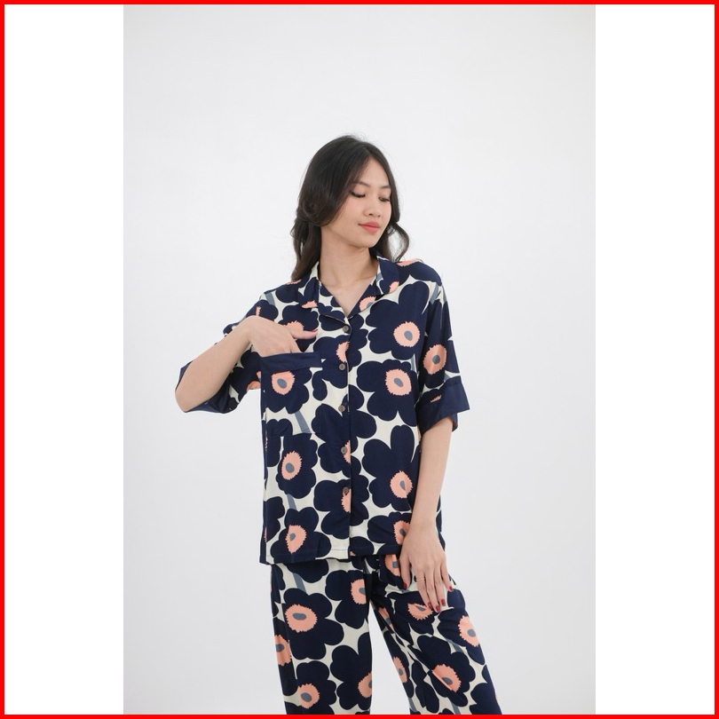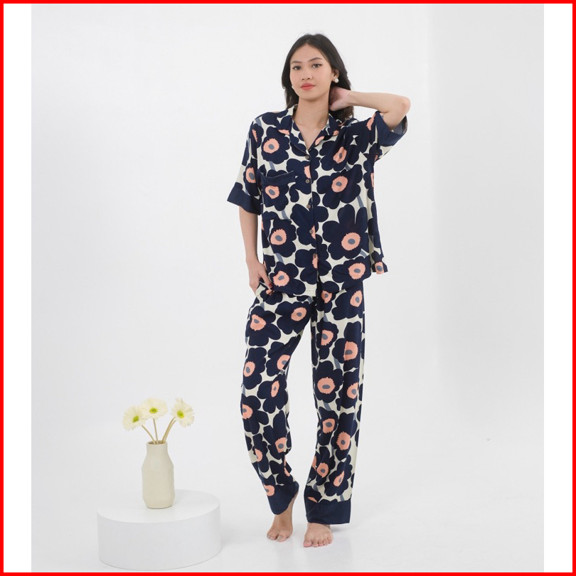 Weardinora One Set Wanita Baju Tidur Piyama Bahan Rayon