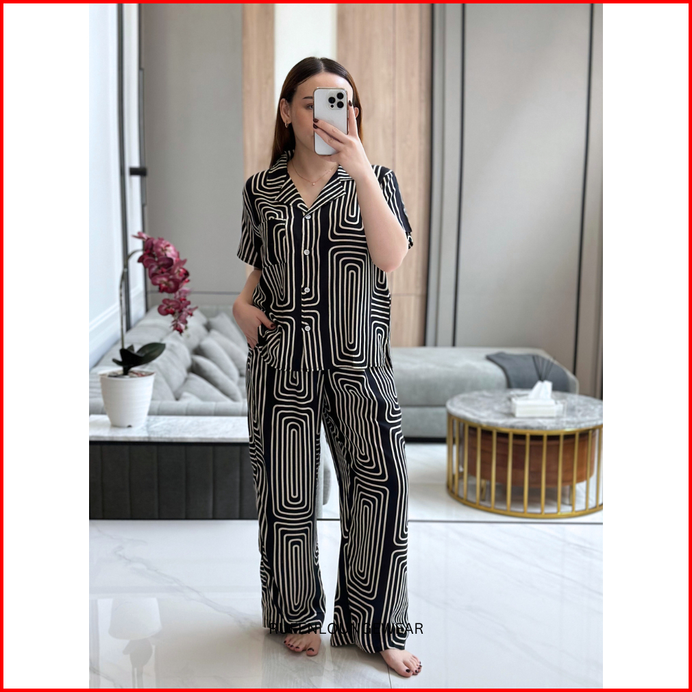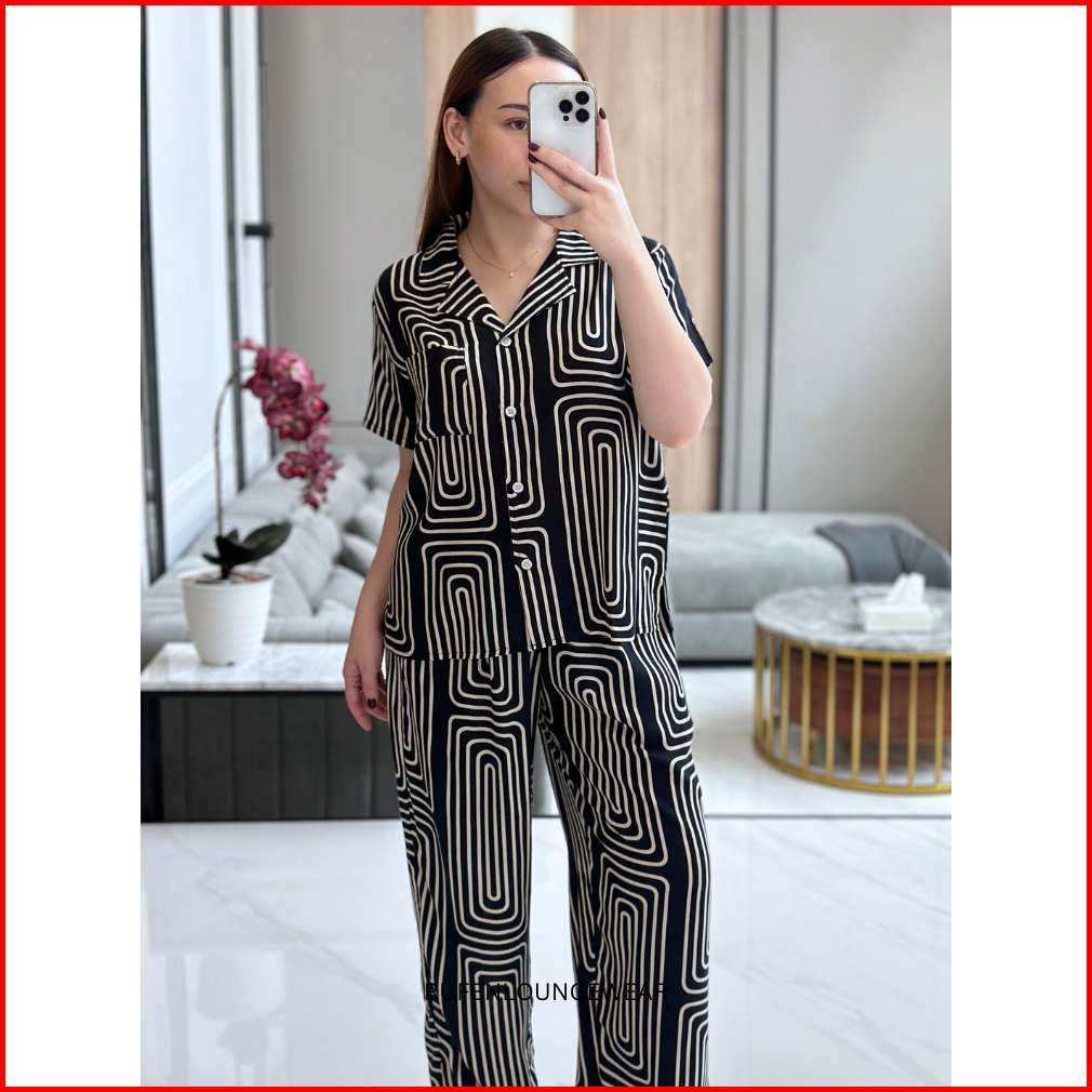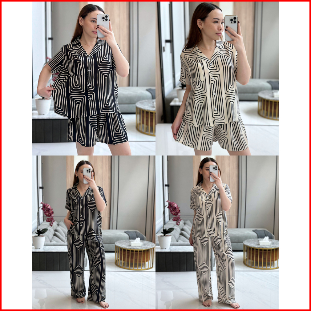 Rufen One Set Wanita Bahan Rayon Setelan Celana Panjang Dan Pendek