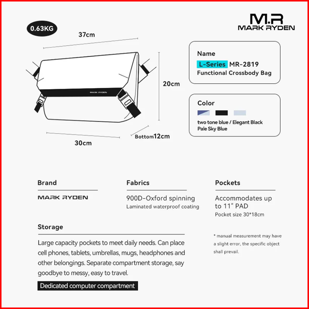 Mark Ryden Mr2819 Messenger Bag Shoulder - Tas Selempang Sling - Black