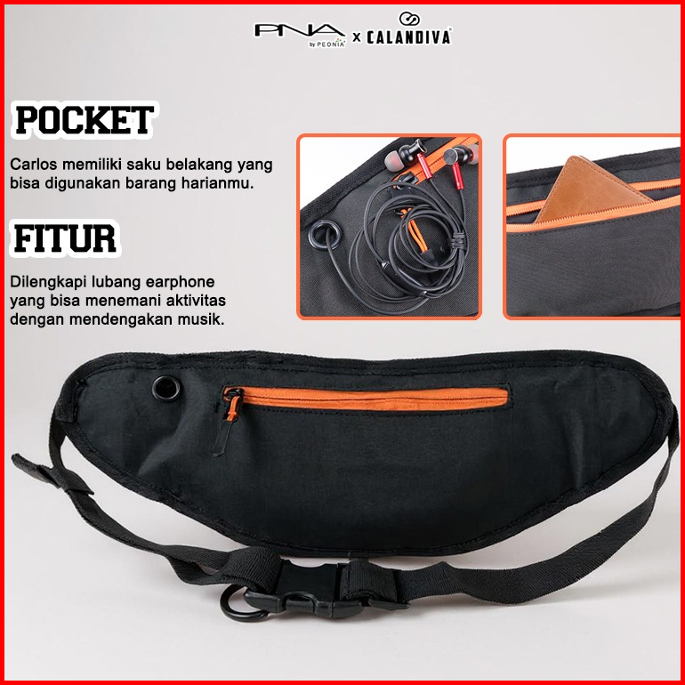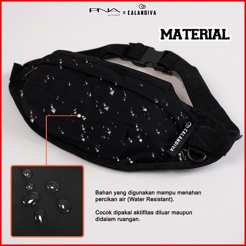Peonia Calandiva Carlos Water Resistant Tas Import Selempang Bahu Pinggang Pria Wanita Unisex Premium Sling Bag Waist Go