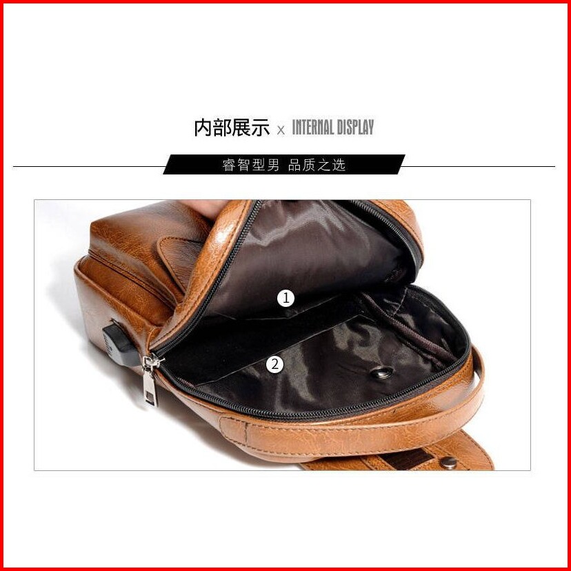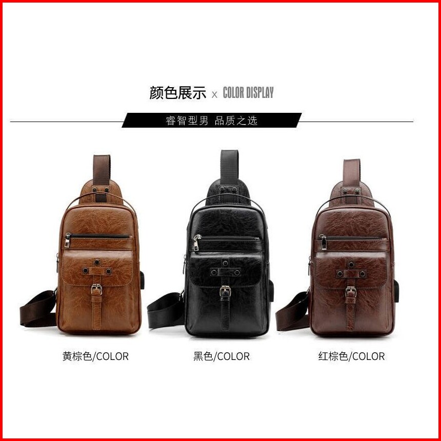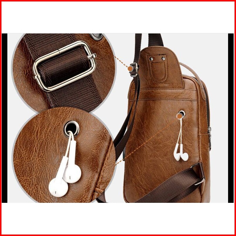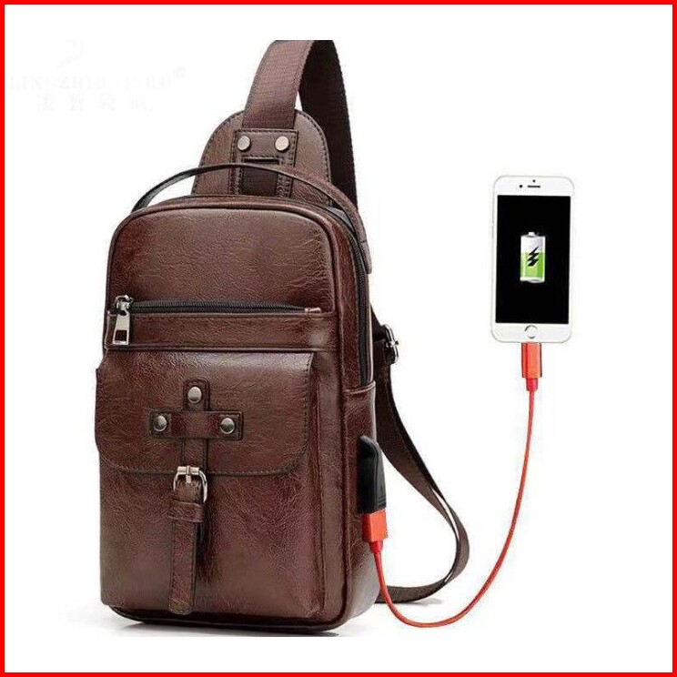 Pasarlelaki Tas Selempang Kulit Pria Import Usb Port Slempang Sling Bag