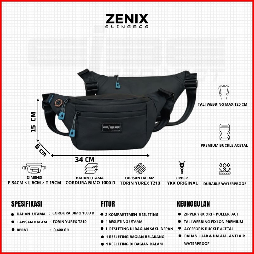 Eibe - Zenix Waistbag Tas Pinggang Tas Selempang Anti Air