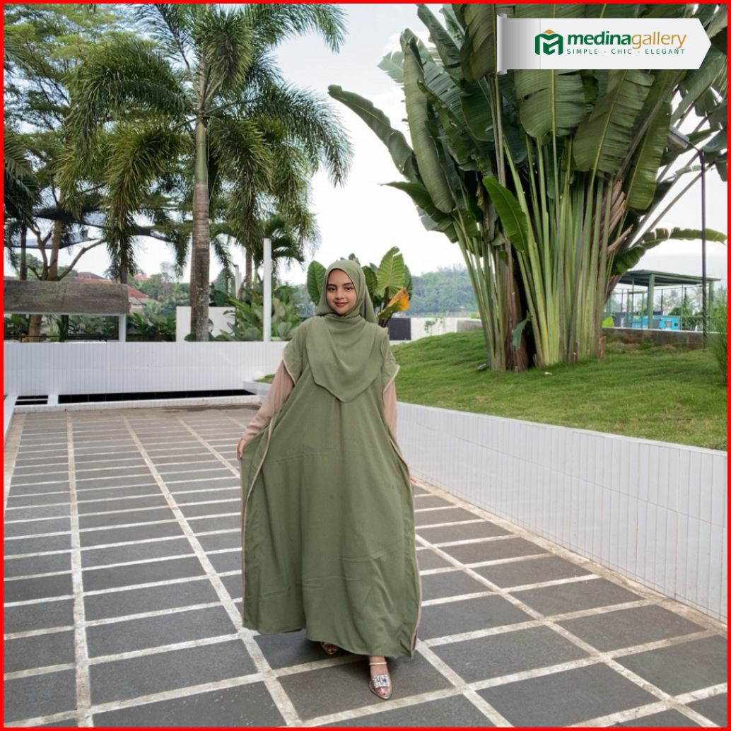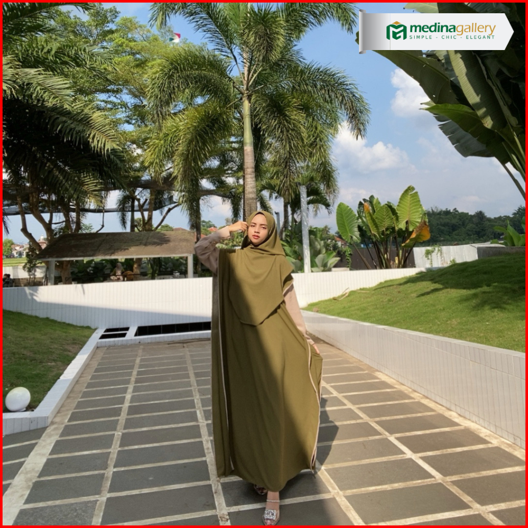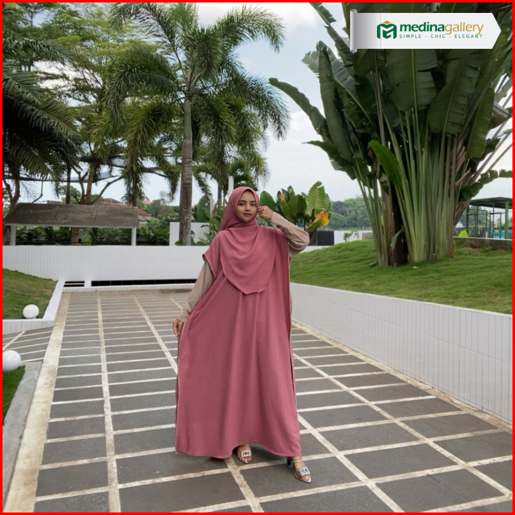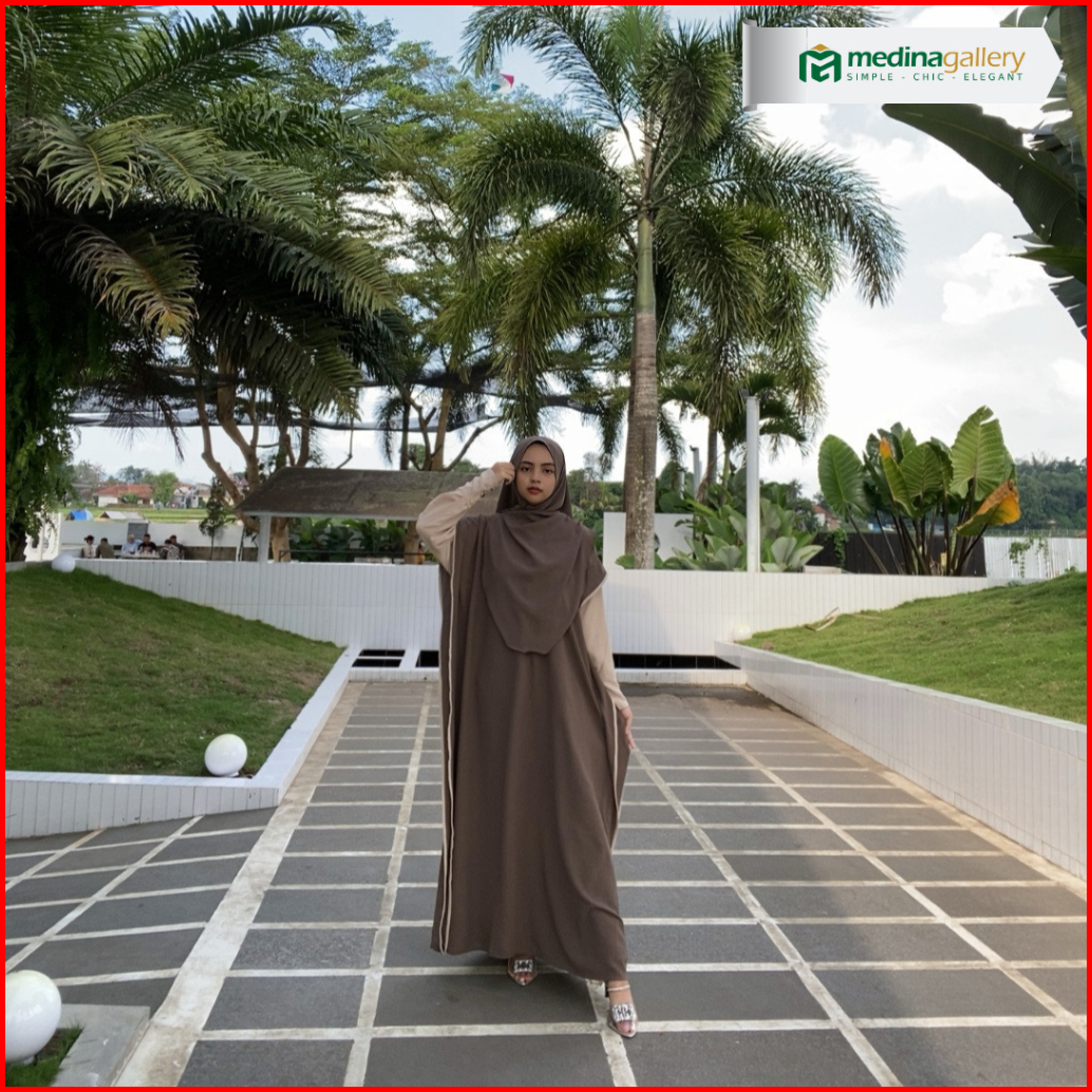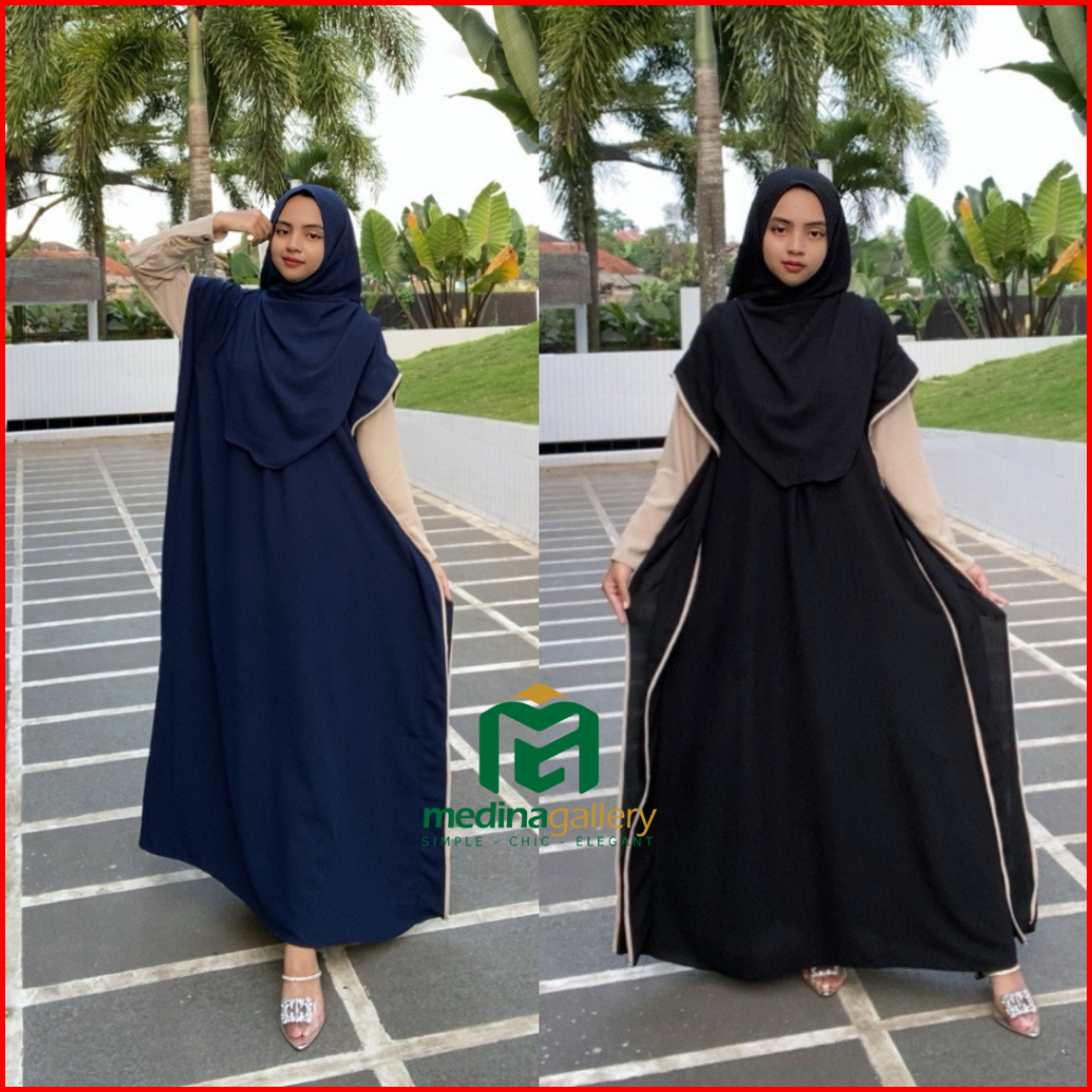 New Arrival Abaya Kaftan Kombinasi Set Pashmina Oval Gamis Umroh Batwing Crinkle Premium