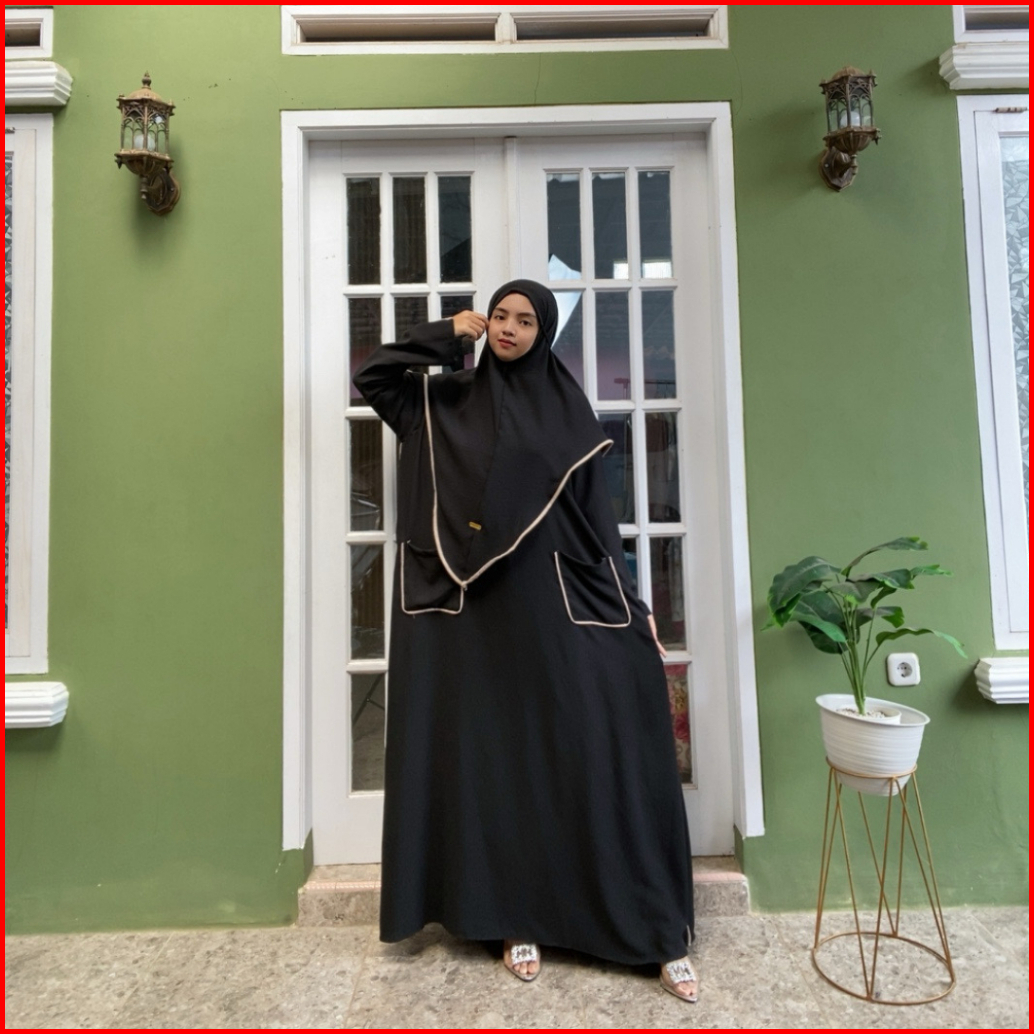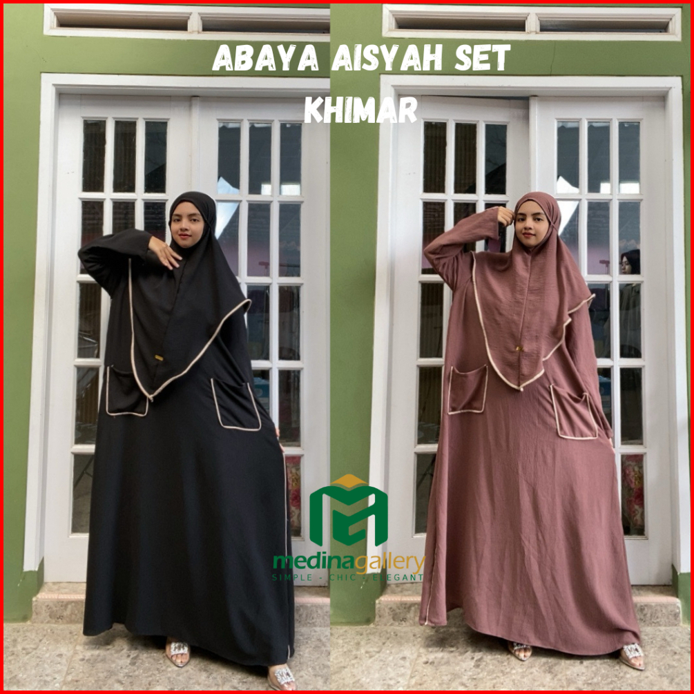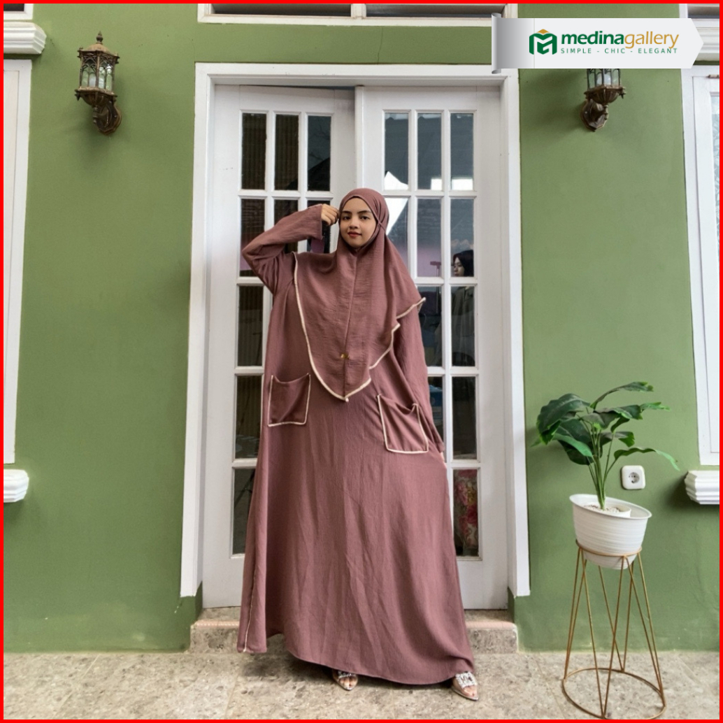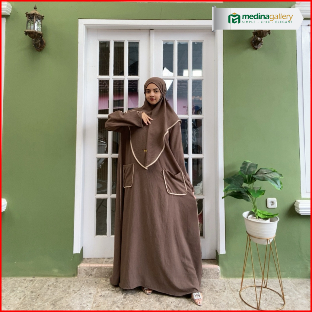 Medinagallery - Abaya Arumi Set Khimar Bergo Crinkle Airflow Gamis All Size Dress Abaya Premium