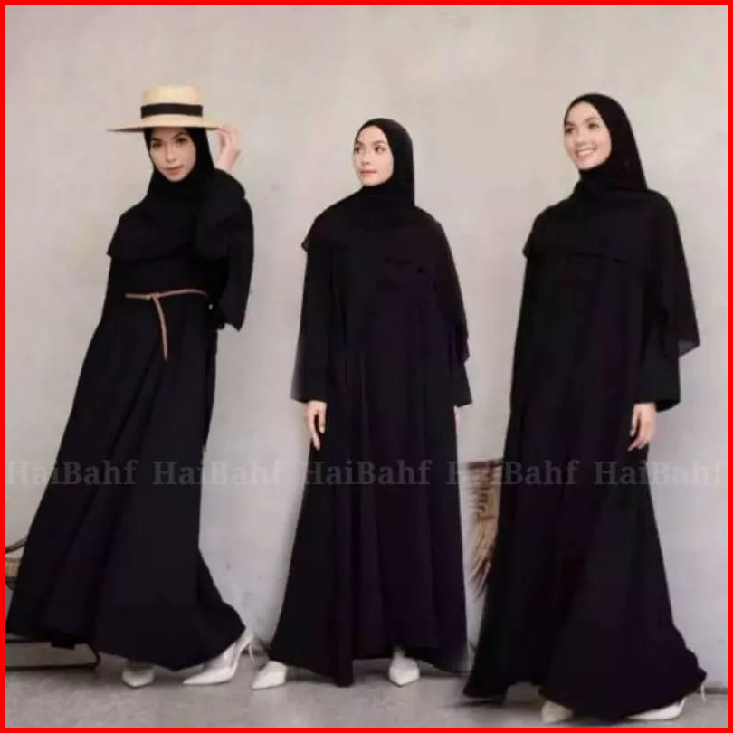 Abaya Jetblack Hitam Pekat Gamis Jubah Dress Aplikasi Sifon Mewah Simpel Elegan Umroh Maxi