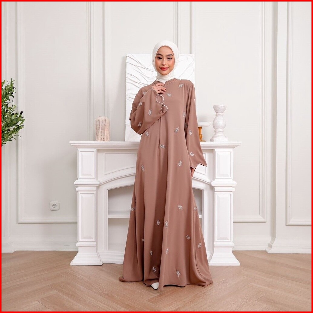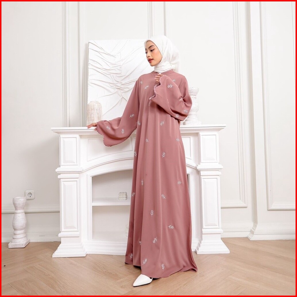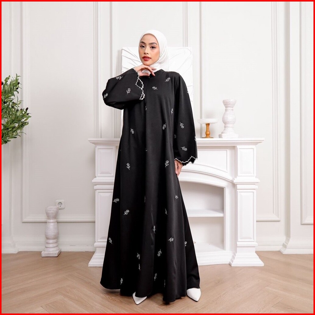 Gamaleea - Amina Abaya Gamis Muslim Wanita Syar I Bordir Embroidery Simple Casual Busui Friendly