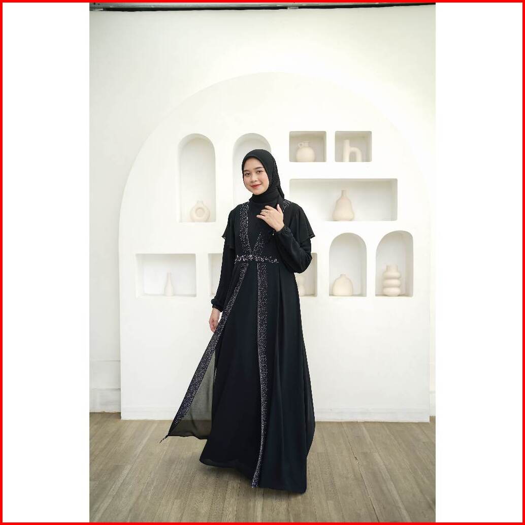 Alwa Sister - Abaya Swarovski Zayla Dress Pesta Gamis Busui Friendly Gamis Dewasa Terbaru Abaya Polos Kekinian