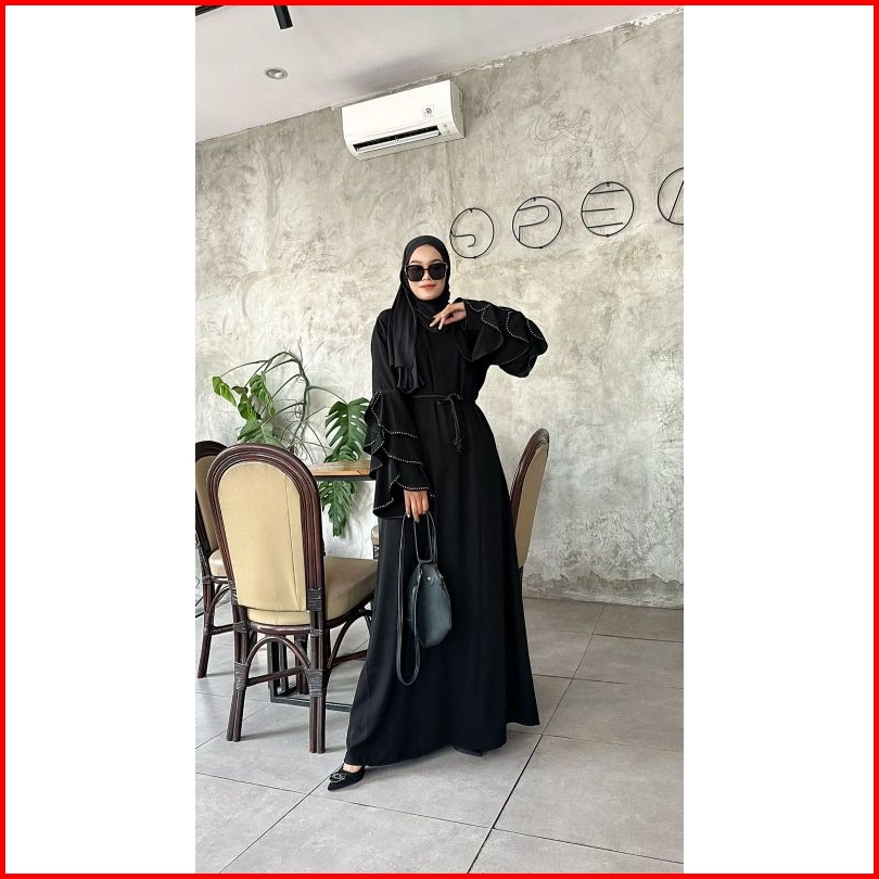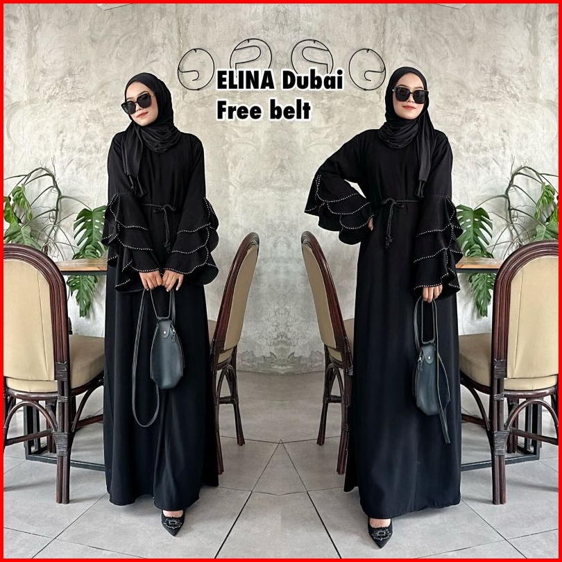 Abaya Gamis Hitam Maxy Dress Fashion Muslim Busana Wanita Turkey Murah Dubai Elina