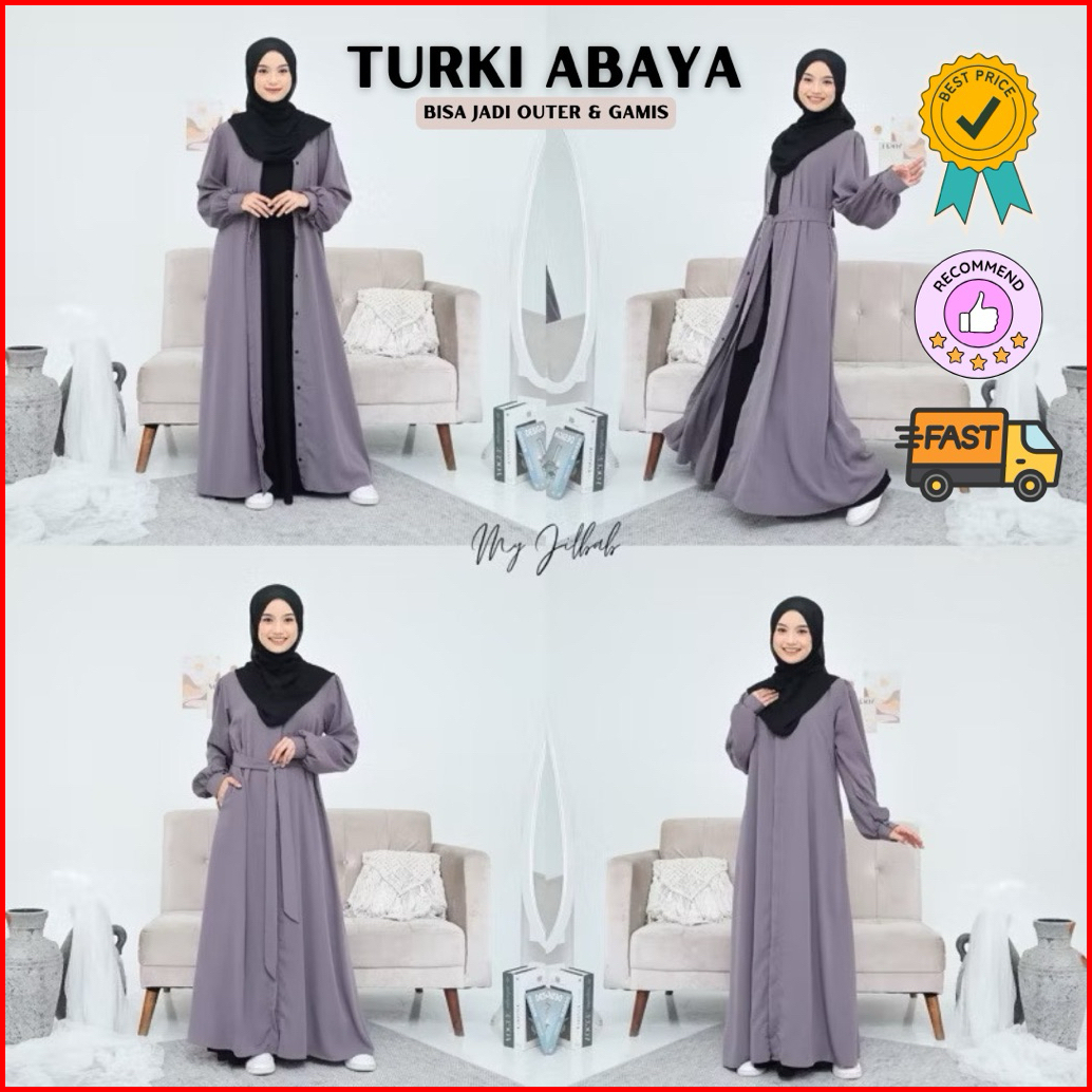 Turki Abaya Outer Full Kancing Bahan Mirabella Gamis Outer By Myjilbab