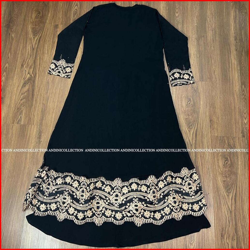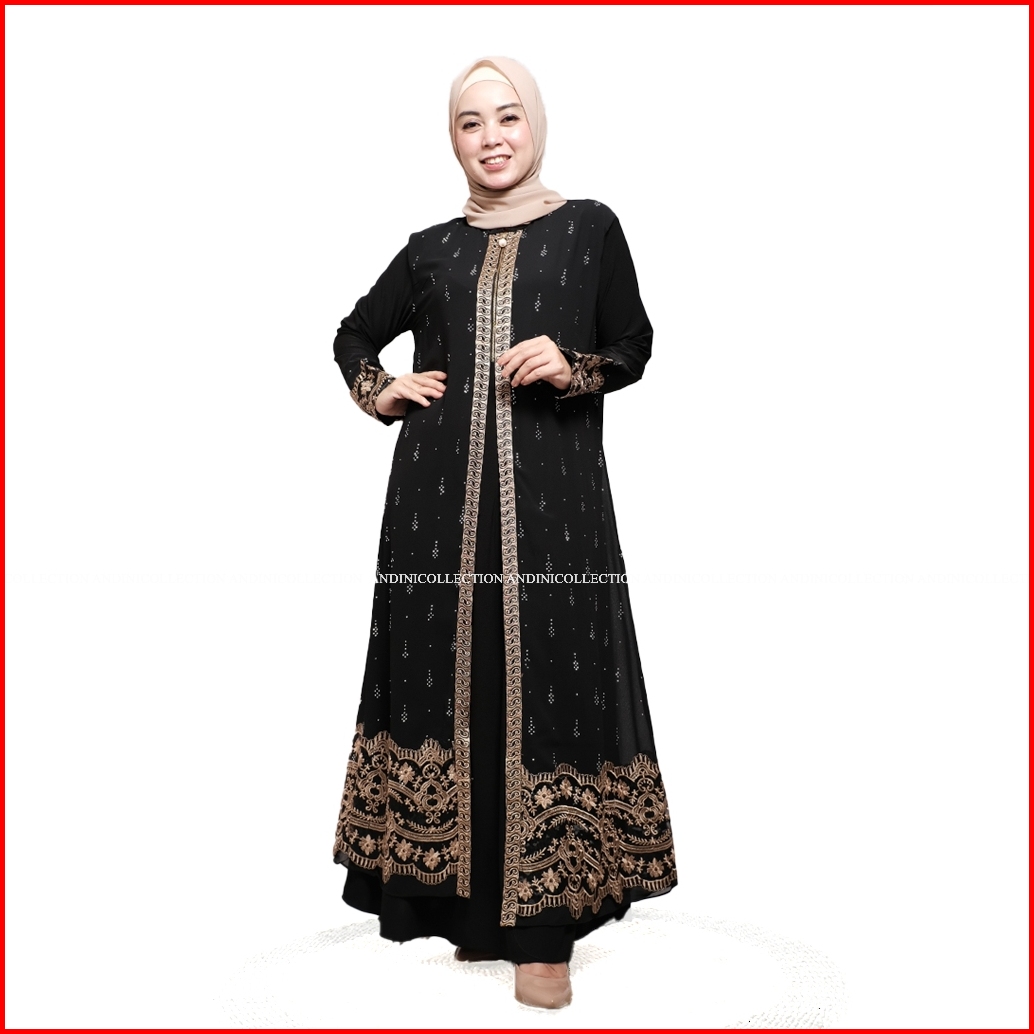 Andinicollection Abaya Turkey 310 Amarta Hitam Putih Dewasa Muslim Bordir Dan Payet Mewah