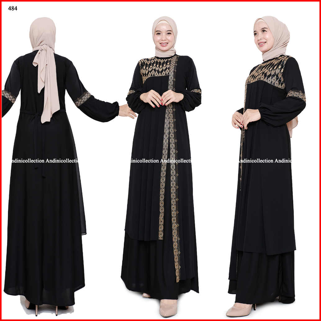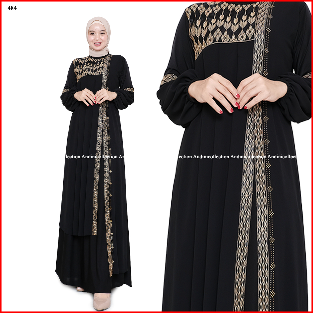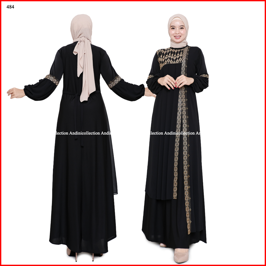 Andinicollection Abaya Turkey 484 Amarta Hitam Putih Remaja Dewasa Muslim Bordir Dan Payet Mewah