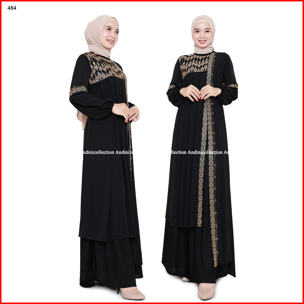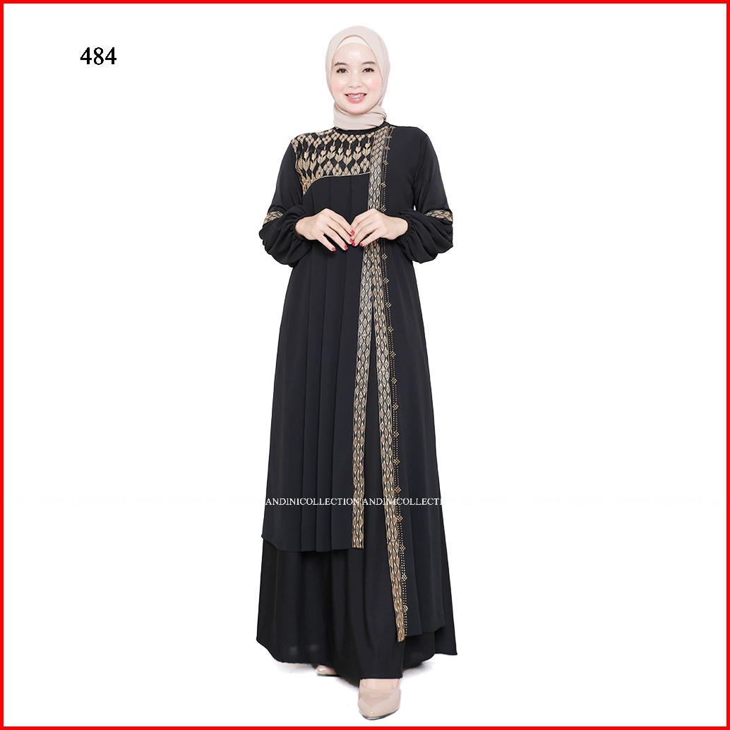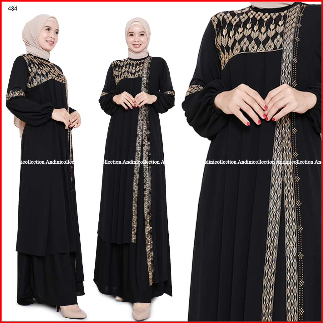 Andinicollection Abaya Turkey 484 Amarta Hitam Putih Remaja Dewasa Muslim Bordir Dan Payet Mewah